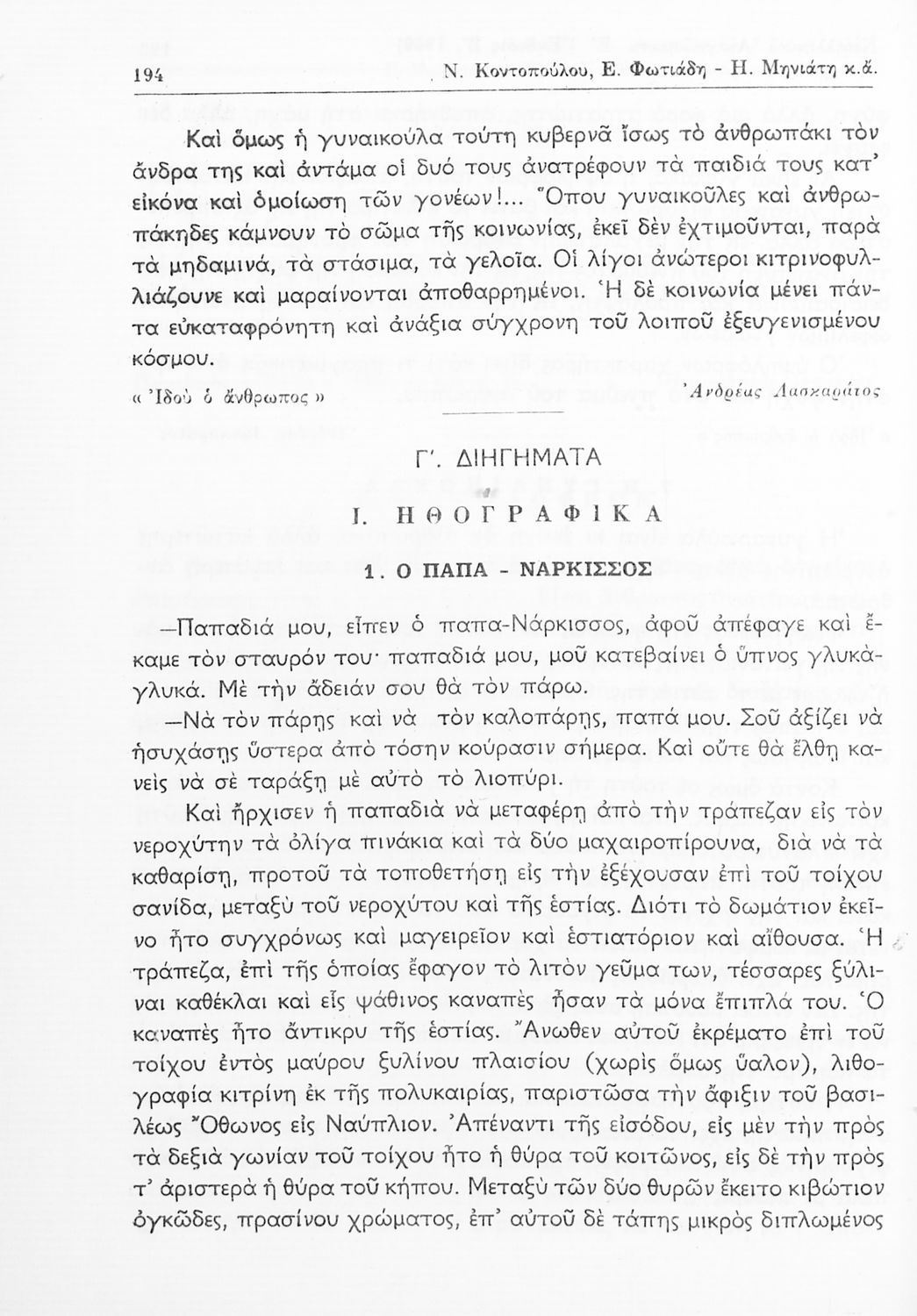 Σχολικό εγχειρίδιο της Ε΄ Γυμνασίου για το μάθημα των Νέων Ελληνικών. Περιέχει πεζά και ποιήματα από Ελλήνων και ξένων λογοτεχνών από τις συλλογές των συγγραφέων. Διαθέτει λεξικό και σύντομα βιογραφικά στοιχεία των Λογοτεχνών.
