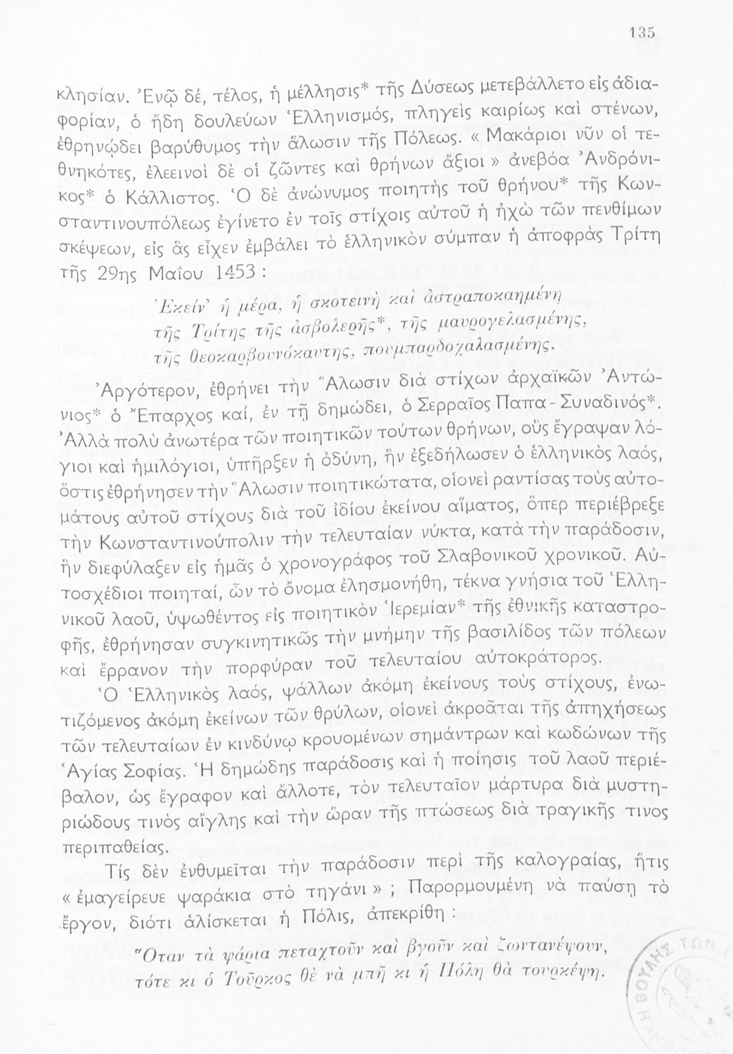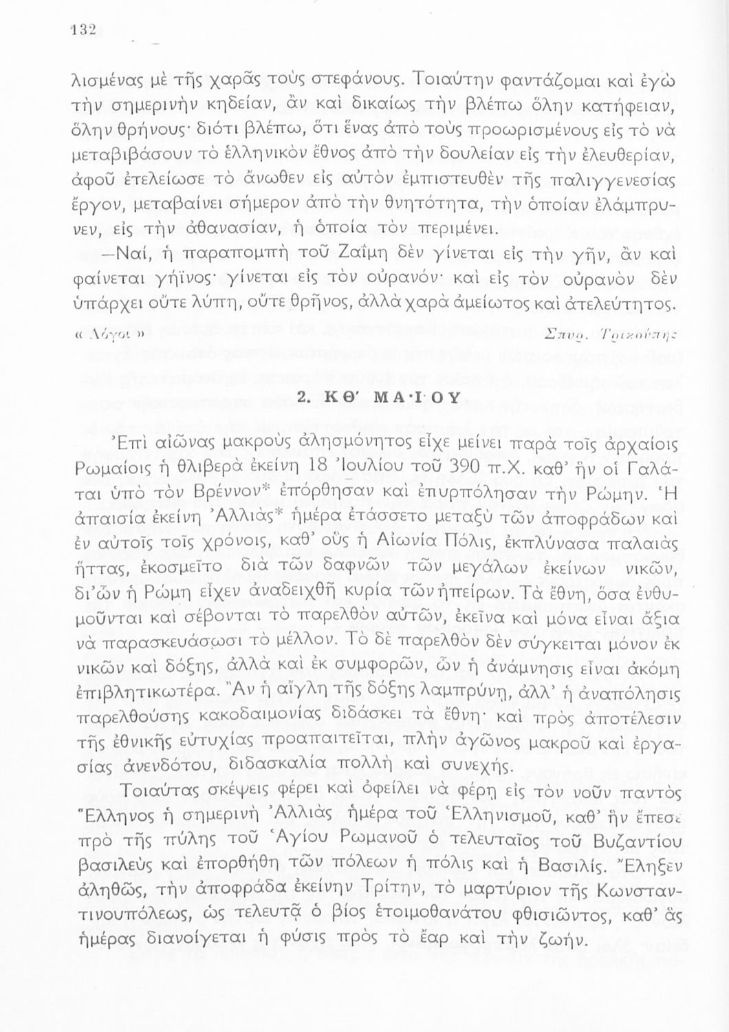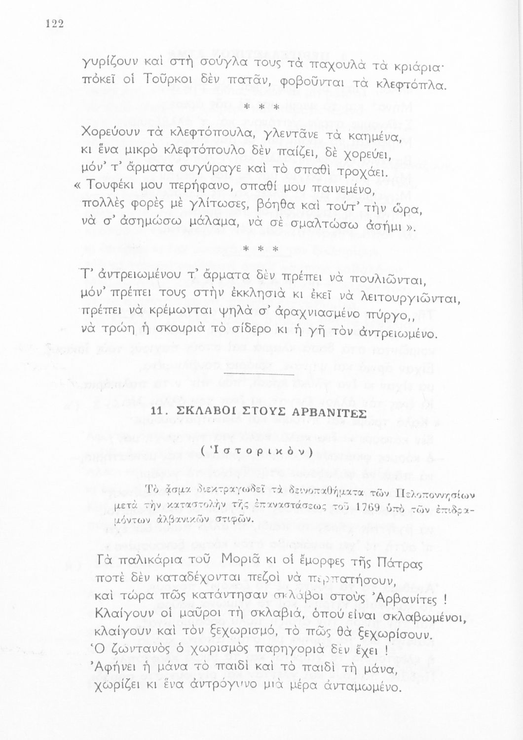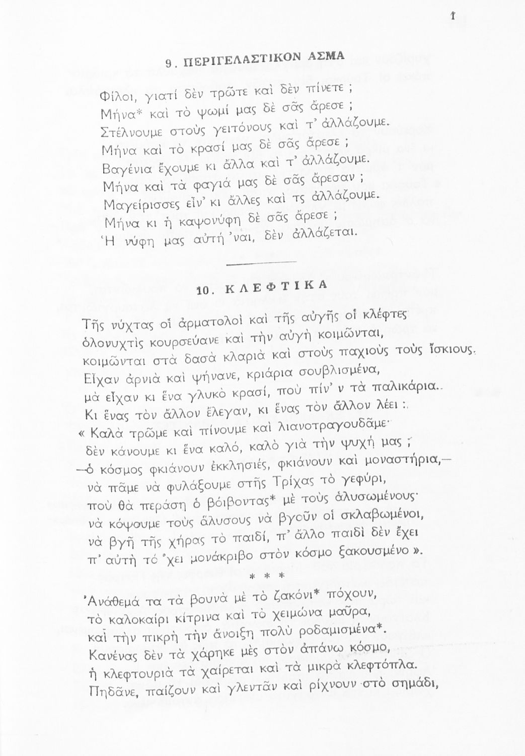 Σχολικό εγχειρίδιο Νέων Ελληνικών Ε΄ Γυμνασίου που περιέχει πεζά και ποιήματα συγγραφέων της βυζαντινής και μεταβυζαντινής περιόδου πατριωτικού και θρησκευτικού περιεχομένου. Περιλαμβάνει και πεζά και ποιήματα Ελλήνων και δημοτικά τραγούδια πατριωτικού περιεχομένου και παράρτημα με βιογραφίες των συγγραφέων και λεξιλόγιο. Φέρει το σύμβολο της δικτατορίας.