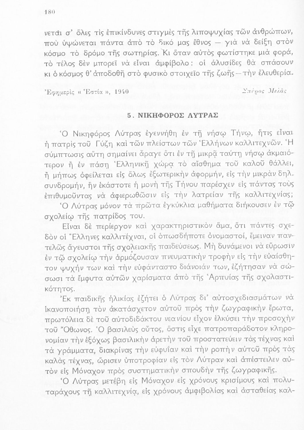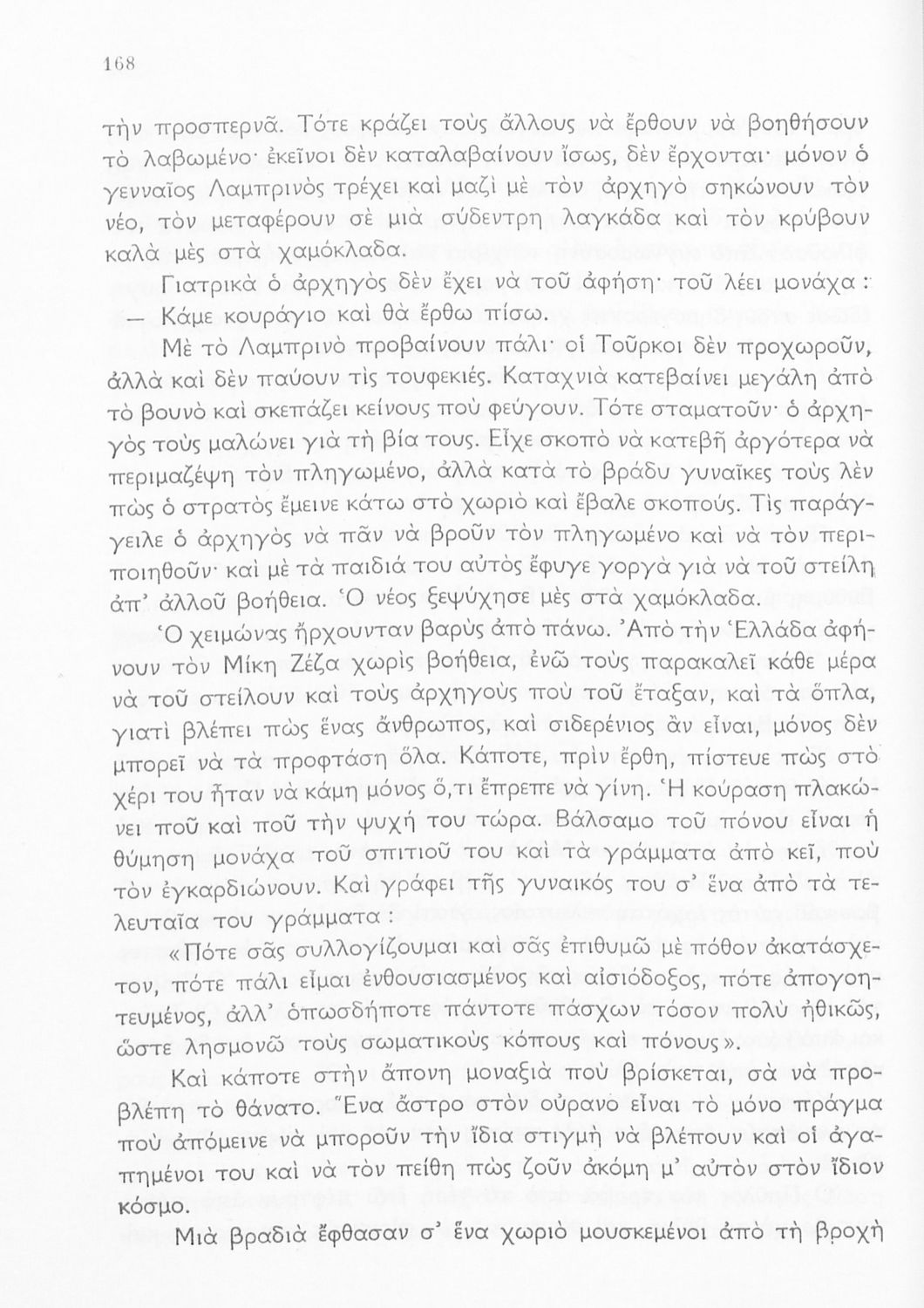 Σχολικό εγχειρίδιο Νέων Ελληνικών Ε΄ Γυμνασίου που περιέχει πεζά και ποιήματα συγγραφέων της βυζαντινής και μεταβυζαντινής περιόδου πατριωτικού και θρησκευτικού περιεχομένου. Περιλαμβάνει και πεζά και ποιήματα Ελλήνων και δημοτικά τραγούδια πατριωτικού περιεχομένου και παράρτημα με βιογραφίες των συγγραφέων και λεξιλόγιο. Φέρει το σύμβολο της δικτατορίας.