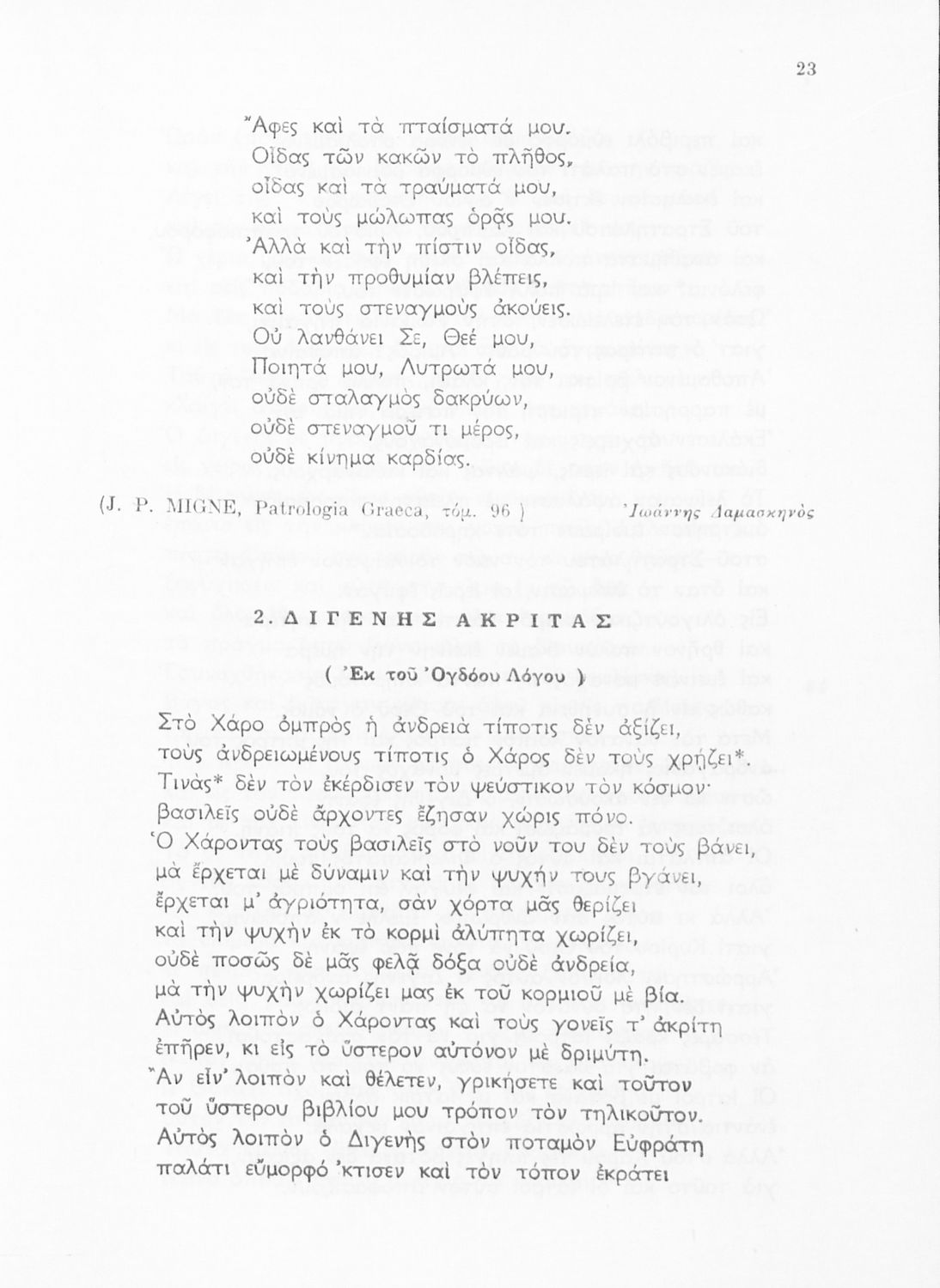 Σχολικό εγχειρίδιο Νέων Ελληνικών Ε΄ Γυμνασίου που περιέχει πεζά και ποιήματα συγγραφέων της βυζαντινής και μεταβυζαντινής περιόδου πατριωτικού και θρησκευτικού περιεχομένου. Περιλαμβάνει και πεζά και ποιήματα