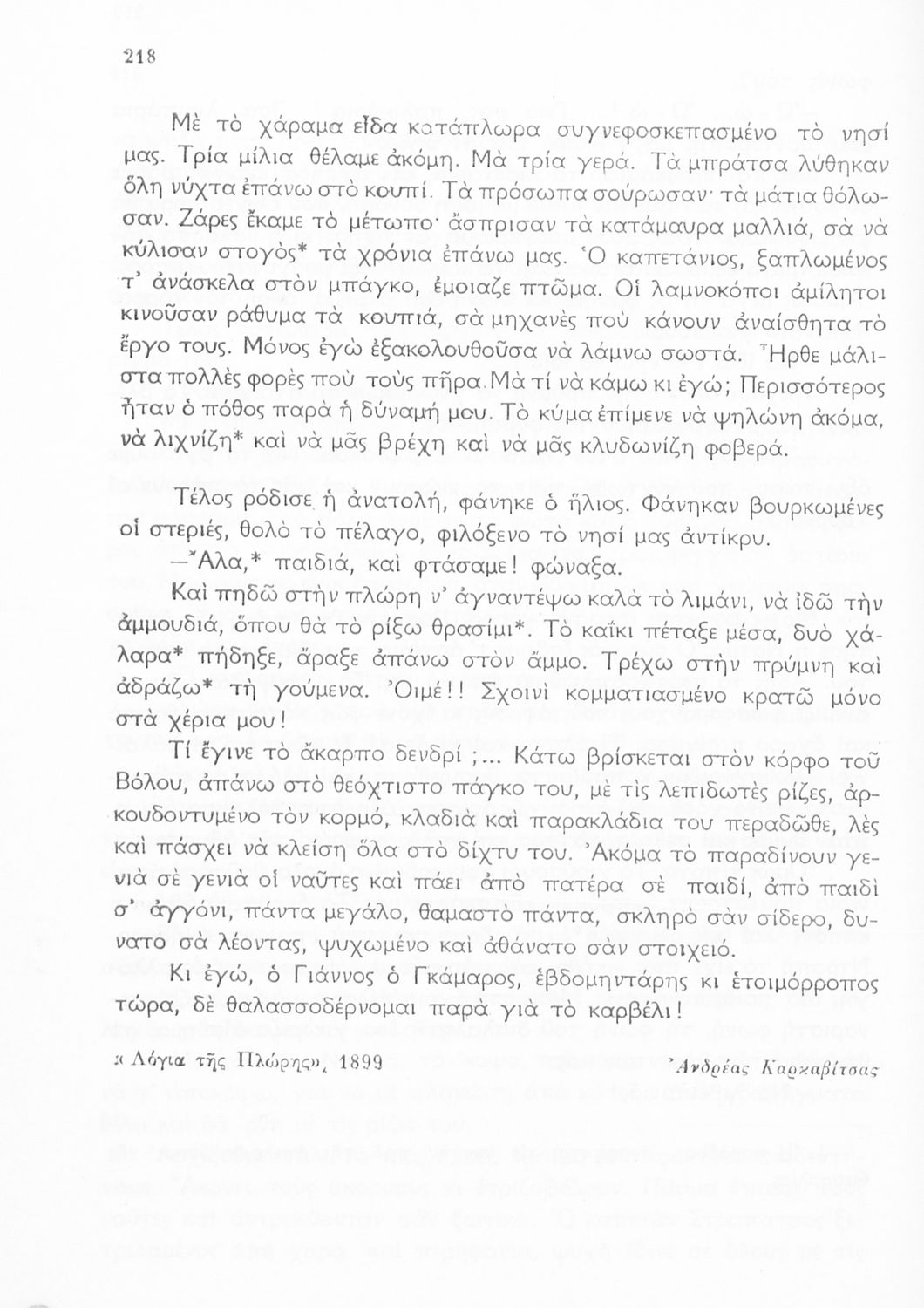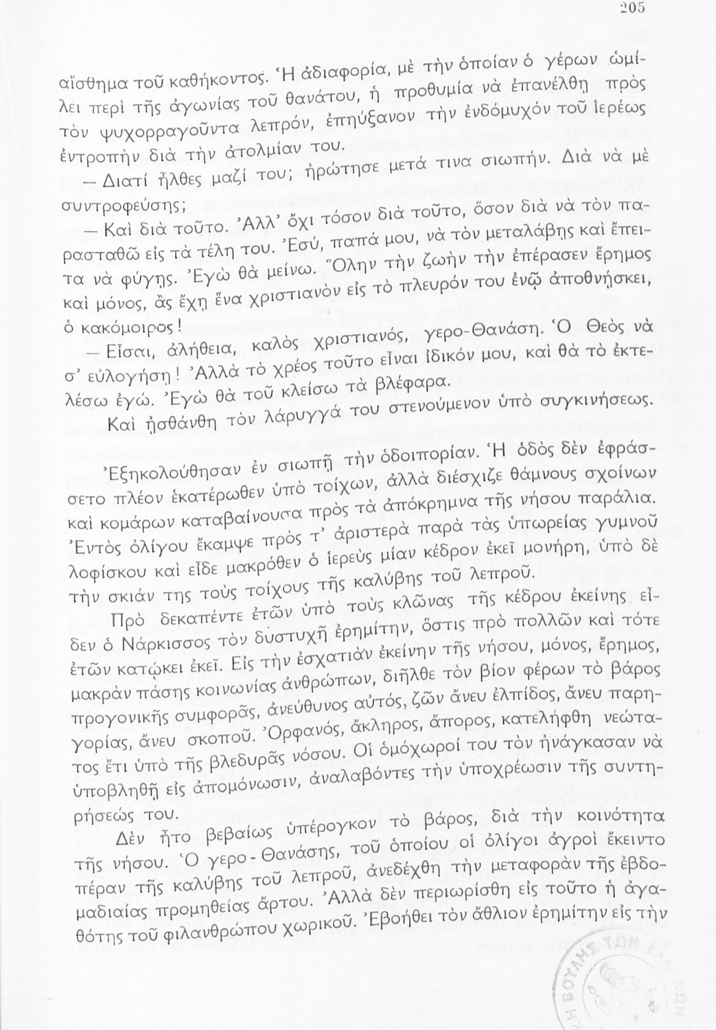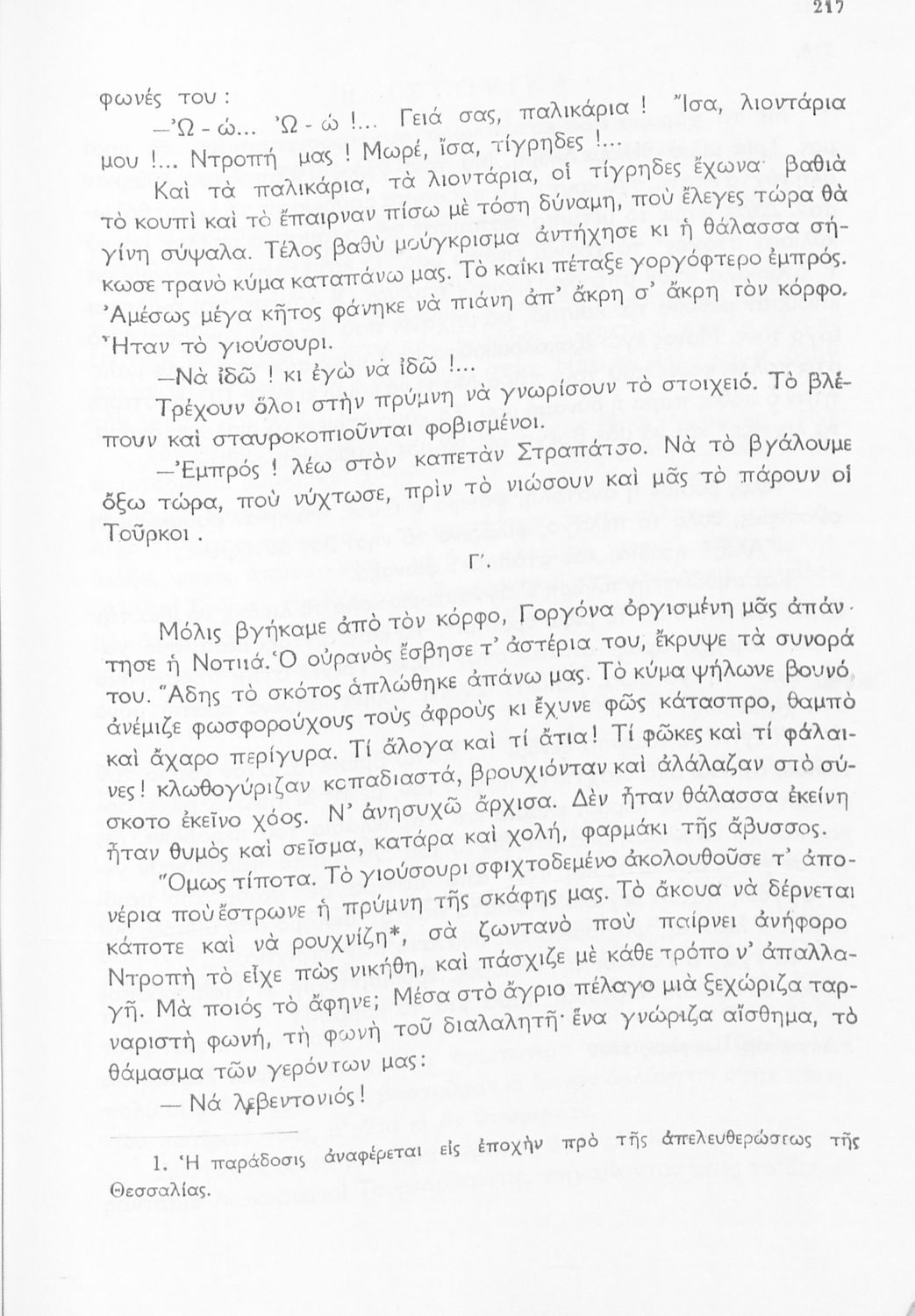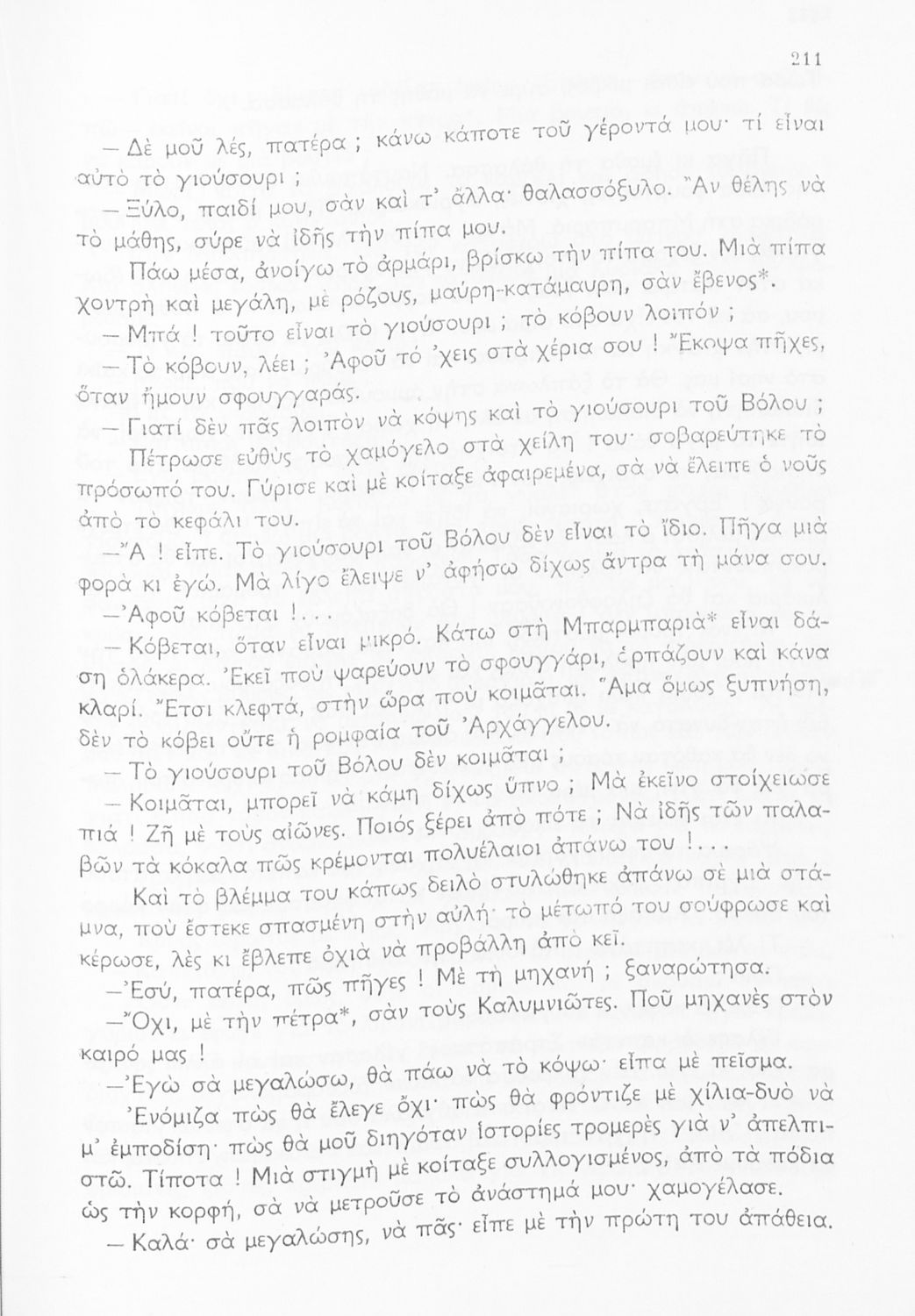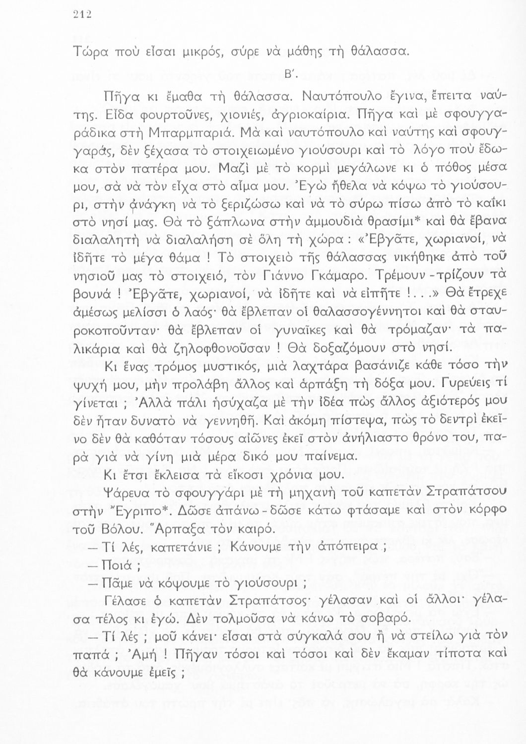 Σχολικό εγχειρίδιο Νέων Ελληνικών Ε΄ Γυμνασίου που περιέχει πεζά και ποιήματα συγγραφέων της βυζαντινής και μεταβυζαντινής περιόδου πατριωτικού και θρησκευτικού περιεχομένου. Περιλαμβάνει και πεζά και ποιήματα Ελλήνων και δημοτικά τραγούδια πατριωτικού περιεχομένου και παράρτημα με βιογραφίες των συγγραφέων και λεξιλόγιο. Φέρει το σύμβολο της δικτατορίας.