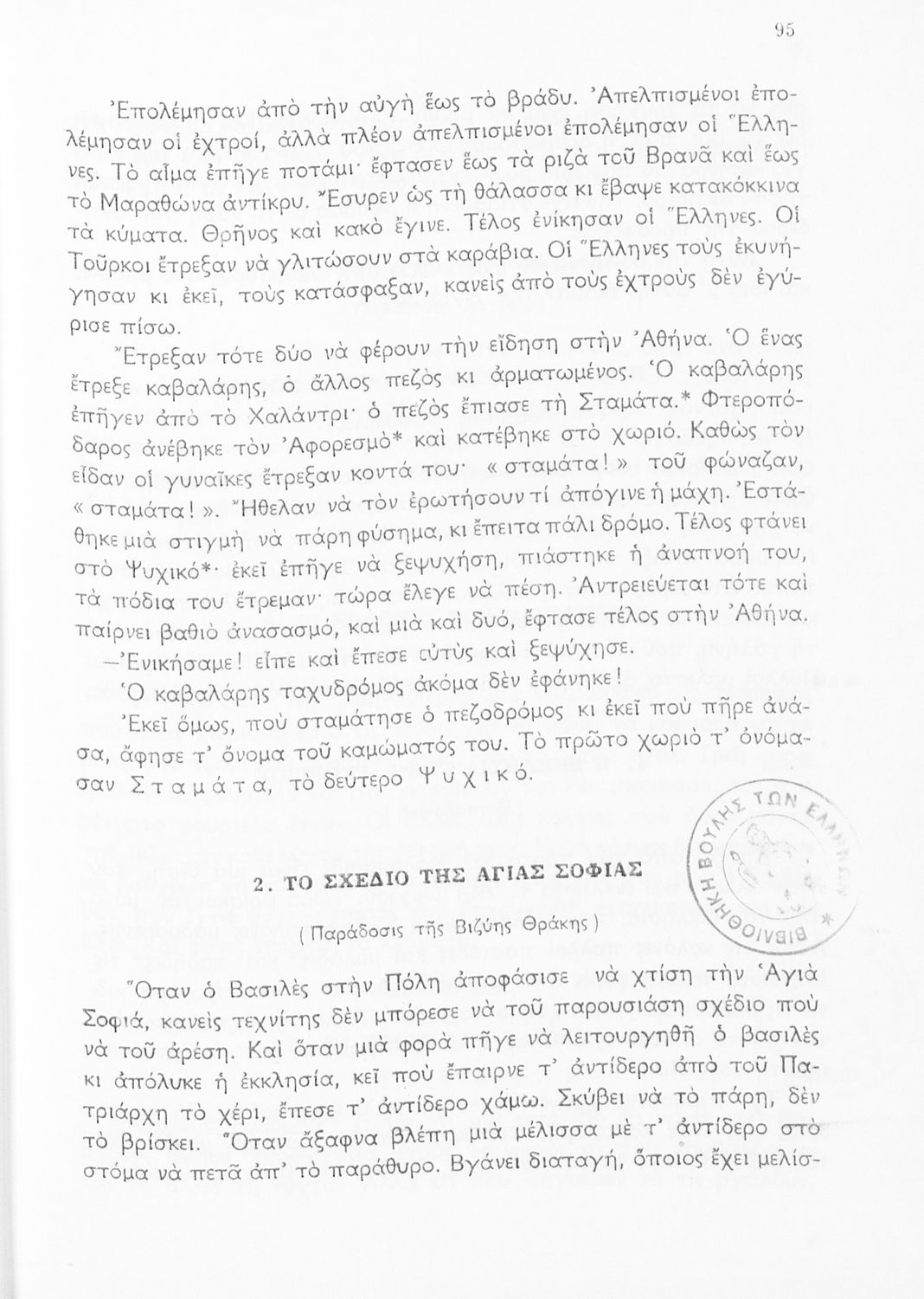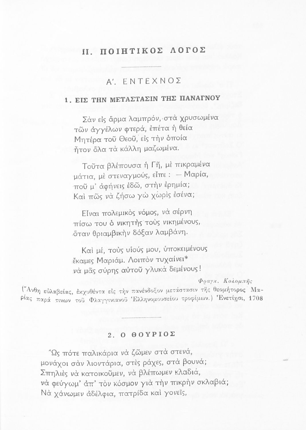Σχολικό εγχειρίδιο Νέων Ελληνικών Ε΄ Γυμνασίου που περιέχει πεζά και ποιήματα συγγραφέων της βυζαντινής και μεταβυζαντινής περιόδου πατριωτικού και θρησκευτικού περιεχομένου. Περιλαμβάνει και πεζά και ποιήματα