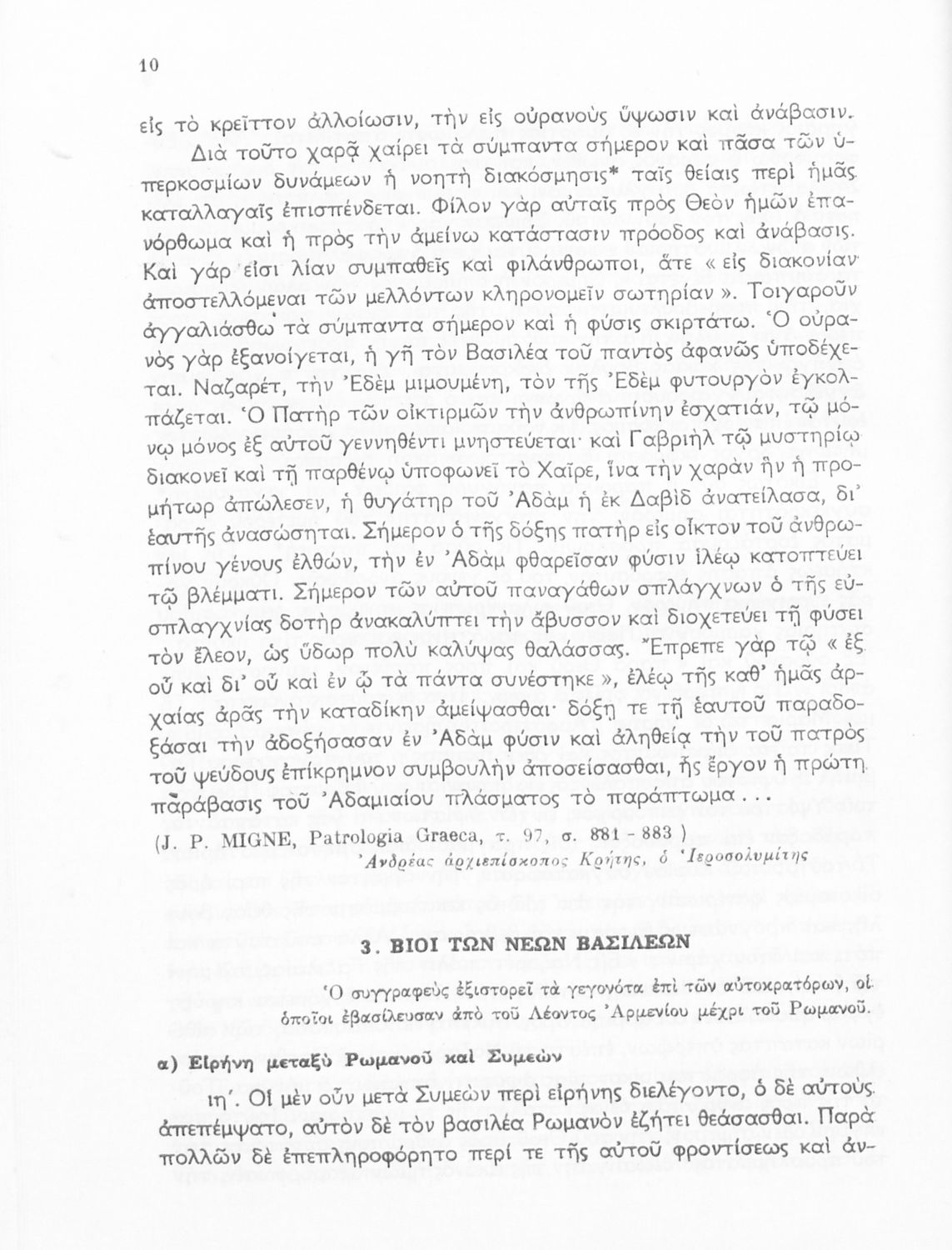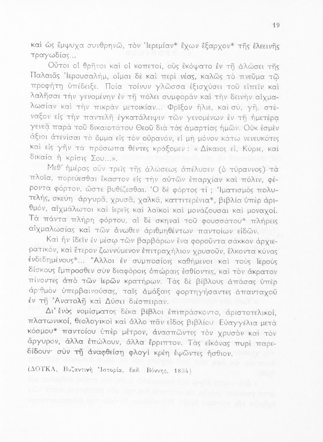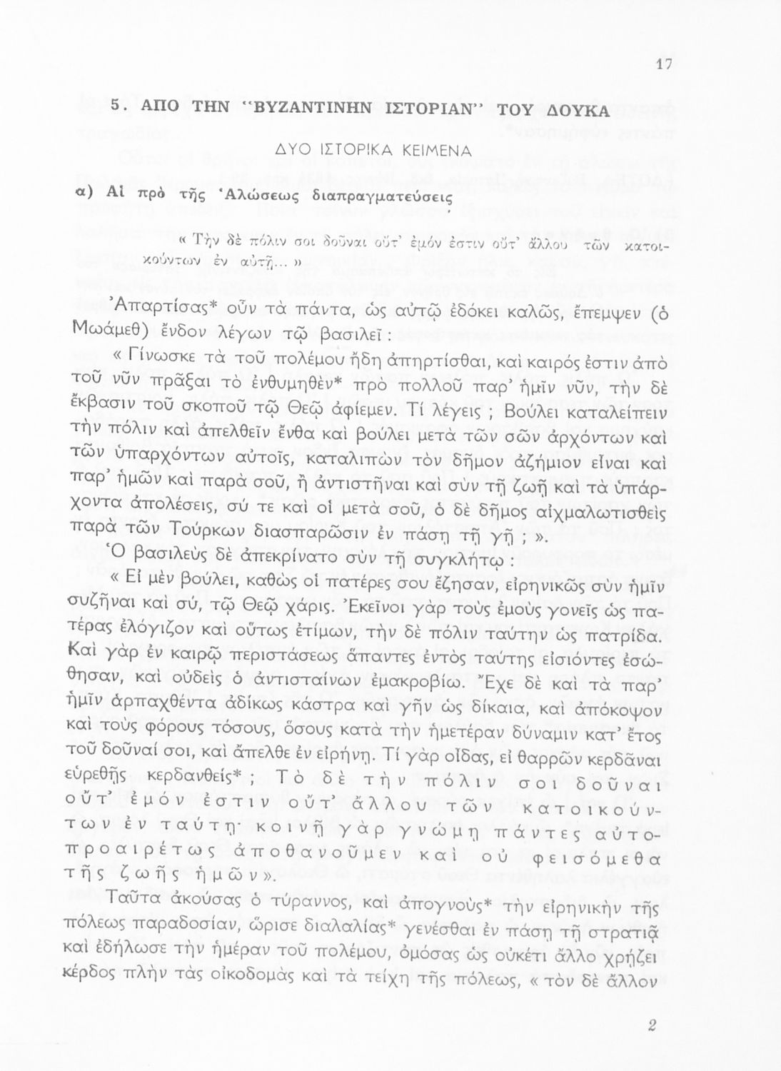 Σχολικό εγχειρίδιο Νέων Ελληνικών Ε΄ Γυμνασίου που περιέχει πεζά και ποιήματα συγγραφέων της βυζαντινής και μεταβυζαντινής περιόδου πατριωτικού και θρησκευτικού περιεχομένου. Περιλαμβάνει και πεζά και ποιήματα Ελλήνων και δημοτικά τραγούδια πατριωτικού περιεχομένου και παράρτημα με βιογραφίες των συγγραφέων και λεξιλόγιο. Φέρει το σύμβολο της δικτατορίας.
