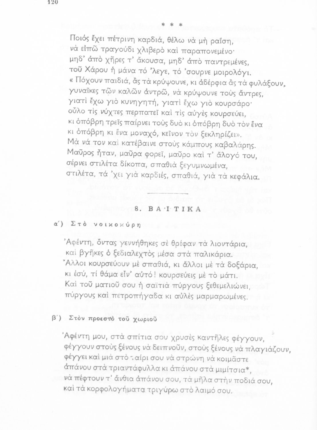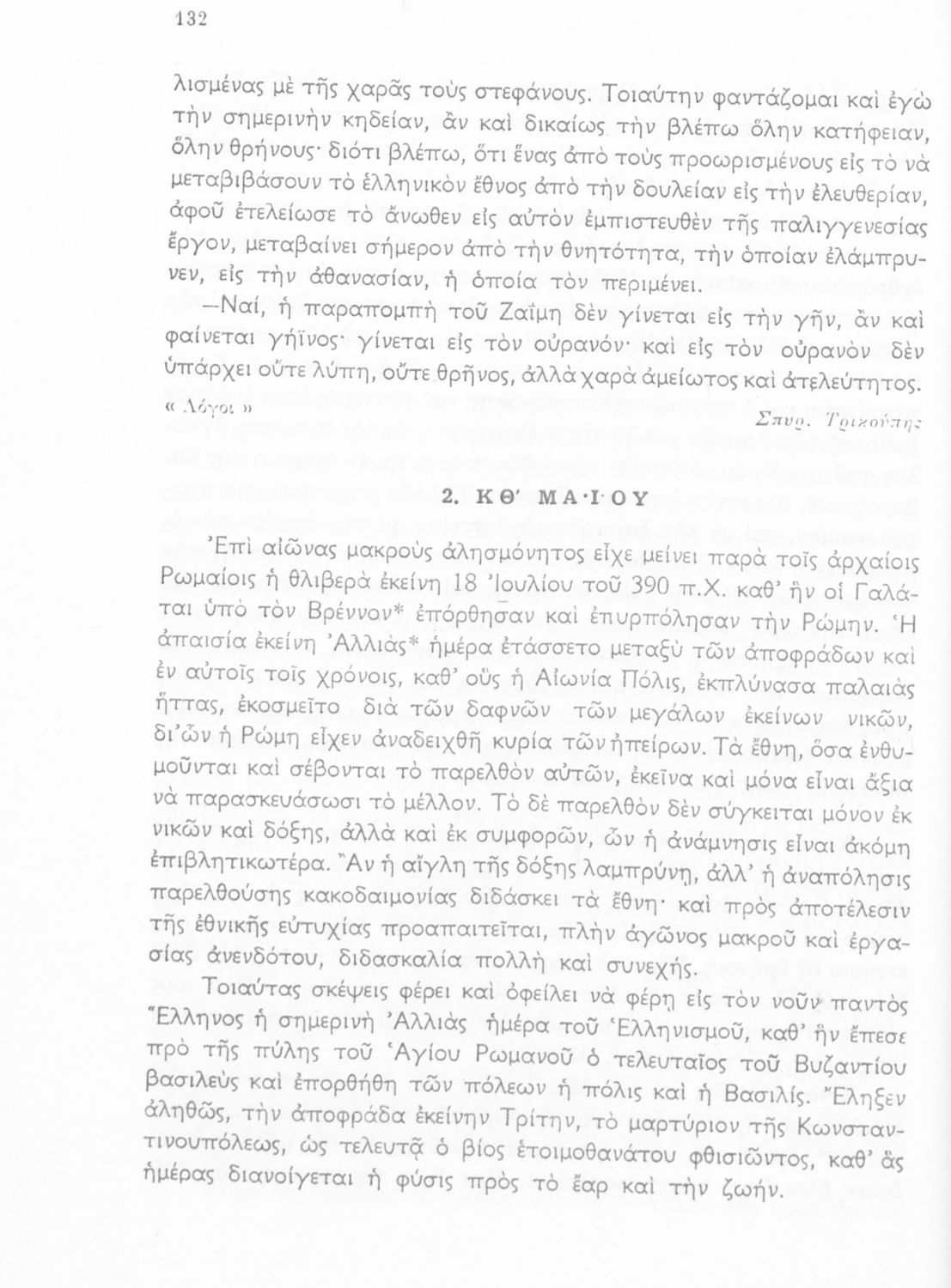 Σχολικό εγχειρίδιο Νέων Ελληνικών Ε΄ Γυμνασίου που περιέχει πεζά και ποιήματα συγγραφέων της βυζαντινής και μεταβυζαντινής περιόδου πατριωτικού και θρησκευτικού περιεχομένου. Περιλαμβάνει και πεζά και ποιήματα Ελλήνων και δημοτικά τραγούδια πατριωτικού περιεχομένου και παράρτημα με βιογραφίες των συγγραφέων και λεξιλόγιο. Φέρει το σύμβολο της δικτατορίας.