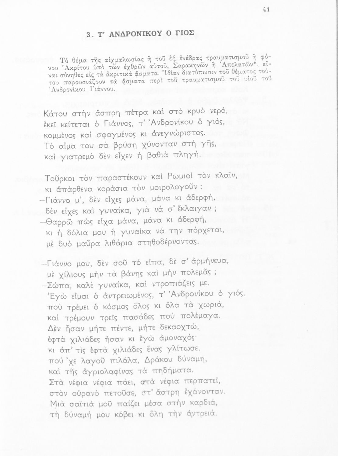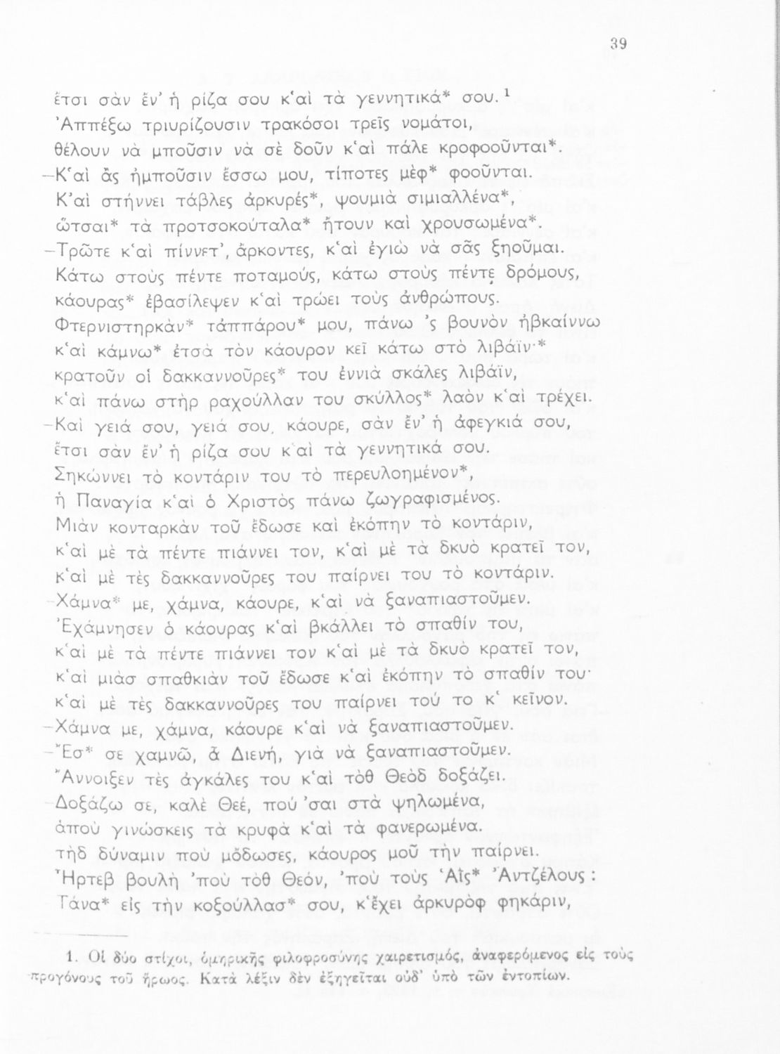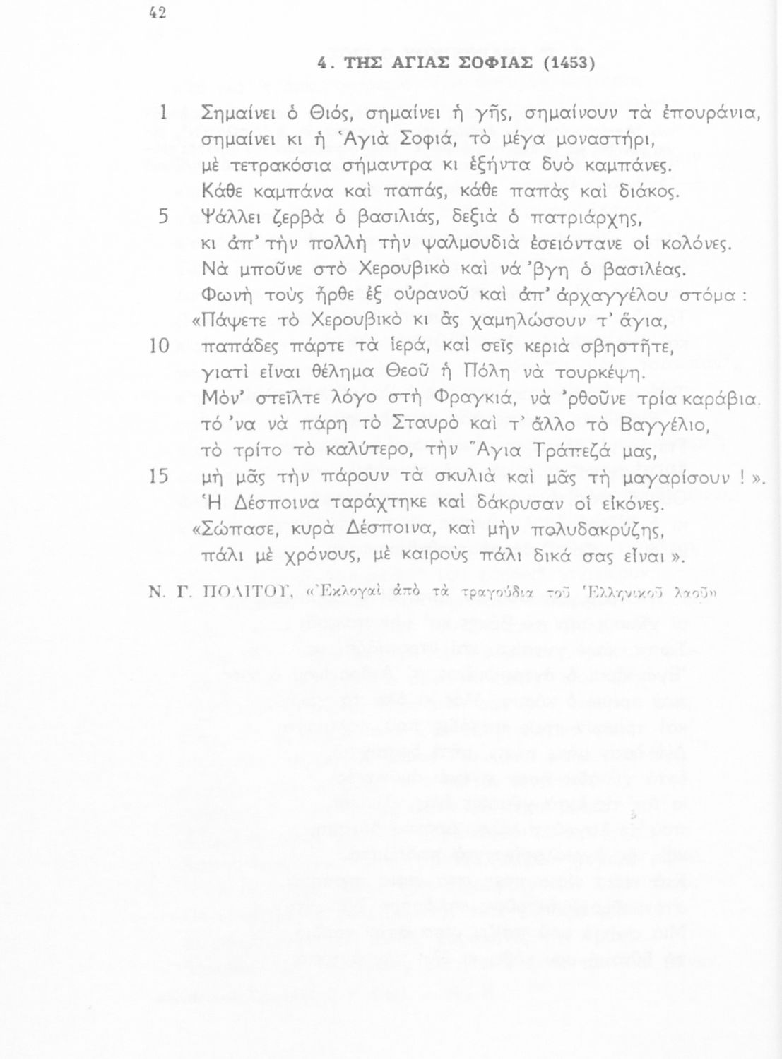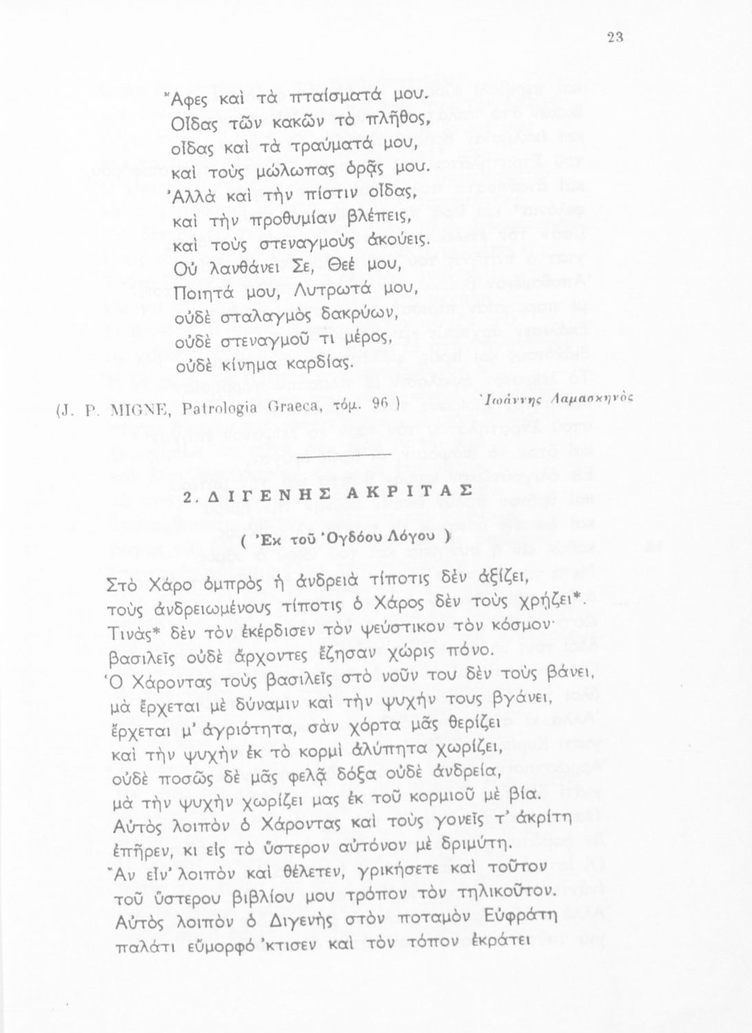 Σχολικό εγχειρίδιο Νέων Ελληνικών Ε΄ Γυμνασίου που περιέχει πεζά και ποιήματα συγγραφέων της βυζαντινής και μεταβυζαντινής περιόδου πατριωτικού και θρησκευτικού περιεχομένου. Περιλαμβάνει και πεζά και ποιήματα
