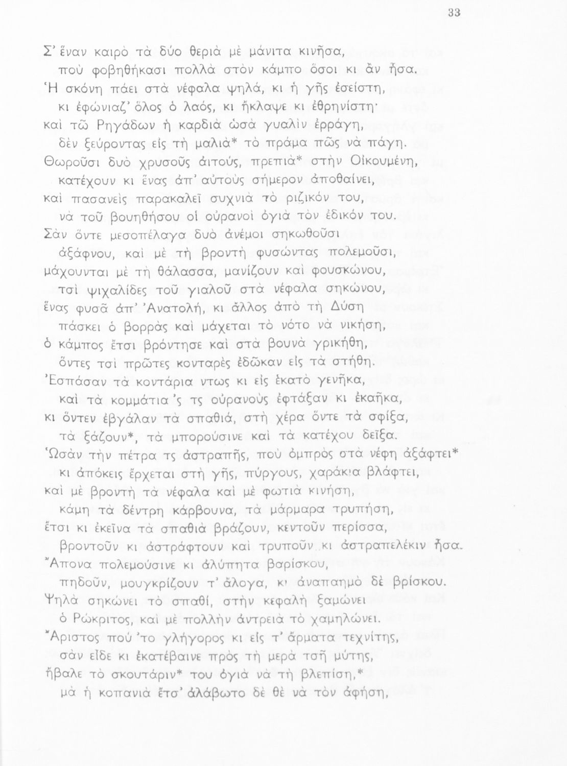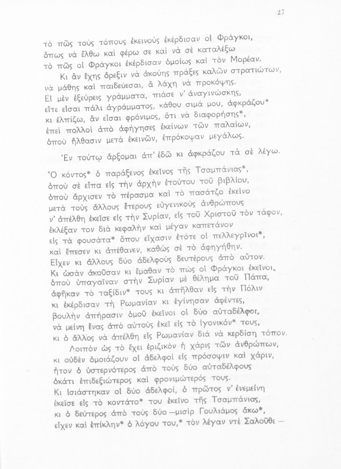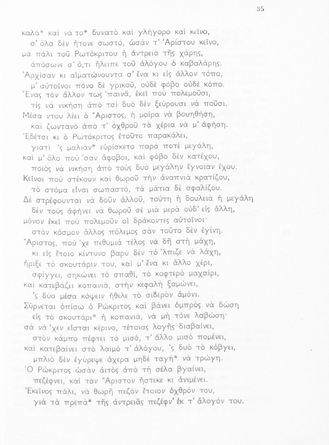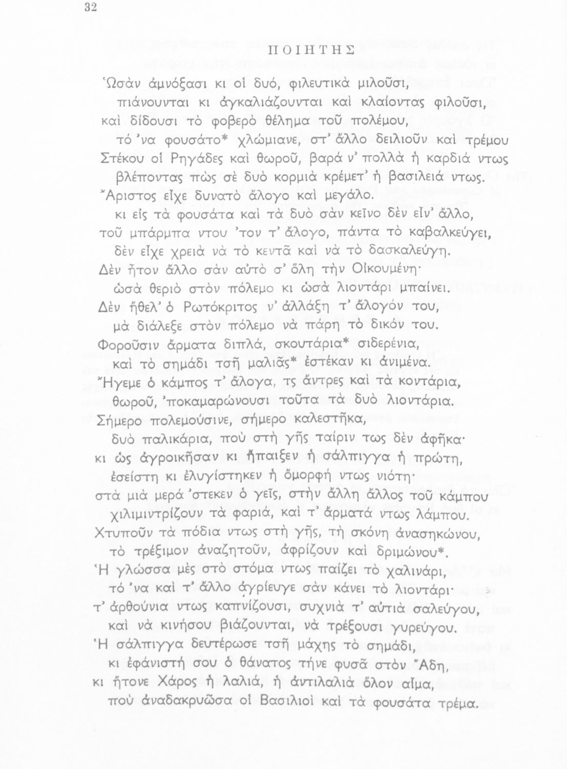 Σχολικό εγχειρίδιο Νέων Ελληνικών Ε΄ Γυμνασίου που περιέχει πεζά και ποιήματα συγγραφέων της βυζαντινής και μεταβυζαντινής περιόδου πατριωτικού και θρησκευτικού περιεχομένου. Περιλαμβάνει και πεζά και ποιήματα Ελλήνων και δημοτικά τραγούδια πατριωτικού περιεχομένου και παράρτημα με βιογραφίες των συγγραφέων και λεξιλόγιο. Φέρει το σύμβολο της δικτατορίας.