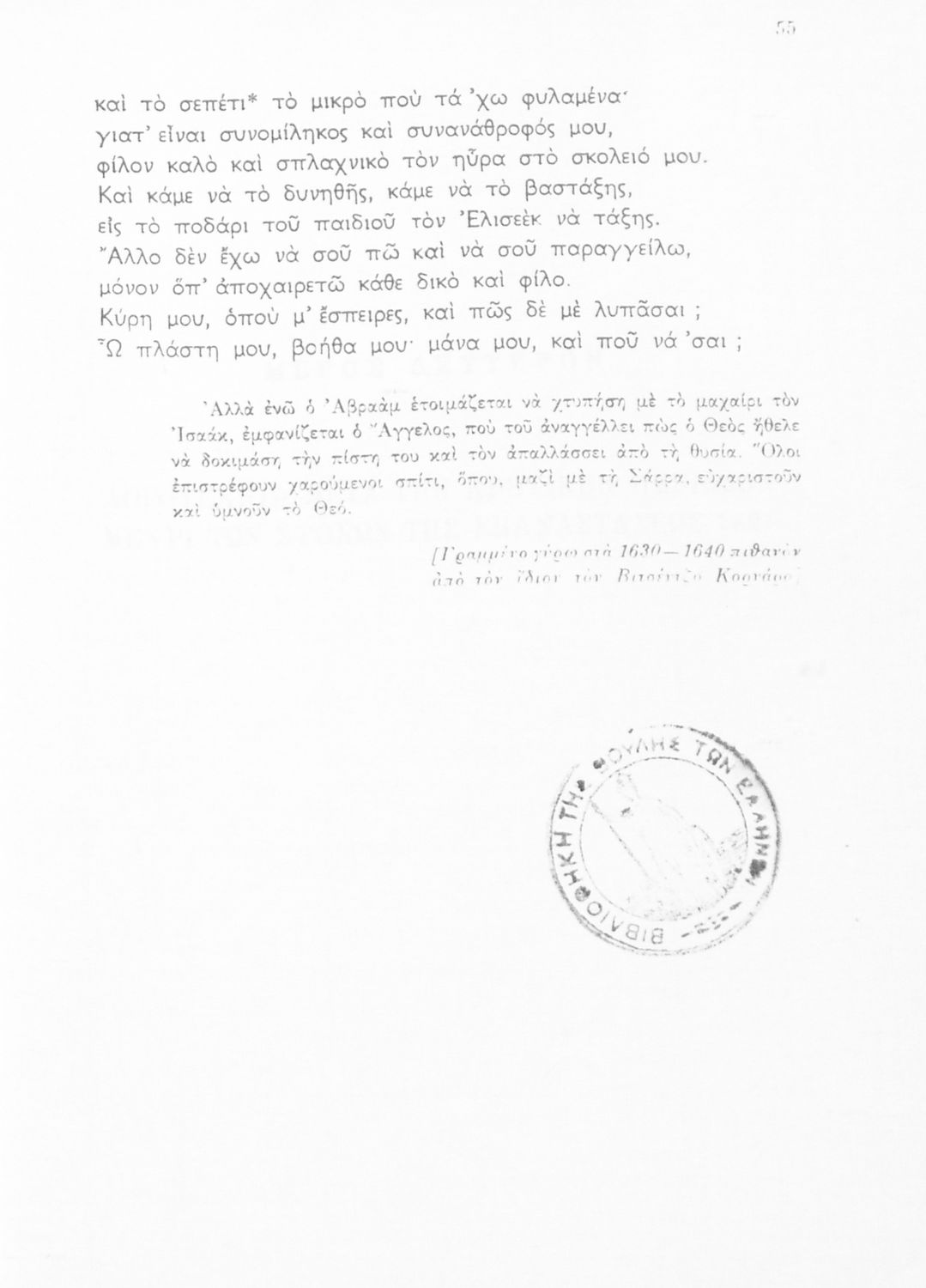 Σχολικό εγχειρίδιο Νέων Ελληνικών Ε΄ Γυμνασίου που περιέχει πεζά και ποιήματα συγγραφέων της βυζαντινής και μεταβυζαντινής περιόδου πατριωτικού και θρησκευτικού περιεχομένου. Περιλαμβάνει και πεζά και ποιήματα