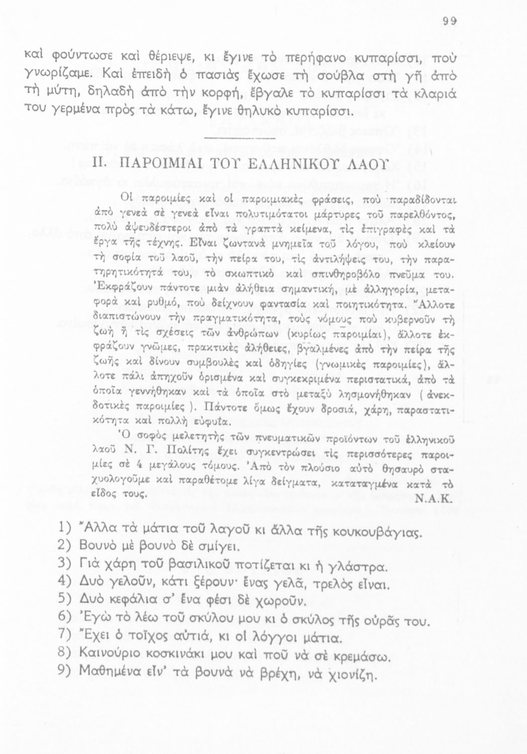 Σχολικό εγχειρίδιο Νέων Ελληνικών Ε΄ Γυμνασίου που περιλαμβάνει κείμενα Ελλήνων συγγραφέων και δημοτικά τραγούδια με θέματα από την σύγχρονη ελληνική ιστορία, τη θρησκευτική παράδοση, την οικογενειακή ζωή, και