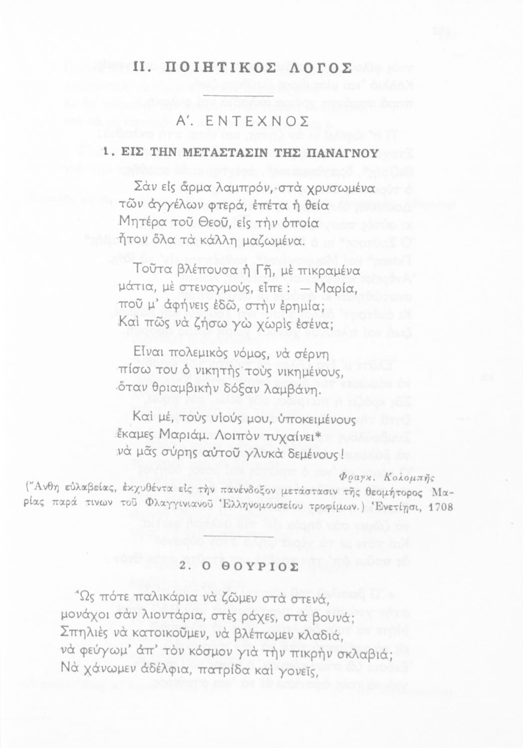Σχολικό εγχειρίδιο Νέων Ελληνικών Ε΄ Γυμνασίου που περιέχει πεζά και ποιήματα συγγραφέων της βυζαντινής και μεταβυζαντινής περιόδου πατριωτικού και θρησκευτικού περιεχομένου. Περιλαμβάνει και πεζά και ποιήματα