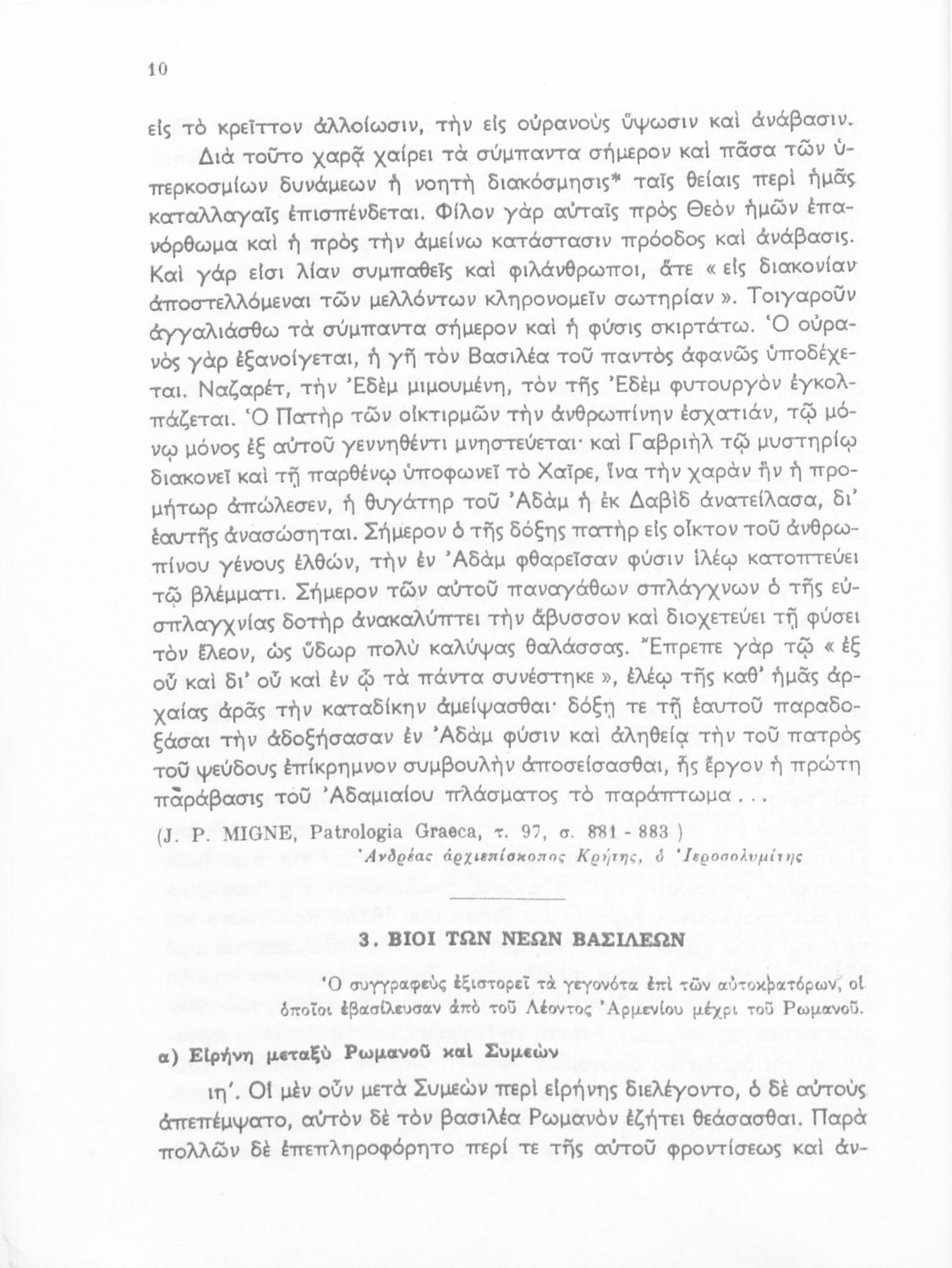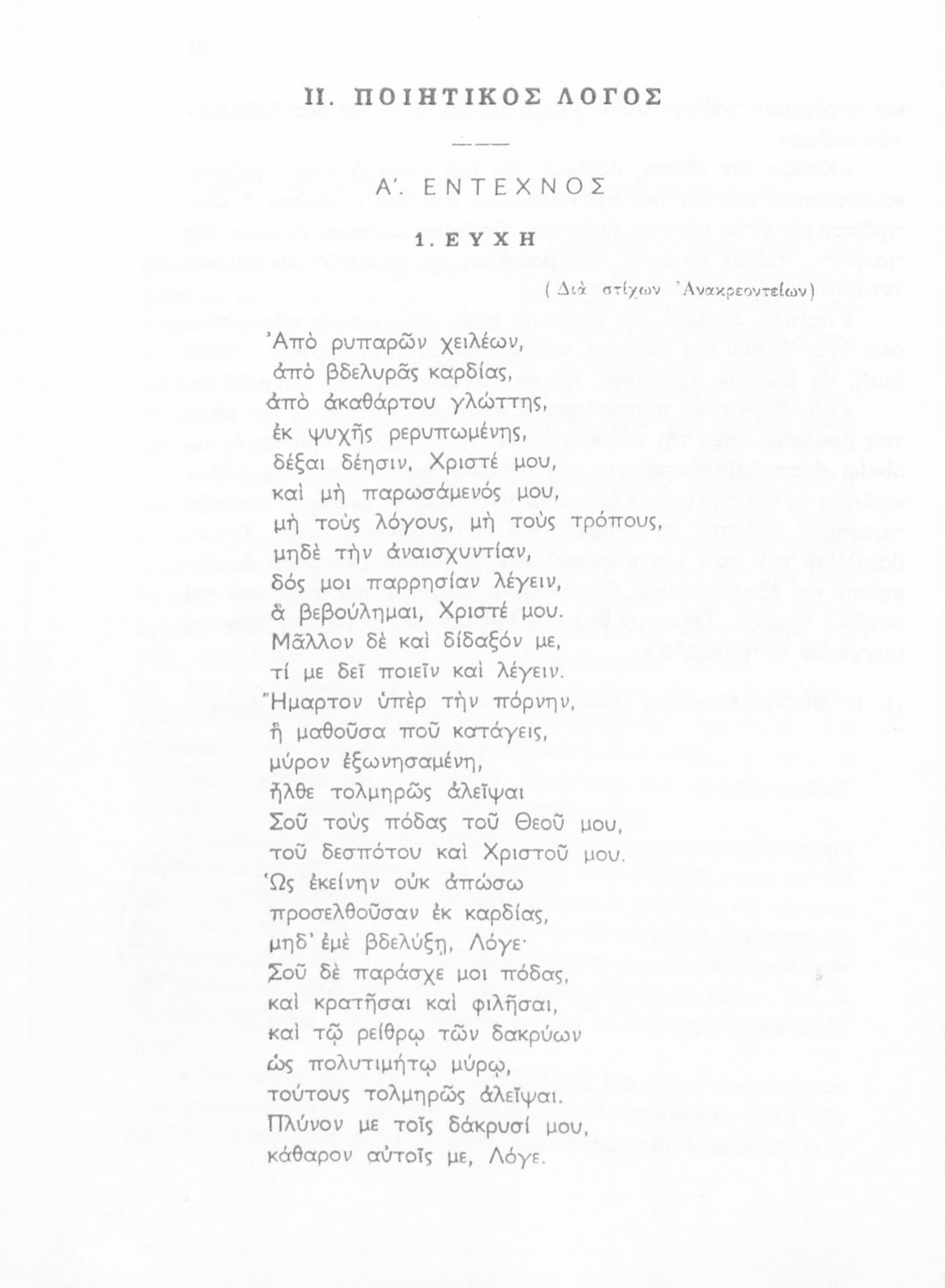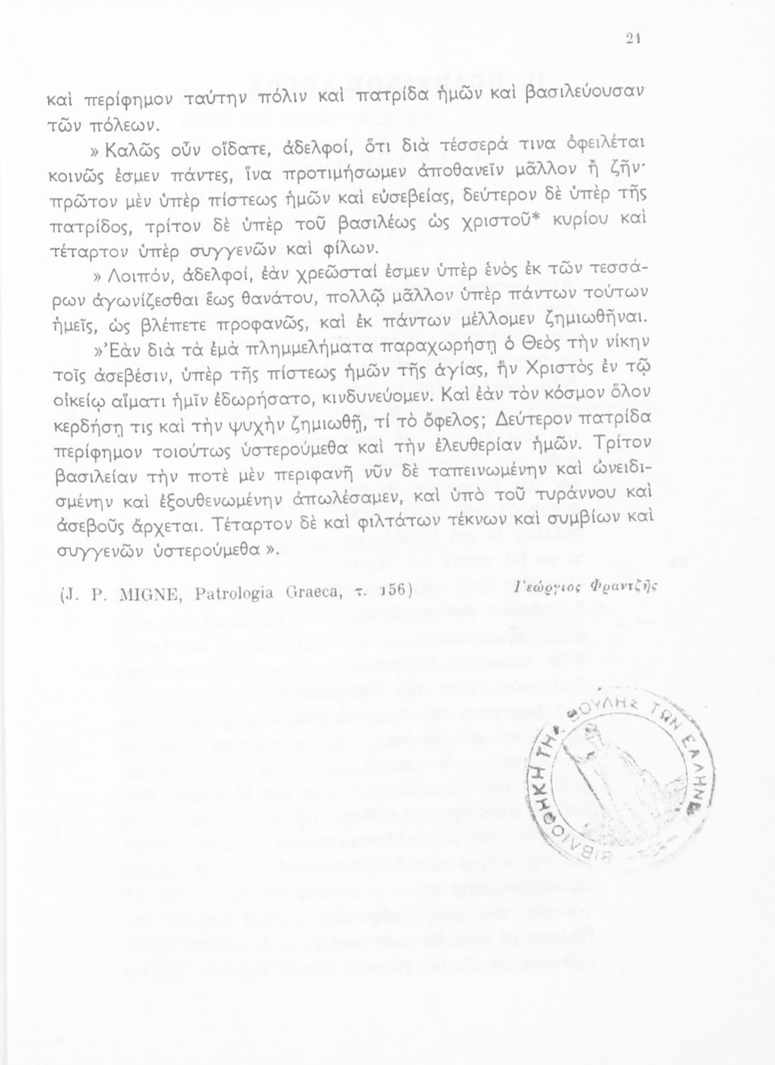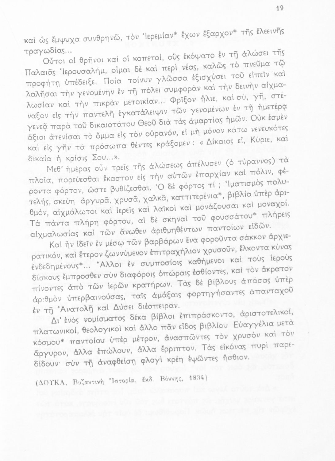 Σχολικό εγχειρίδιο Νέων Ελληνικών Ε΄ Γυμνασίου που περιέχει πεζά και ποιήματα συγγραφέων της βυζαντινής και μεταβυζαντινής περιόδου πατριωτικού και θρησκευτικού περιεχομένου. Περιλαμβάνει και πεζά και ποιήματα Ελλήνων και δημοτικά τραγούδια πατριωτικού περιεχομένου και παράρτημα με βιογραφίες των συγγραφέων και λεξιλόγιο. Φέρει το σύμβολο της δικτατορίας.