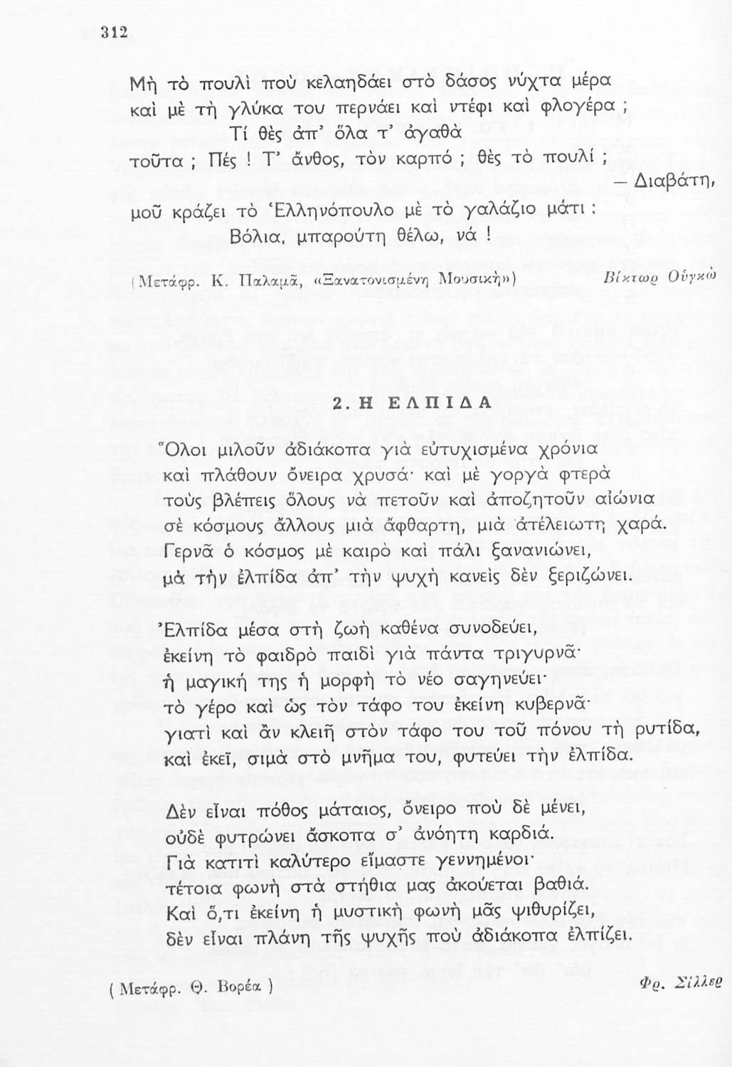 Σχολικό εγχειρίδιο Νέων Ελληνικών Β΄ Εξαταξίου Γυμνασίου που περιλαμβάνει που περιλαμβάνει ποιήματα και πεζά Ελλήνων συγγραφέων εμπνευσμένα από την αρχαία και σύγχρονη ελληνική ιστορία, την ελληνική φύση και ...