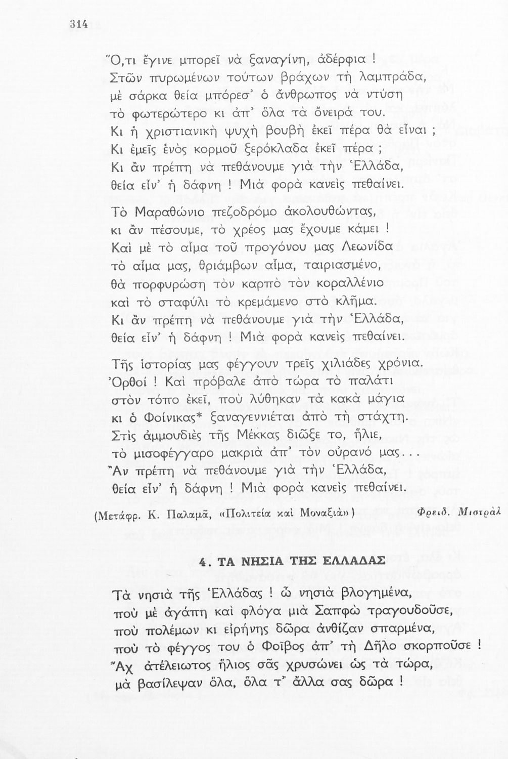 Σχολικό εγχειρίδιο Νέων Ελληνικών Δ΄ Γυμνασίου και Β΄ Αστικού Σχολείου που περιέχει πεζά και ποιήματα Ελλήνων συγγραφέων εμπνευσμένα από τη θρησκευτική και κοινωνική ζωή, την ελληνική μυθολογία, την αρχαία και