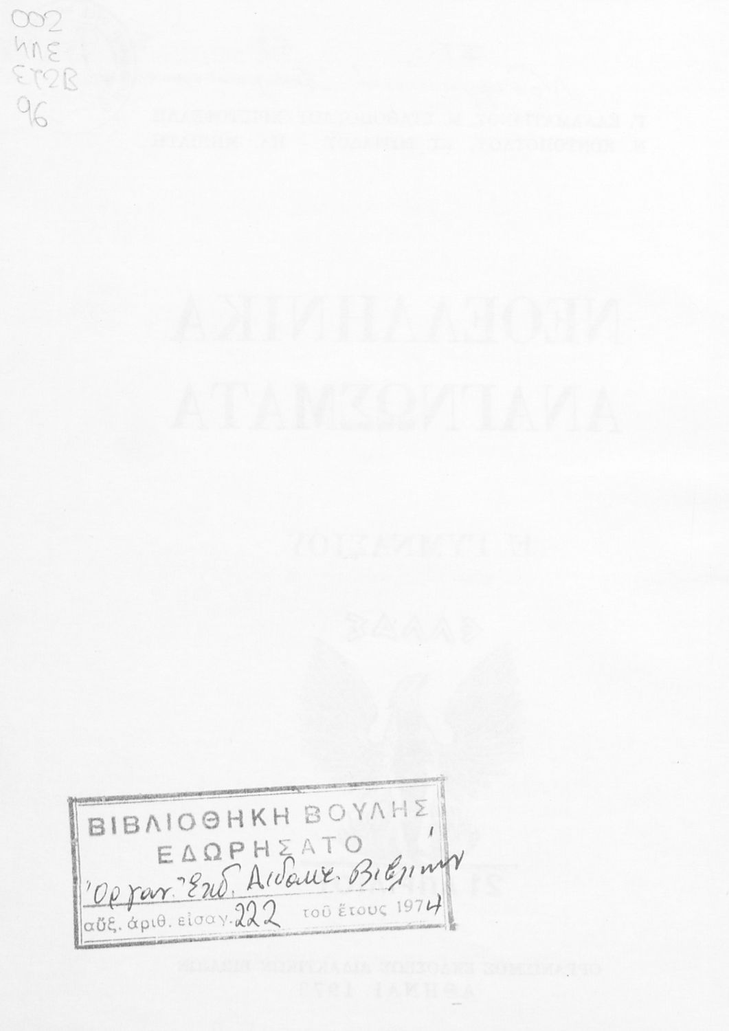 Εντοπισμός πρωτοτύπου: Βιβλιοθήκη της Βουλής των Ελλήνων