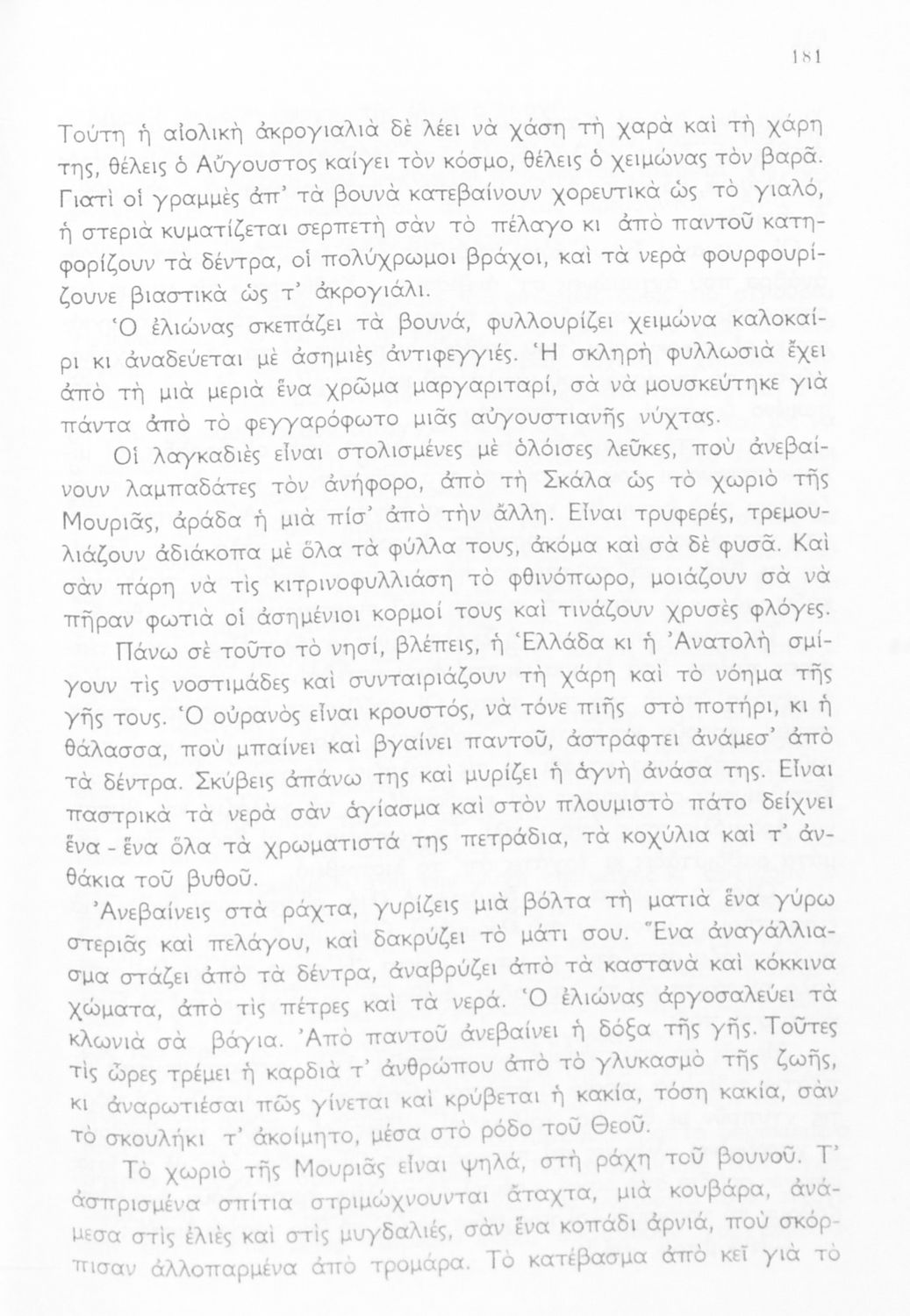 Σχολικό εγχειρίδιο Νέων Ελληνικών για την ΣΤ΄ Γυμνασίου. Περιέχει πεζά και ποιήματα Ελλήνων λογοτεχνών εμπνευσμένα από την καθημερινή και ιστορική ζωή του τόπου. Στο βιβλίο υπάρχουν βιογραφικές σημειώσεις των ...