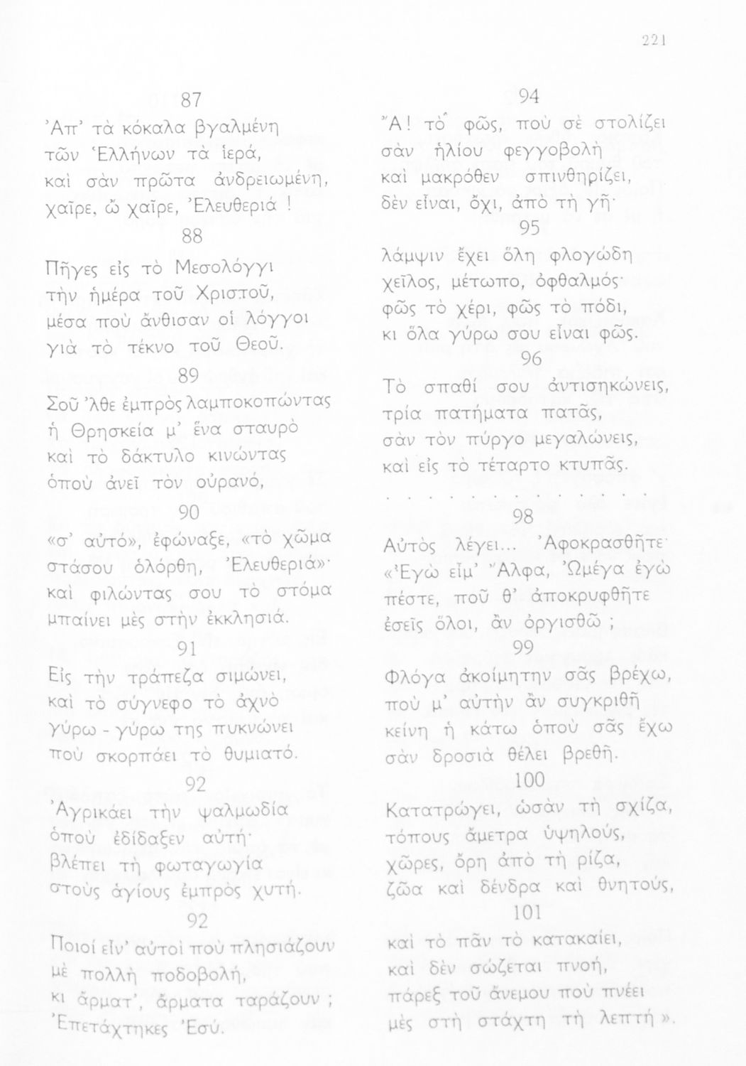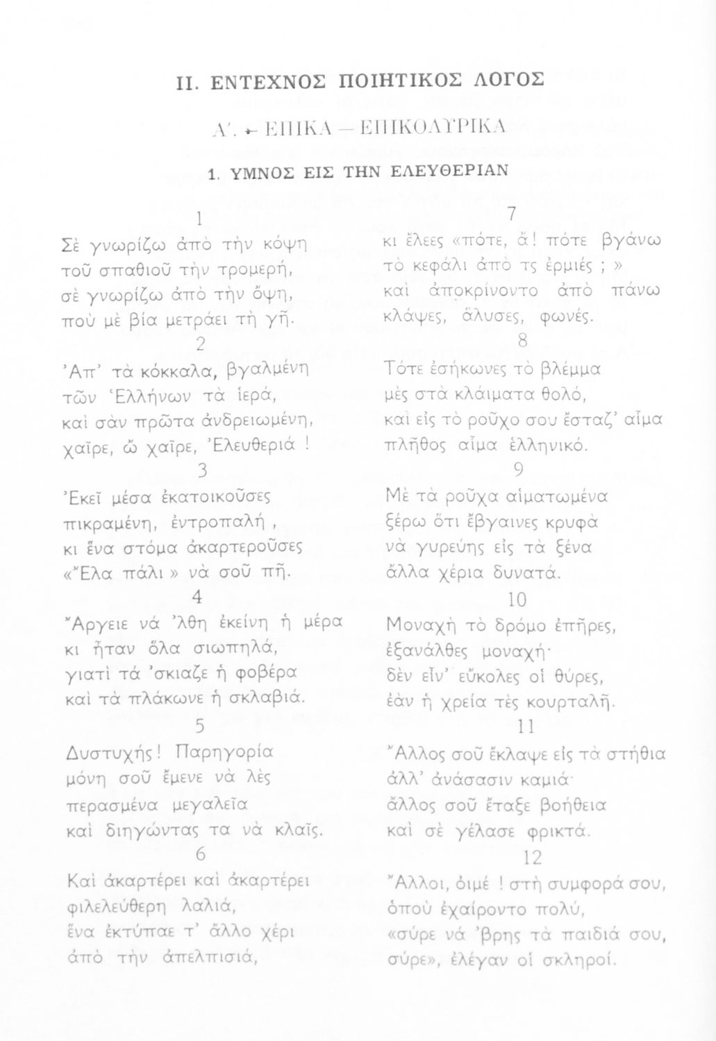 Σχολικό εγχειρίδιο για την ΣΤ΄ Γυμνασίου για το μάθημα των Νέων Ελληνικών. Το εγχειρίδιο περιλαμβάνει κείμενα πεζού λόγου και ποιήματα γραμμένα σε δημοτική και καθαρεύουσα γλώσσα από την βυζαντινή και μεταβυζαντινή λογοτεχνία, την κρητική περίοδο, δημοτικά και θεατρικά ποιήματα, κείμενα που σχετίζονται με την Ελληνική Επανάσταση, από την απελευθερωμένη Ελλάδα και μεταφράσεις ξένων ποιητικών και λογοτεχνικών κειμένων.
