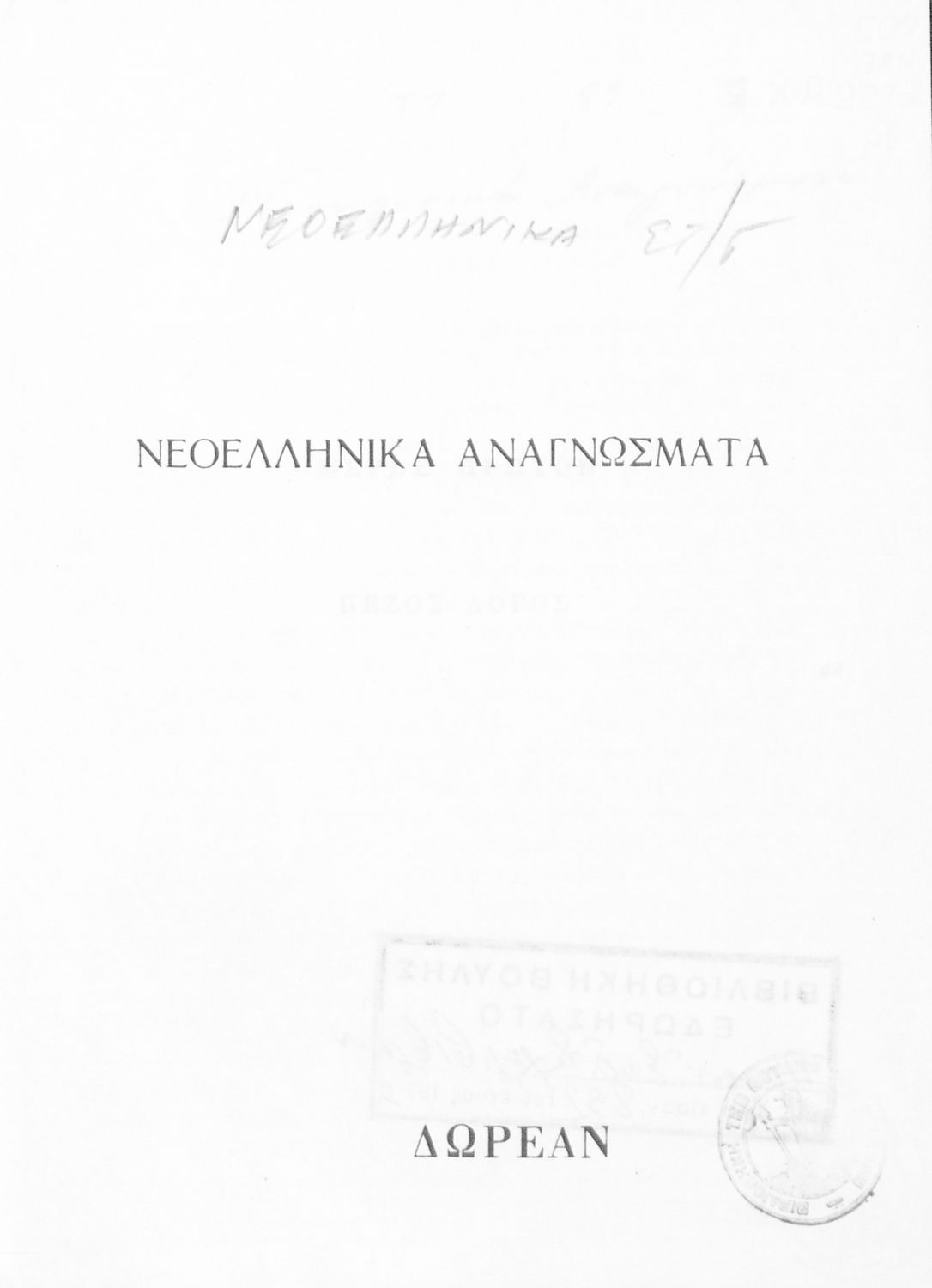 Εντοπισμός πρωτοτύπου: Βιβλιοθήκη της Βουλής των Ελλήνων Κωδικός βιβλιοθήκης: 20556199 |