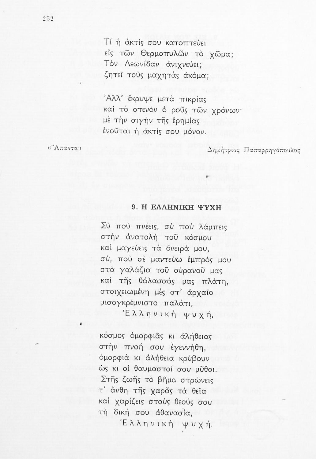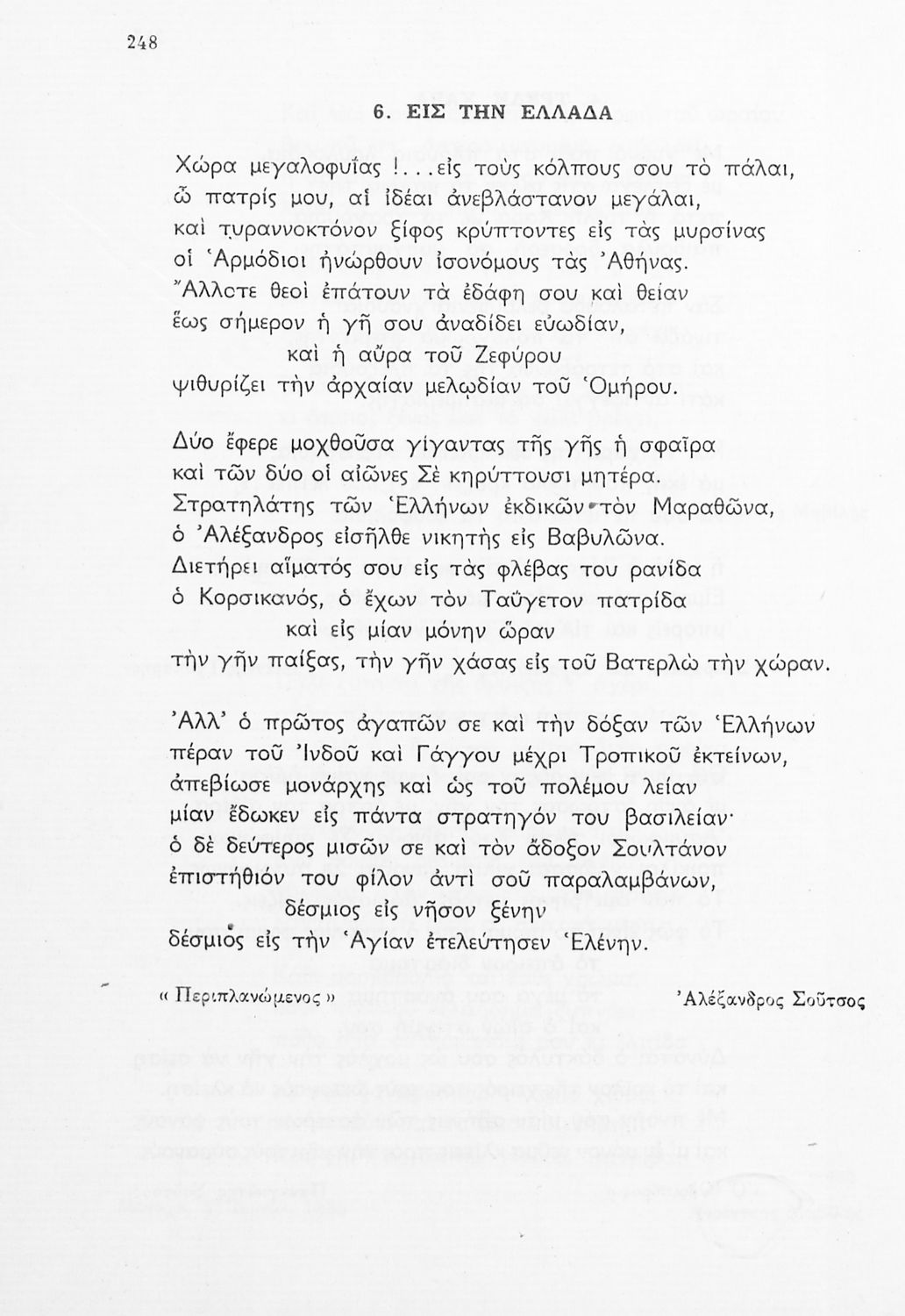 Σχολικό Εγχειρίδιο Λογοτεχνίας της ΣΤ΄ Γυμνασίου. Το βιβλίο περιέχει κείμενα και λογοτεχνικά αποσπάσματα Ελλήνων πεζογράφων μέσα από τα οποία παρουσιάζονται ήθη και έθιμα της Ελλάδας καθώς και ιστορικά πολεμικά γεγονότα τα οποία και συνθέτουν την εθνική ταυτότητα. Στο πρώτο μέρος υπάρχουν πεζά κείμενα όπως απομνημονεύματα, μελέτες, διατριβές, επιστολές, επιστημονικά και φιλοσοφικά κείμενα. Το δεύτερο μέρος αναφέρεται στην ποίηση και περιέχει ιστορικά, λυρικά και σατυρικά ποιήματα. Το βιβλίο τελειώνει με αναφορά στην ξένη λογοτεχνία όπως την Ιταλική, Γαλλική και την Γερμανική.