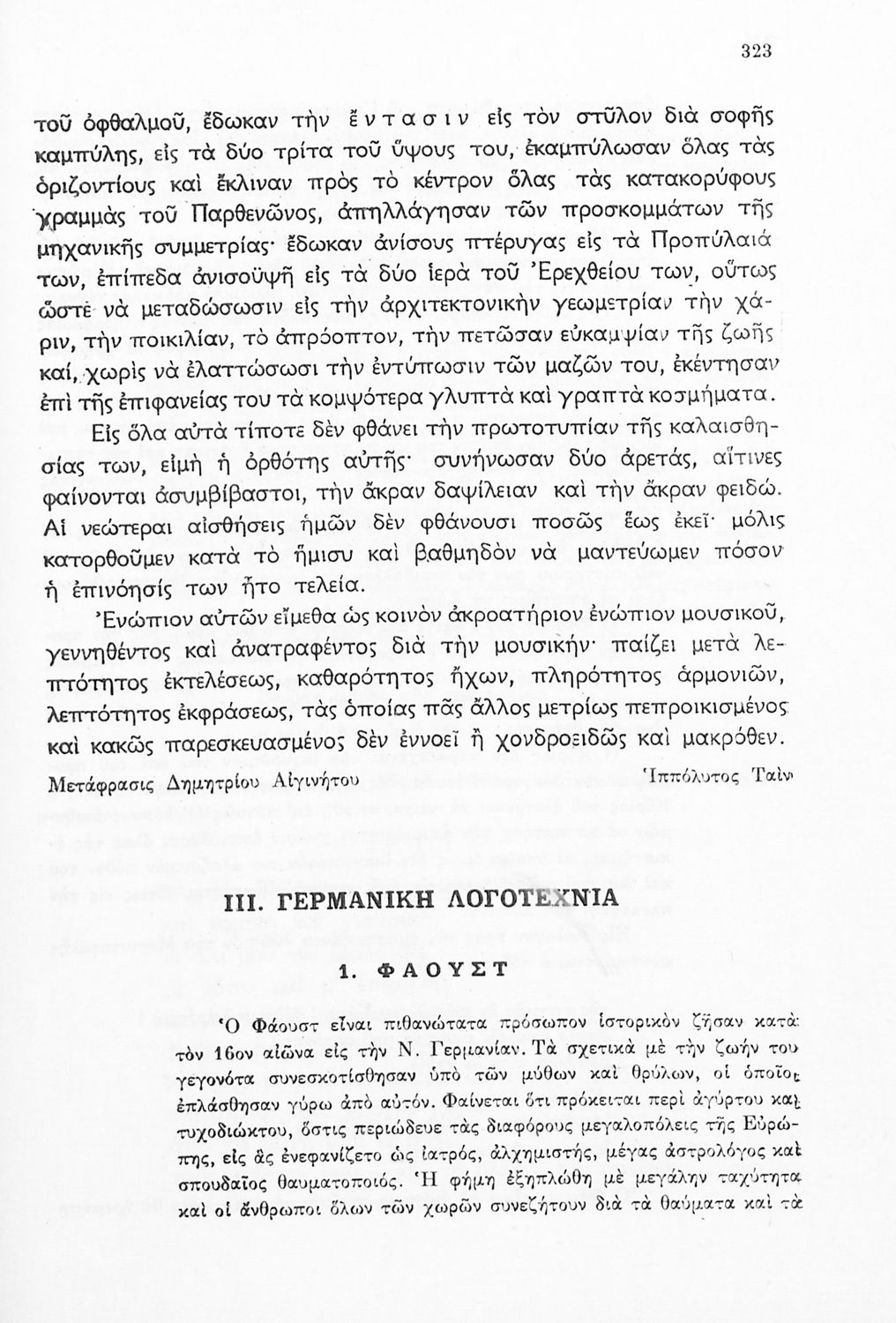 Σχολικό Εγχειρίδιο Λογοτεχνίας της ΣΤ΄ Γυμνασίου. Το βιβλίο περιέχει κείμενα και λογοτεχνικά αποσπάσματα Ελλήνων πεζογράφων μέσα από τα οποία παρουσιάζονται ήθη και έθιμα της Ελλάδας καθώς και ιστορικά πολεμικά γεγονότα τα οποία και συνθέτουν την εθνική ταυτότητα. Στο πρώτο μέρος υπάρχουν πεζά κείμενα όπως απομνημονεύματα, μελέτες, διατριβές, επιστολές, επιστημονικά και φιλοσοφικά κείμενα. Το δεύτερο μέρος αναφέρεται στην ποίηση και περιέχει ιστορικά, λυρικά και σατυρικά ποιήματα. Το βιβλίο τελειώνει με αναφορά στην ξένη λογοτεχνία όπως την Ιταλική, Γαλλική και την Γερμανική.