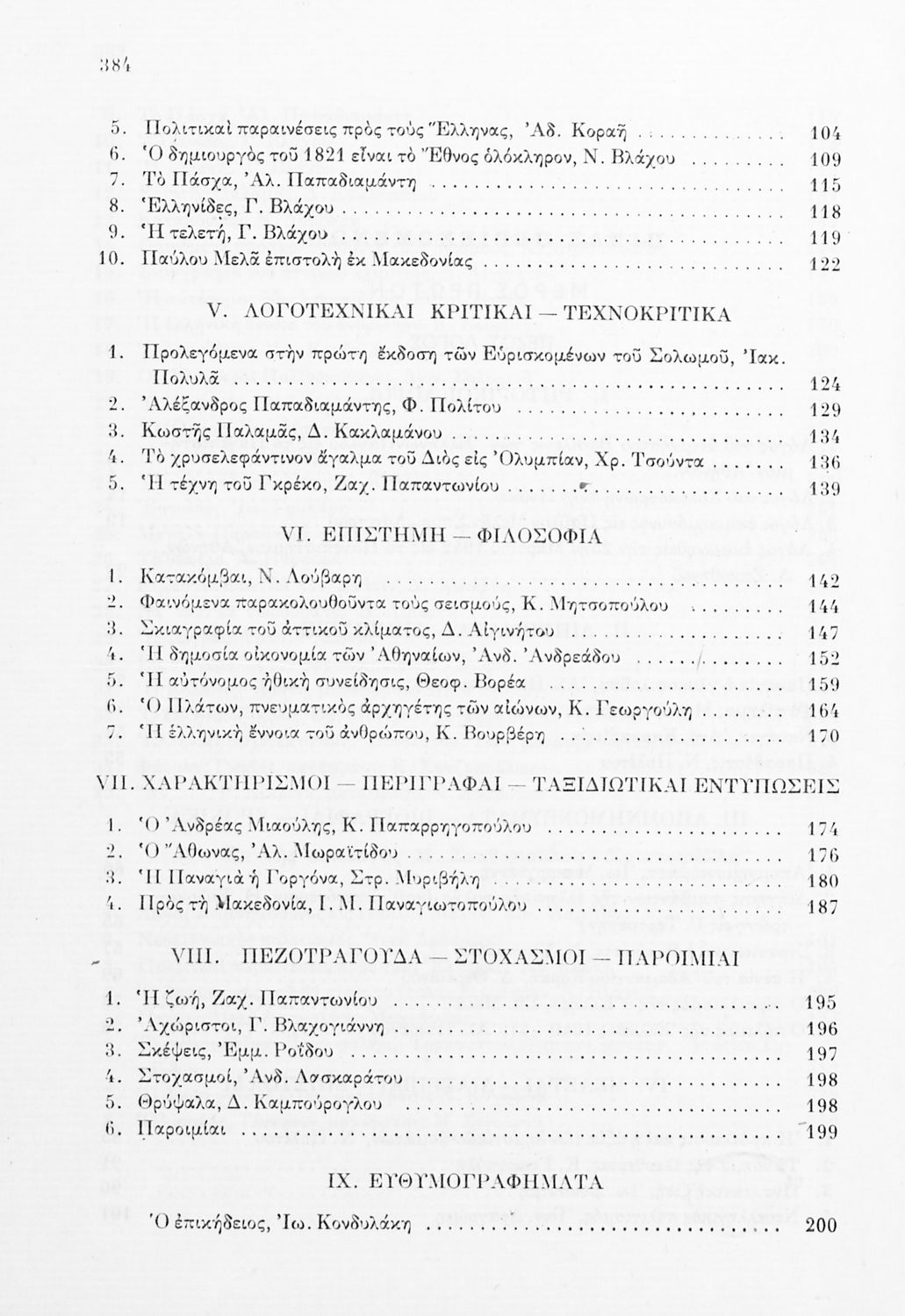 Σχολικό Εγχειρίδιο Λογοτεχνίας της ΣΤ΄ Γυμνασίου. Το βιβλίο περιέχει κείμενα και λογοτεχνικά αποσπάσματα Ελλήνων πεζογράφων μέσα από τα οποία παρουσιάζονται ήθη και έθιμα της Ελλάδας καθώς και ιστορικά πολεμικά γεγονότα τα οποία και συνθέτουν την εθνική ταυτότητα. Στο πρώτο μέρος υπάρχουν πεζά κείμενα όπως απομνημονεύματα, μελέτες, διατριβές, επιστολές, επιστημονικά και φιλοσοφικά κείμενα. Το δεύτερο μέρος αναφέρεται στην ποίηση και περιέχει ιστορικά, λυρικά και σατυρικά ποιήματα. Το βιβλίο τελειώνει με αναφορά στην ξένη λογοτεχνία όπως την Ιταλική, Γαλλική και την Γερμανική.