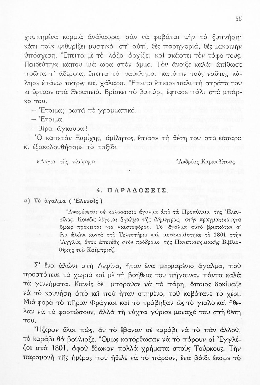 520 ## _aΣχολικό Εγχειρίδιο Λογοτεχνίας της ΣΤ΄ Γυμνασίου. Το βιβλίο περιέχει κείμενα και λογοτεχνικά αποσπάσματα Ελλήνων πεζογράφων μέσα από τα οποία παρουσιάζονται ήθη και έθιμα της Ελλάδας καθώς και ιστορικά πολεμικά γεγονότα τα οποία και συνθέτουν την εθνική ταυτότητα. Στο πρώτο μέρος υπάρχουν πεζά κείμενα όπως απομνημονεύματα, μελέτες, διατριβές, επιστολές, επιστημονικά και φιλοσοφικά κείμενα. Το δεύτερο μέρος αναφέρεται στην ποίηση και περιέχει ιστορικά, λυρικά και σατυρικά ποιήματα. Το βιβλίο τελειώνει με αναφορά στην ξένη λογοτεχνία όπως την Ιταλική, Γαλλική και την Γερμανική.