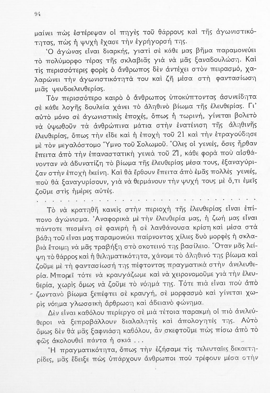 Σχολικό εγχειρίδιο Νέων Ελληνικών ΣΤ΄ Γυμνασίου και Λυκείου που περιλαμβάνει κείμενα Ελλήνων και ξένων συγγραφέων με θέματα από την σύγχρονη ελληνική ιστορία και την οικογενειακή και θρησκευτική ζωή, και ...