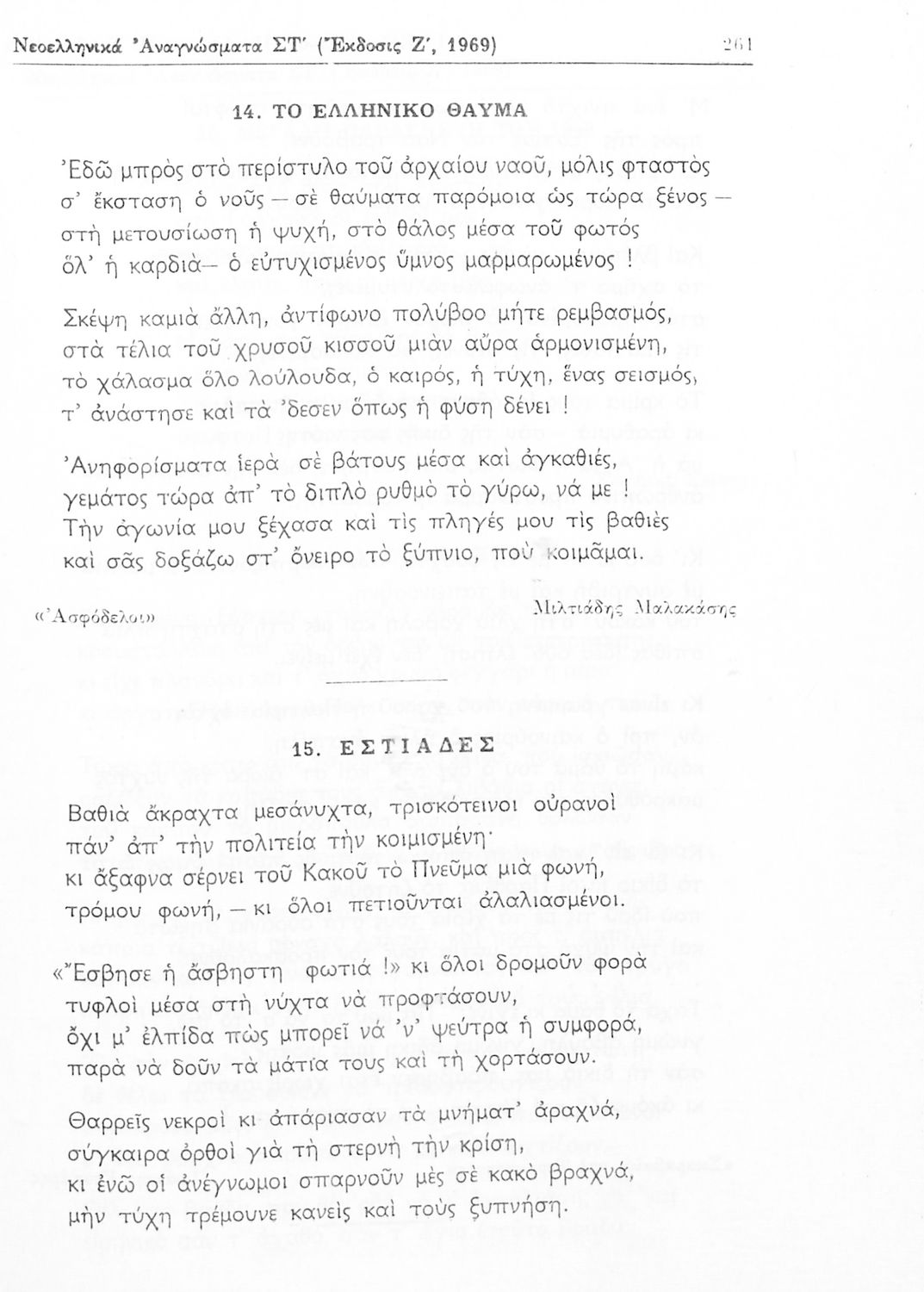 Σχολικό εγχειρίδιο Νέων Ελληνικών ΣΤ΄ Γυμνασίου που περιλαμβάνει ποιήματα και πεζά Ελλήνων συγγραφέων εμπνευσμένα από την οικογενειακή και κοινωνική ζωή, την σύγχρονη ελληνική ιστορία, τη θρησκευτική παράδοση ...