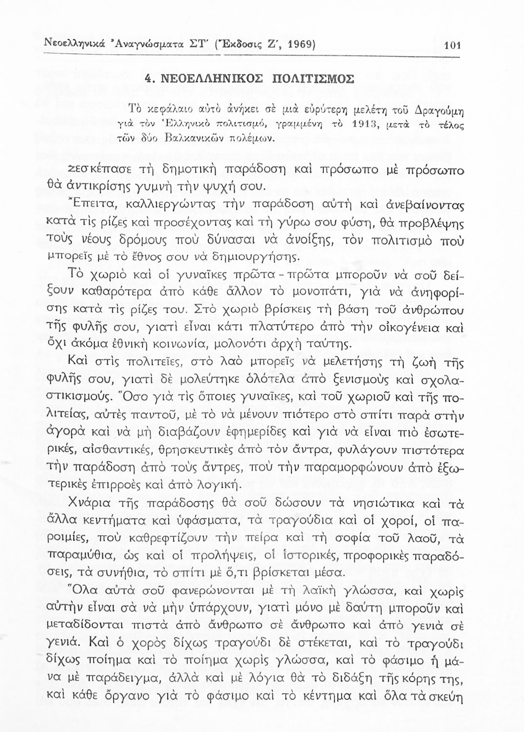 Σχολικό εγχειρίδιο Νέων Ελληνικών ΣΤ΄ Γυμνασίου και Λυκείου που περιλαμβάνει κείμενα Ελλήνων και ξένων συγγραφέων με θέματα από την σύγχρονη ελληνική ιστορία και την οικογενειακή και θρησκευτική ζωή, και ...