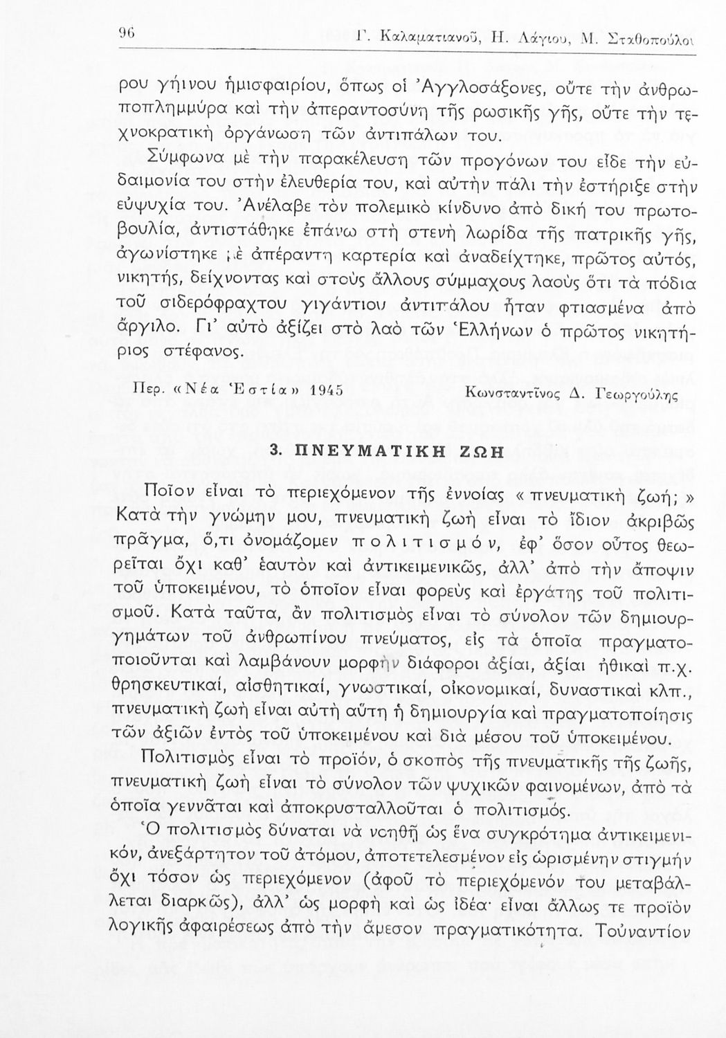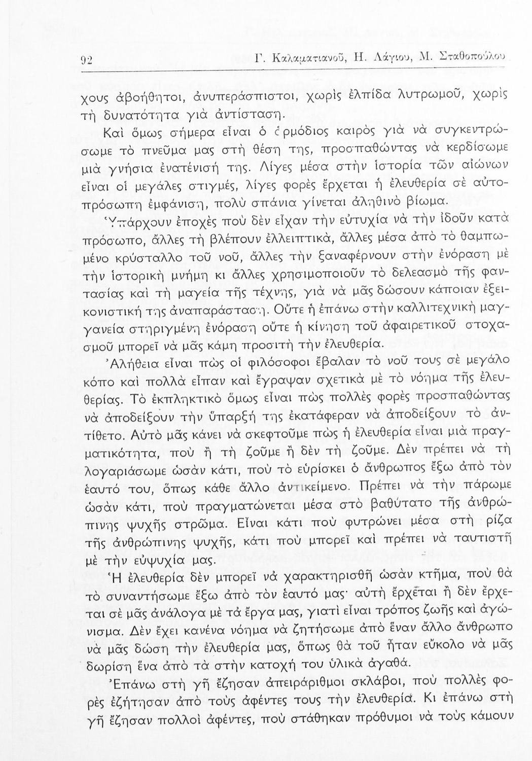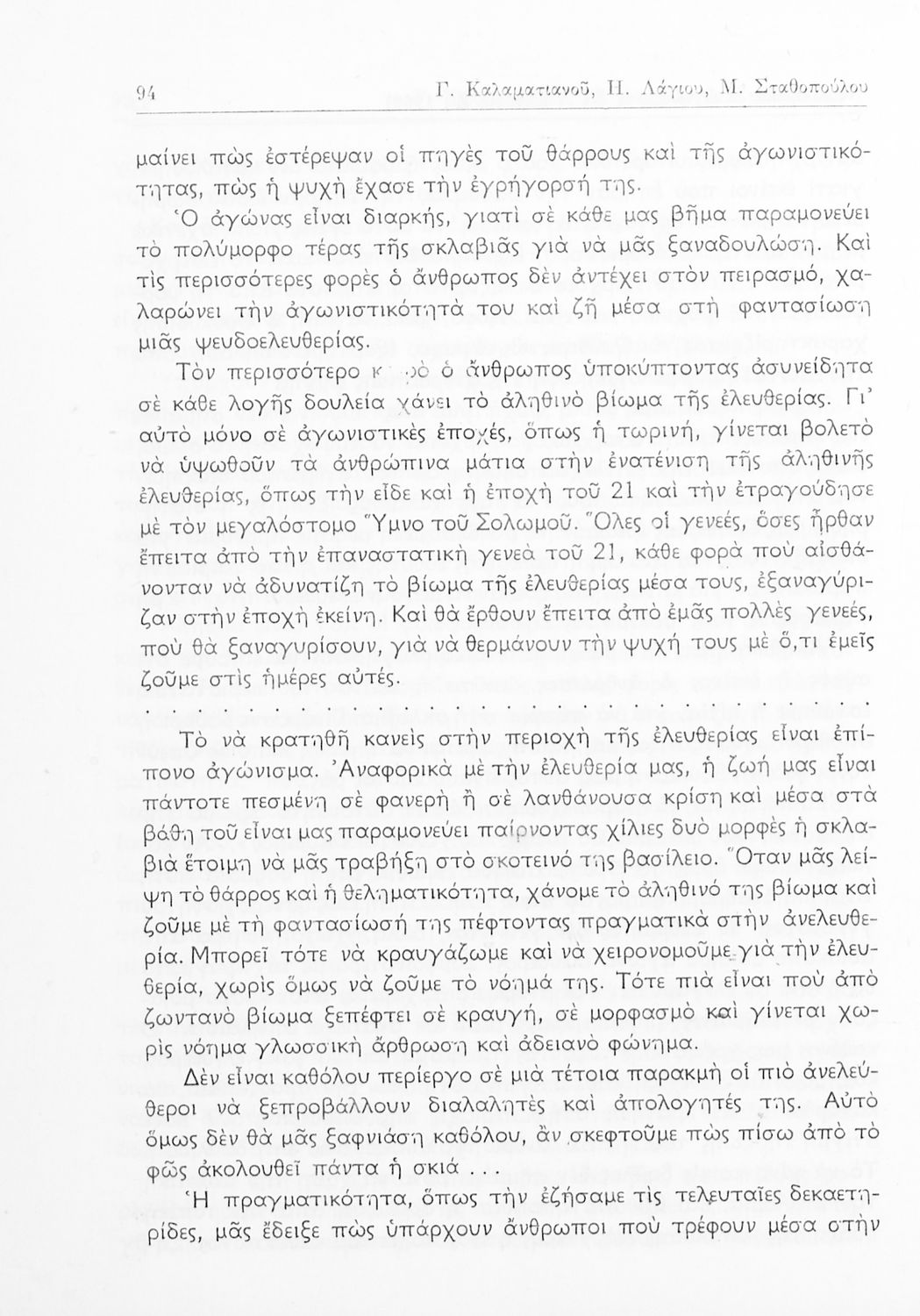 Γ. Καλαματιανός, Η. Λάγιος, Μ. Σταθοπούλου-Χριστοφέλλη