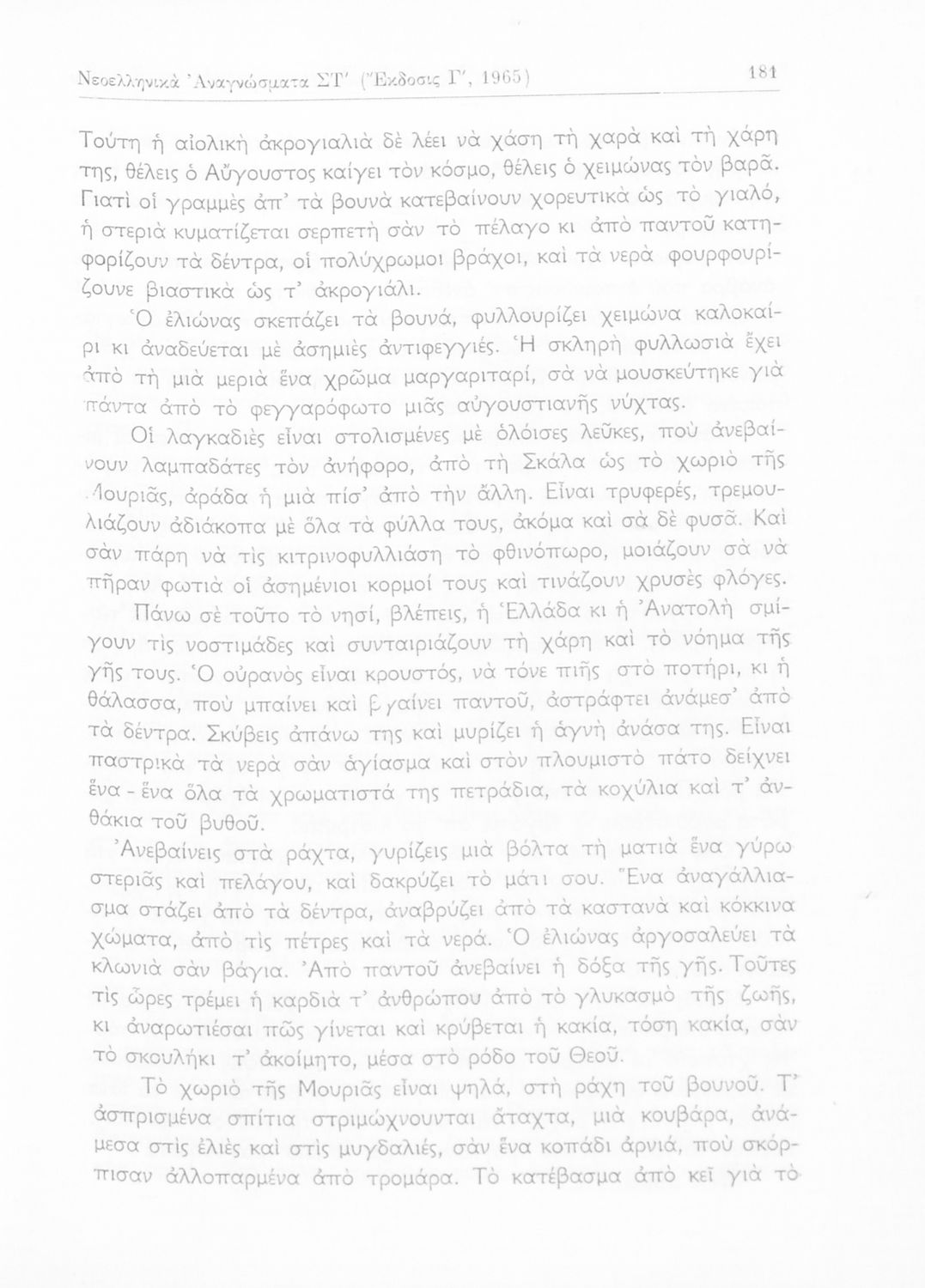 Σχολικό εγχειρίδιο Νέων Ελληνικών ΣΤ΄ Γυμνασίου που περιλαμβάνει κείμενα Ελλήνων και ξένων συγγραφέων και δημοτικά τραγούδια εμπνευσμένα από την ελληνική φύση, την καθημερινή ζωή των ανθρώπων, τη θρησκευτική ...