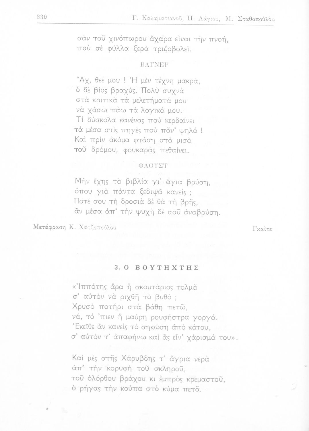 Γ. Καλαματιανός, Η. Λάγιος, Μ. Σταθοπούλου-Χριστοφέλλη