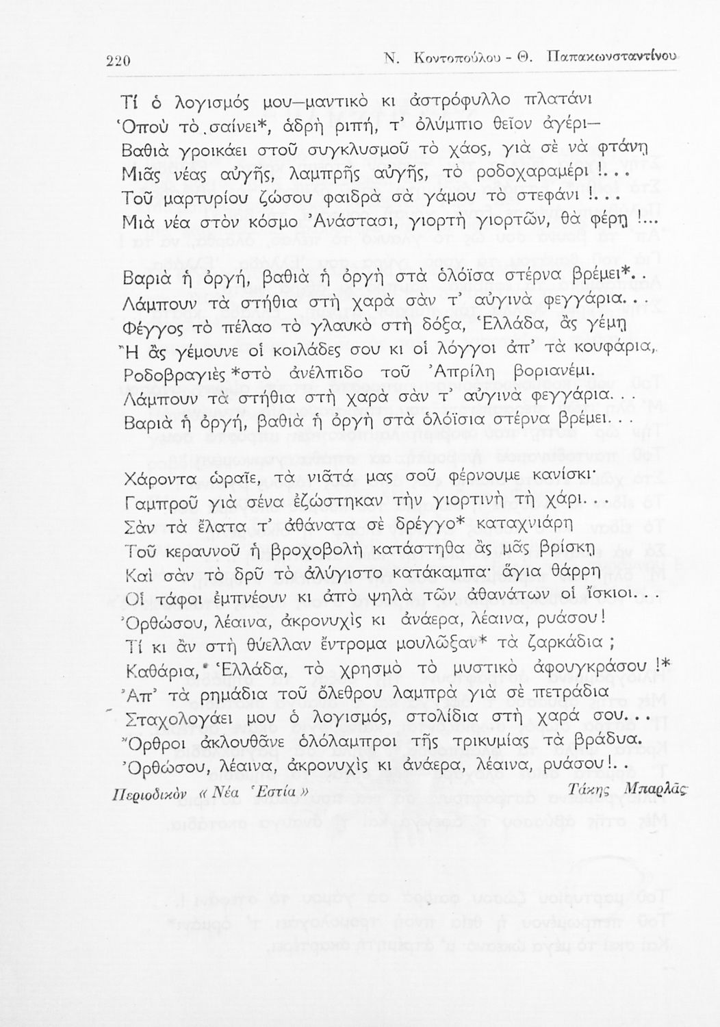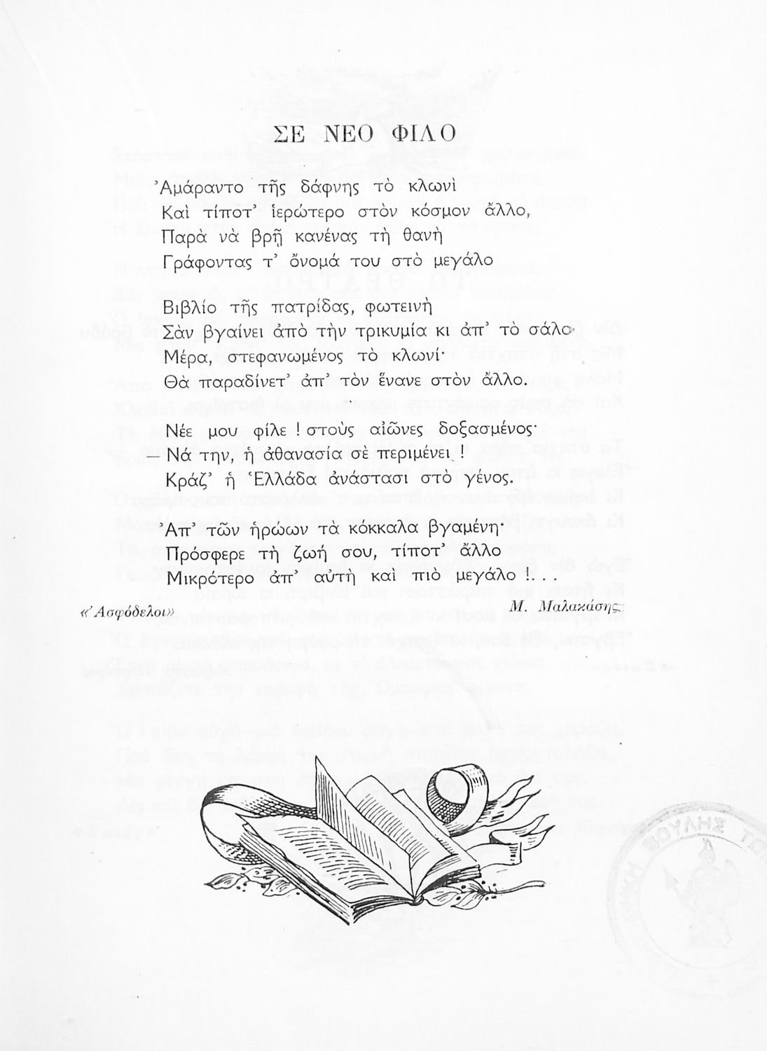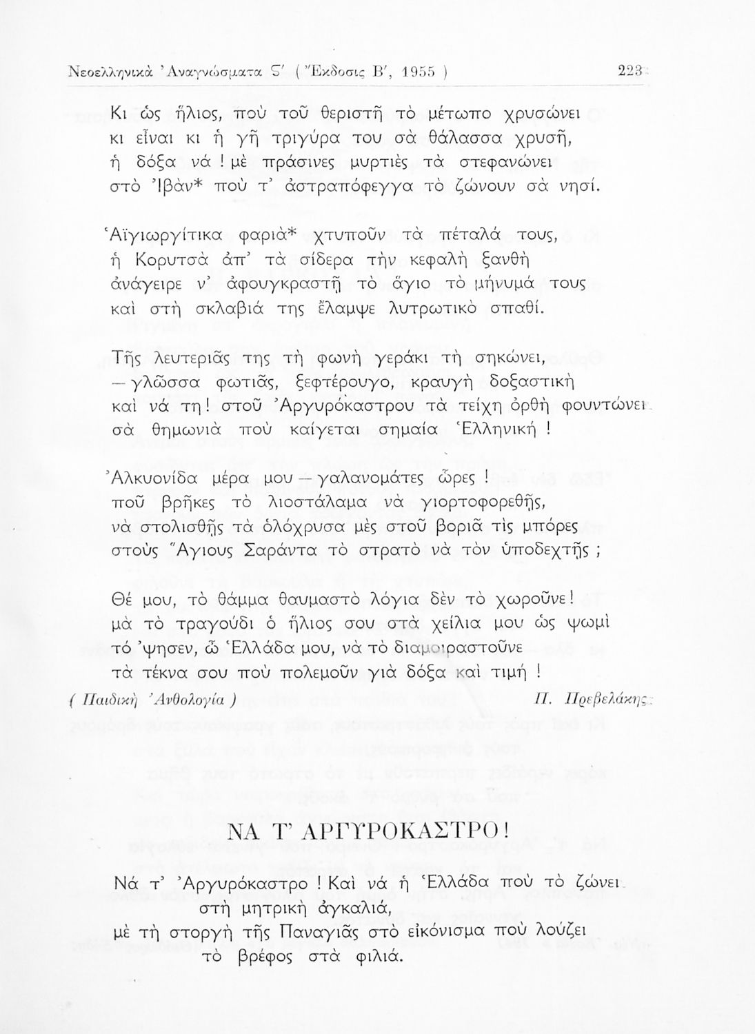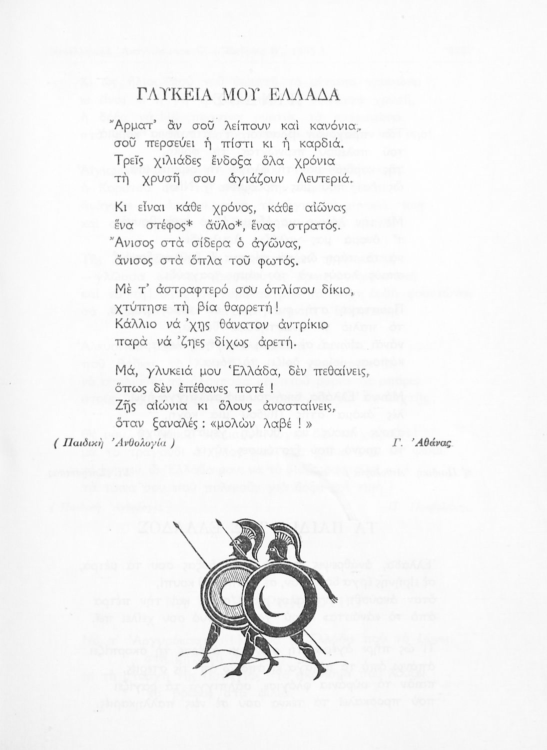 Σχολικό εγχειρίδιο Νέων Ελληνικών ΣΤ΄ Γυμνασίου που περιέχει πεζά και ποιήματα Ελλήνων και ξένων συγγραφέων εμπνευσμένα από την σύγχρονη ελληνική ιστορία, τη θρησκευτική παράδοση και την ελληνική φύση. Περιέχει παράρτημα με βιογραφίες των συγγραφέων και λεξιλόγιο.