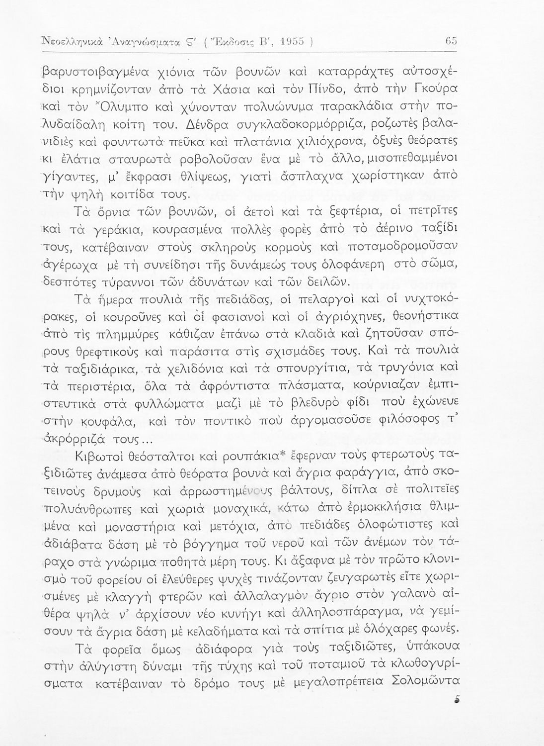 Σχολικό εγχειρίδιο Νέων Ελληνικών ΣΤ΄ Γυμνασίου που περιλαμβάνει κείμενα Ελλήνων και ξένων συγγραφέων και δημοτικά τραγούδια εμπνευσμένα από την ελληνική φύση, την καθημερινή ζωή των ανθρώπων, τη θρησκευτική ...