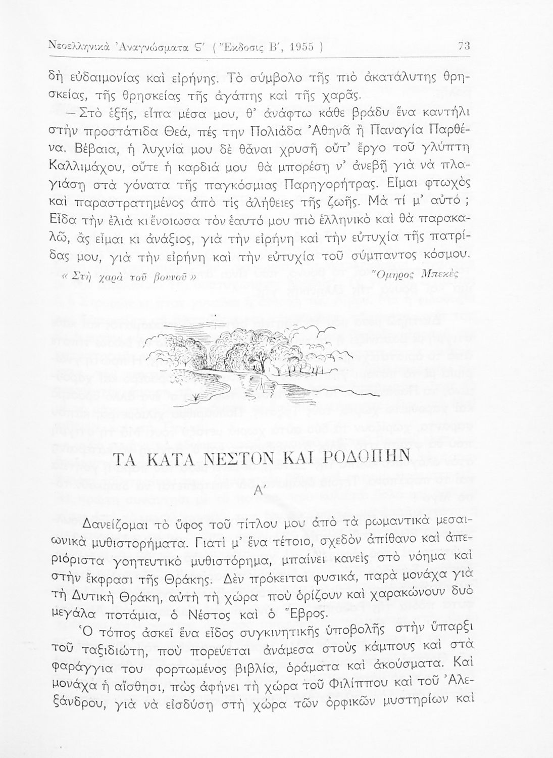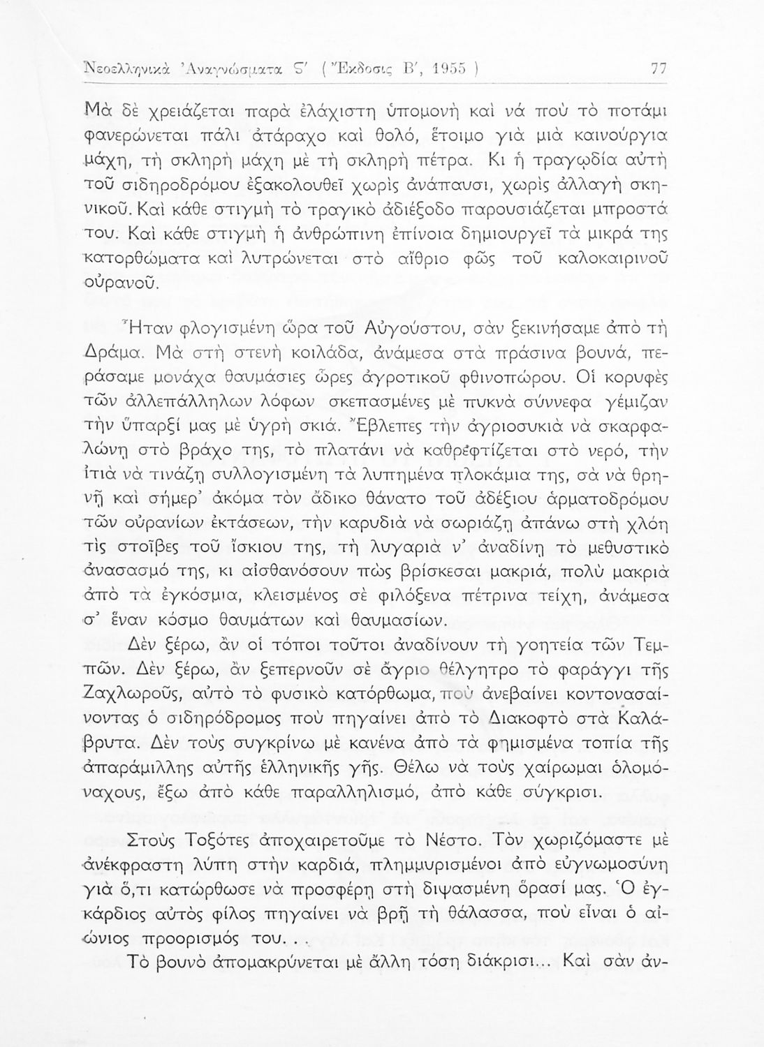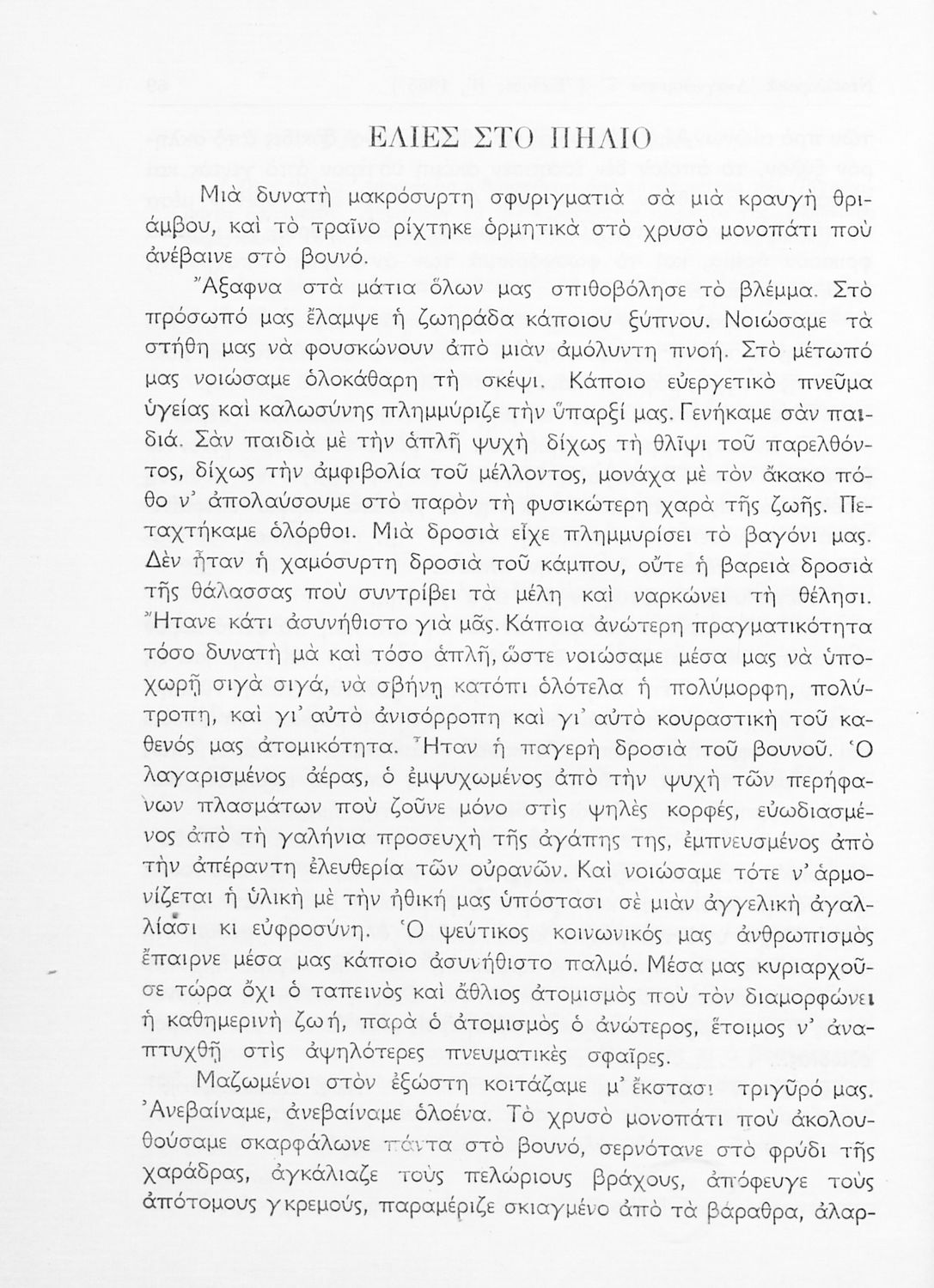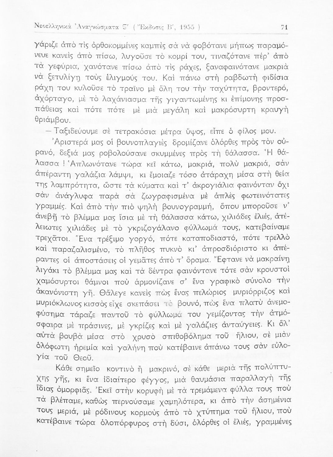 Σχολικό εγχειρίδιο Νέων Ελληνικών ΣΤ΄ Γυμνασίου που περιέχει πεζά και ποιήματα Ελλήνων και ξένων συγγραφέων εμπνευσμένα από την σύγχρονη ελληνική ιστορία, τη θρησκευτική παράδοση και την ελληνική φύση. Περιέχει παράρτημα με βιογραφίες των συγγραφέων και λεξιλόγιο.