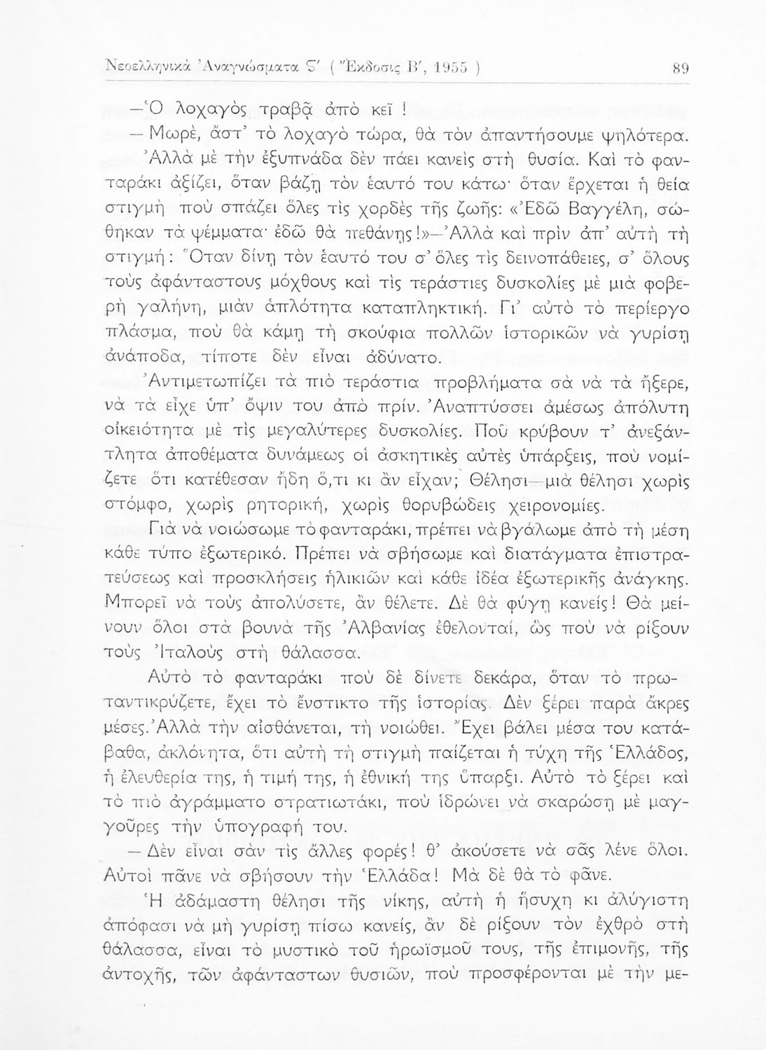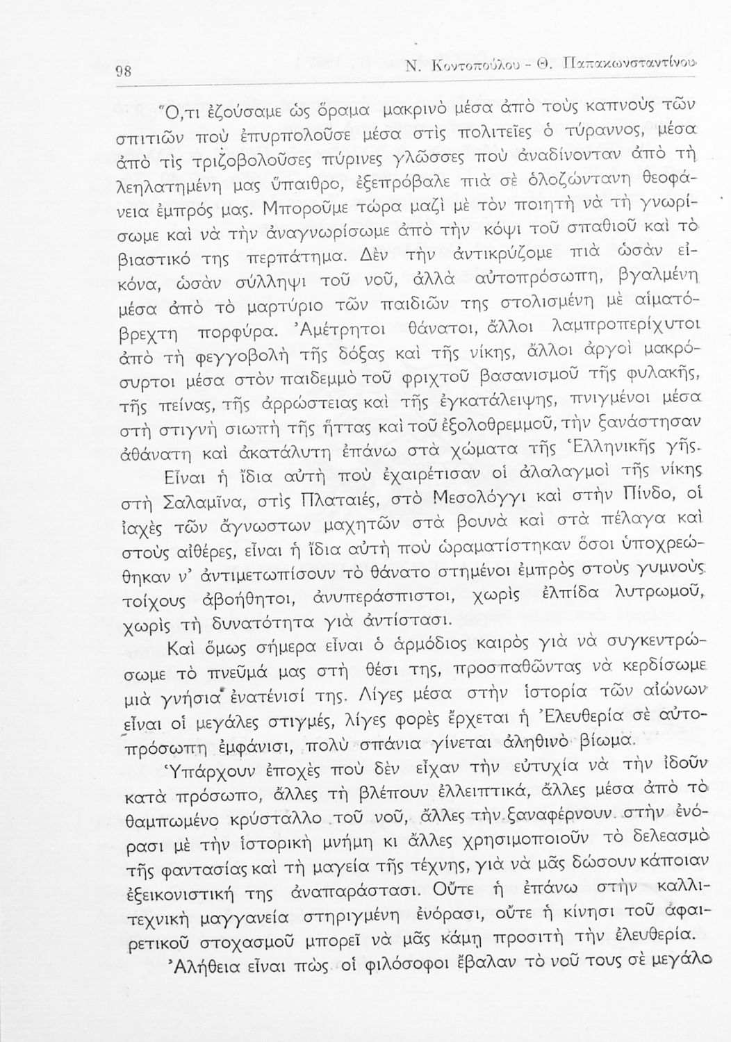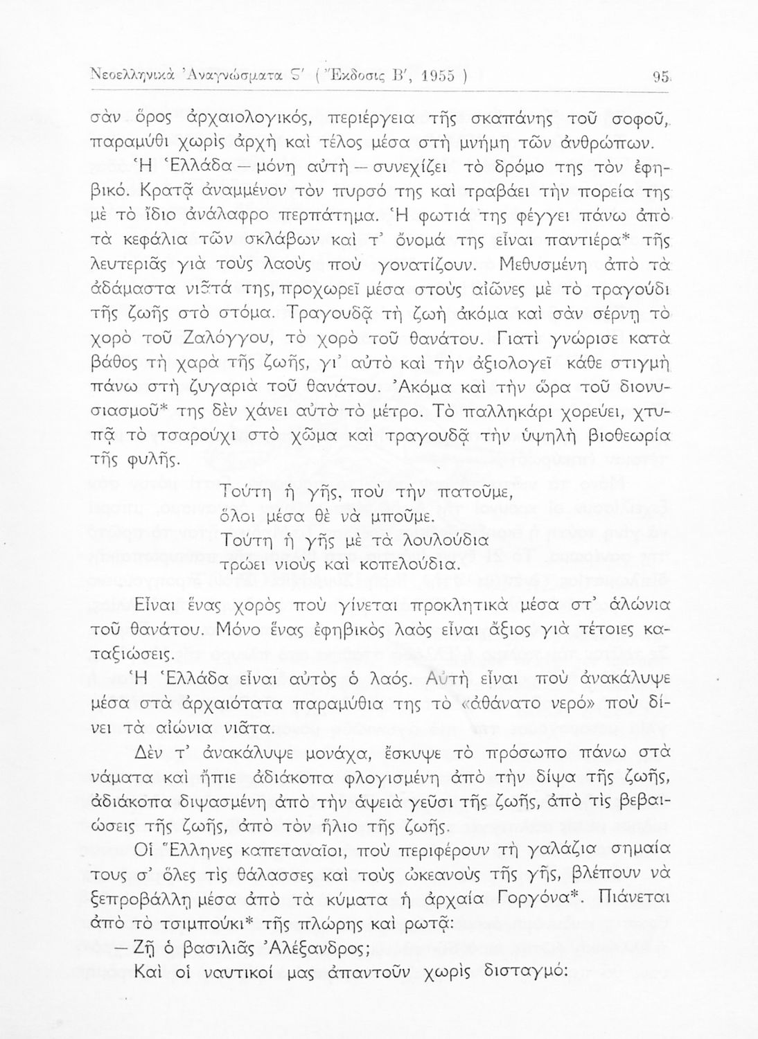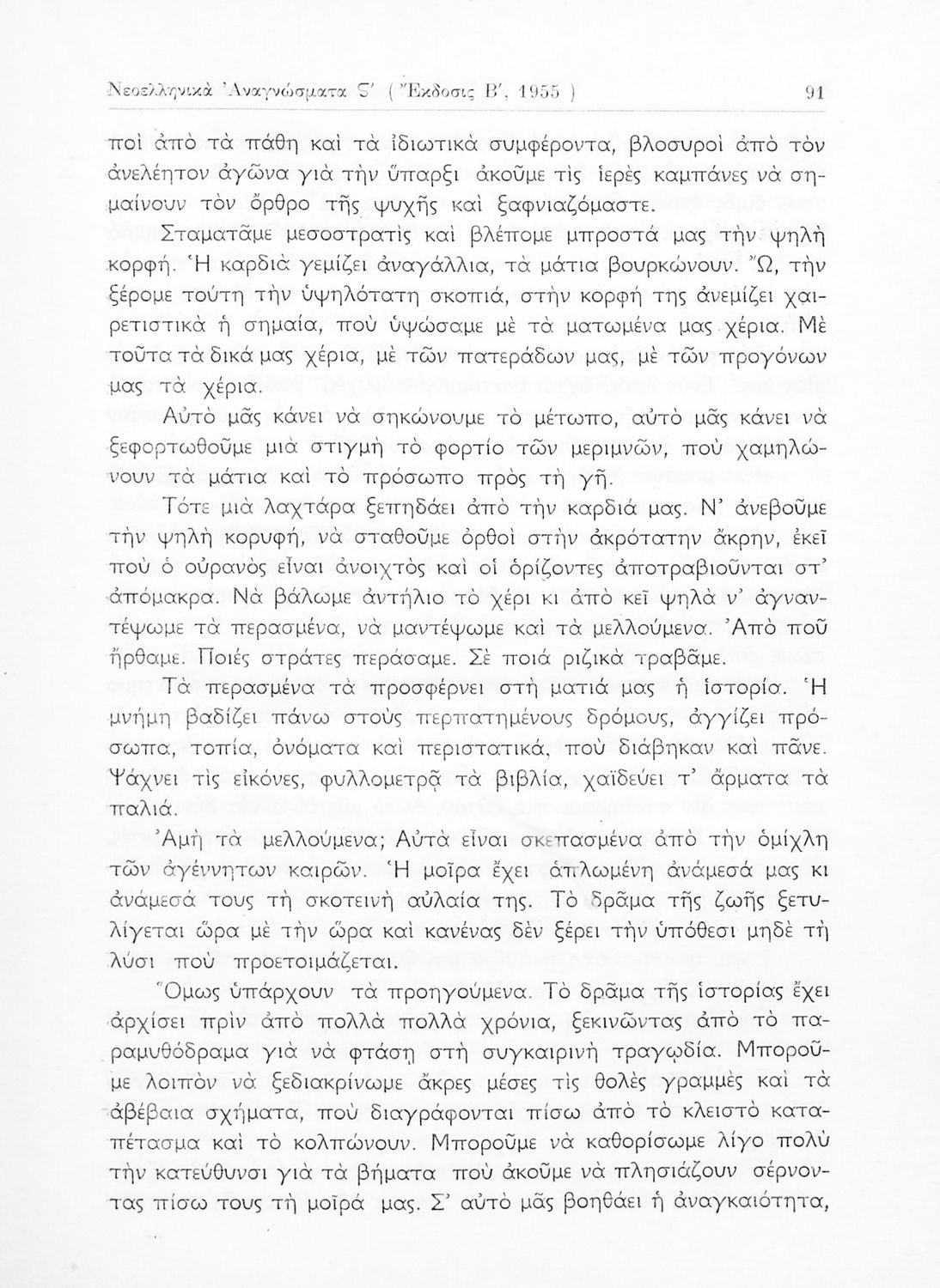 Σχολικό εγχειρίδιο Νέων Ελληνικών ΣΤ΄ Γυμνασίου που περιέχει πεζά και ποιήματα Ελλήνων και ξένων συγγραφέων εμπνευσμένα από την σύγχρονη ελληνική ιστορία, τη θρησκευτική παράδοση και την ελληνική φύση. Περιέχει παράρτημα με βιογραφίες των συγγραφέων και λεξιλόγιο.