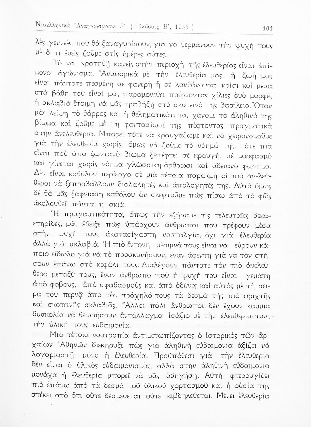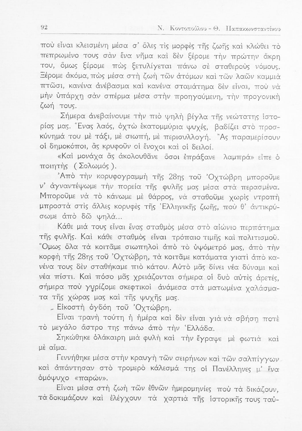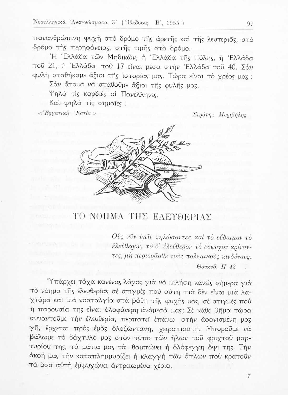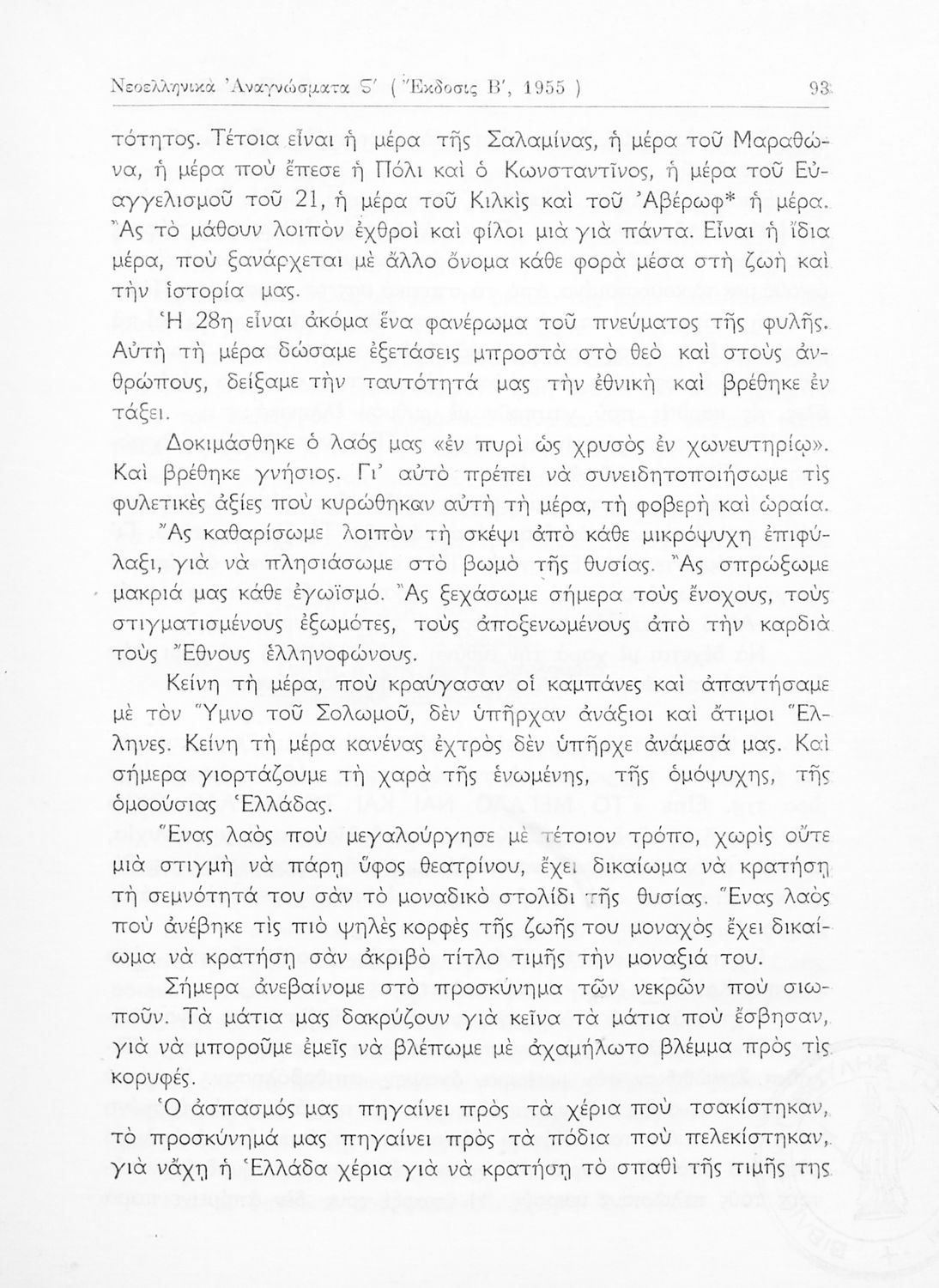 Σχολικό εγχειρίδιο Νέων Ελληνικών ΣΤ΄ Γυμνασίου που περιέχει πεζά και ποιήματα Ελλήνων και ξένων συγγραφέων εμπνευσμένα από την σύγχρονη ελληνική ιστορία, τη θρησκευτική παράδοση και την ελληνική φύση. Περιέχει παράρτημα με βιογραφίες των συγγραφέων και λεξιλόγιο.