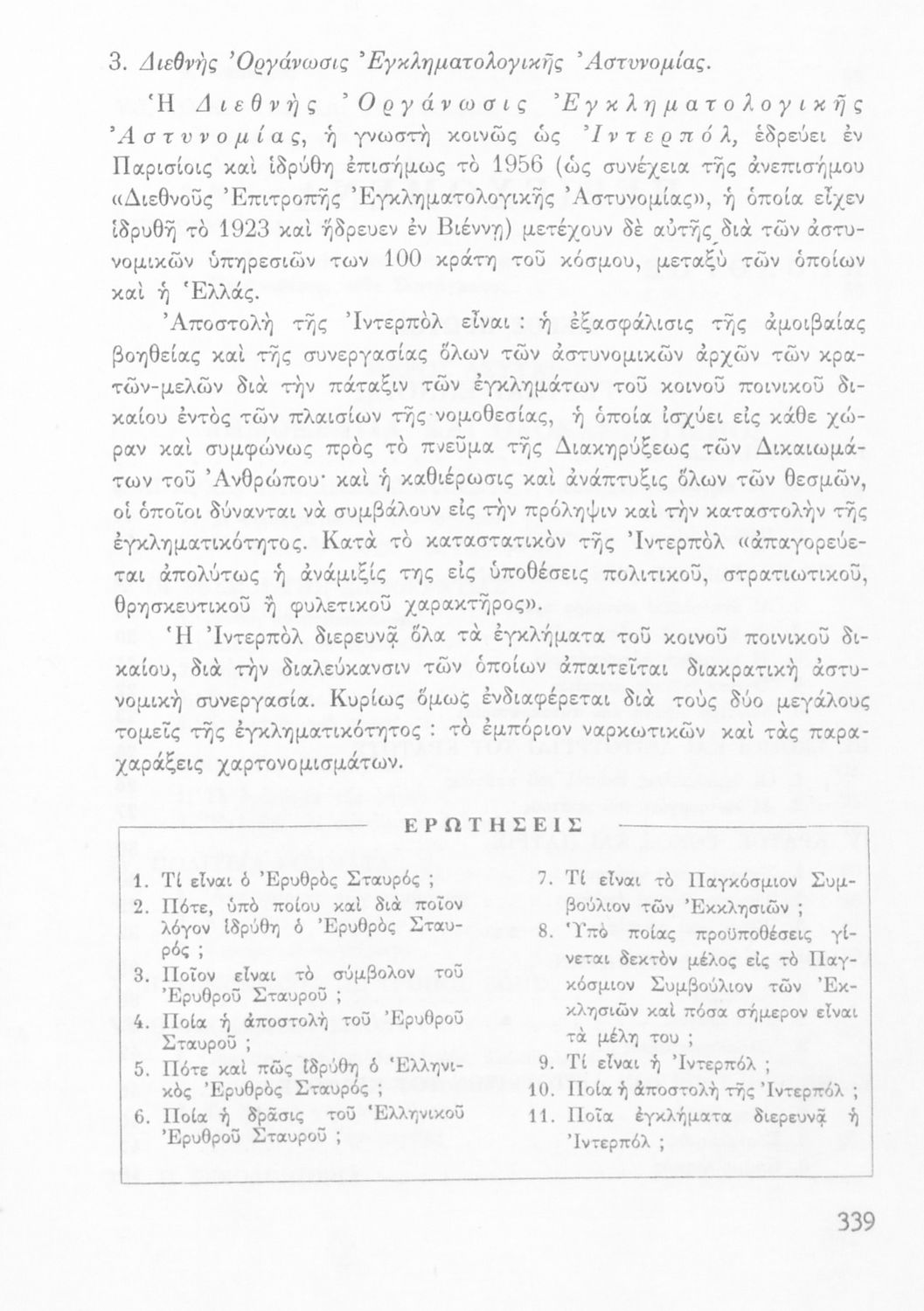 Βαθμίδα εκπαίδευσης: Δευτεροβάθμια Τάξη: Γ' Γυμνασίου / ΣΤ΄ Γυμνασίου Μάθημα: Αγωγή Του Πολίτη Γλώσσα: Απλή καθαρεύουσα Παρουσίαση περιεχομένου: Σχολικό εγχειρίδιο για το μάθημα της πολιτικής Αγωγής στο Γυμνάσιο. Αρχικά αναφέρεται γενικά στις λειτουργίες της κοινωνίας, μετά στη διοίκηση, και τα διοικητικά συστήματα. Στο τέλος παρουσιάζει τη λειτουργία και τον ρόλο των Διεθνών Οργανισμών. |