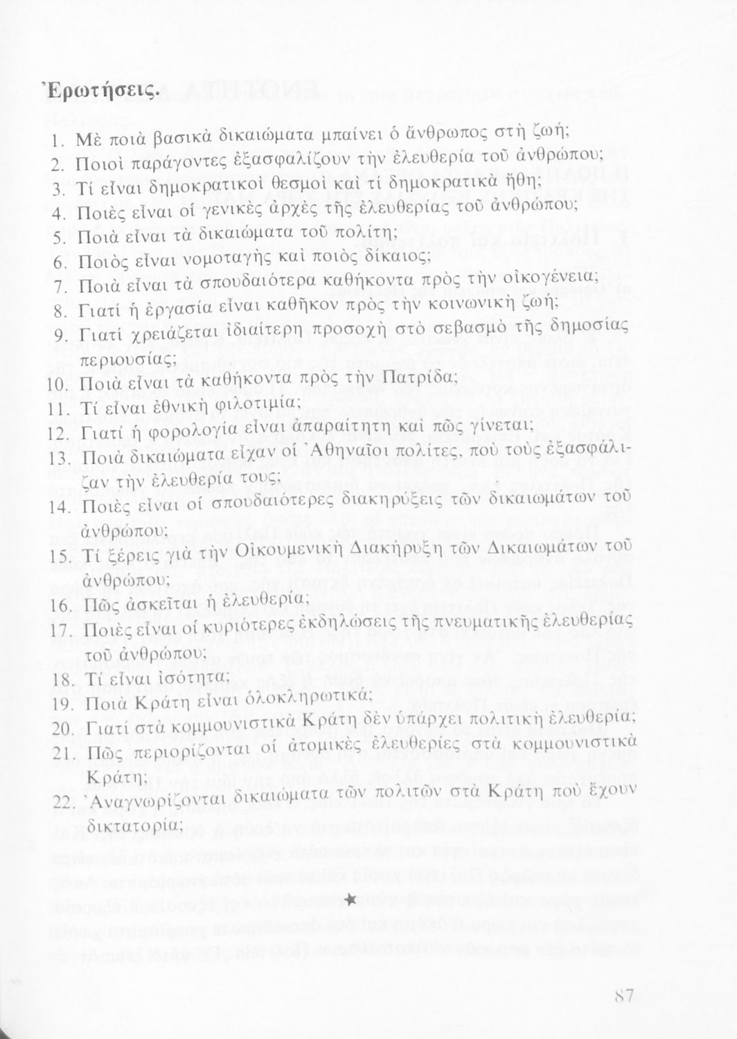 Σχολικό εγχειρίδιο Αγωγής του Πολίτη Γ' Γυμνασίου που εισάγει τους μαθητές στις έννοιες του πολίτη, του κράτους και των κρατικών θεσμών και λειτουργιών και σχολιάζει τα πολιτεύματα, τις συνταγματικές αρχές και τα πολιτικά δικαιώματα.