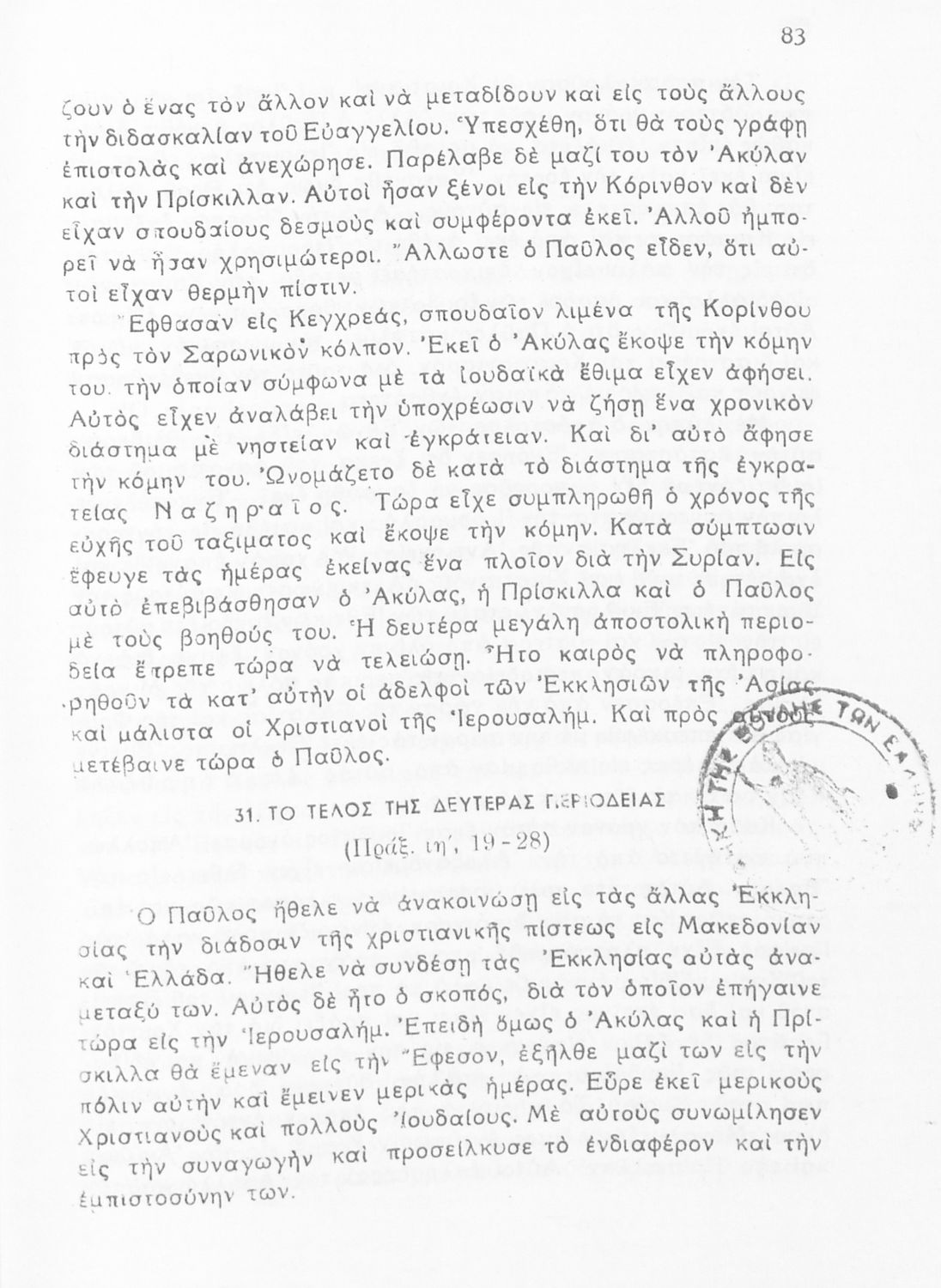 Βαθμίδα εκπαίδευσης: Δευτεροβάθμια Τάξη: Β' Γυμνασίου Μάθημα: Θρησκευτικά Γλώσσα: Απλή καθαρεύουσα Παρουσίαση περιεχομένου: Σχολικό εγχειρίδιο Ιστορίας της Β' Γυμνασίου. Το βιβλίο παρουσιάζει τη δράση και τους διωγμούς των αποστόλων στην προσπάθεια διάδοσης του Χριστιανισμού στη Δύση. Επικεντρώνεται στη δράση του αποστόλου Παύλου και στις περιοδείες του και τη διδασκαλία του σε διάφορες πόλεις της Μεσογείου |