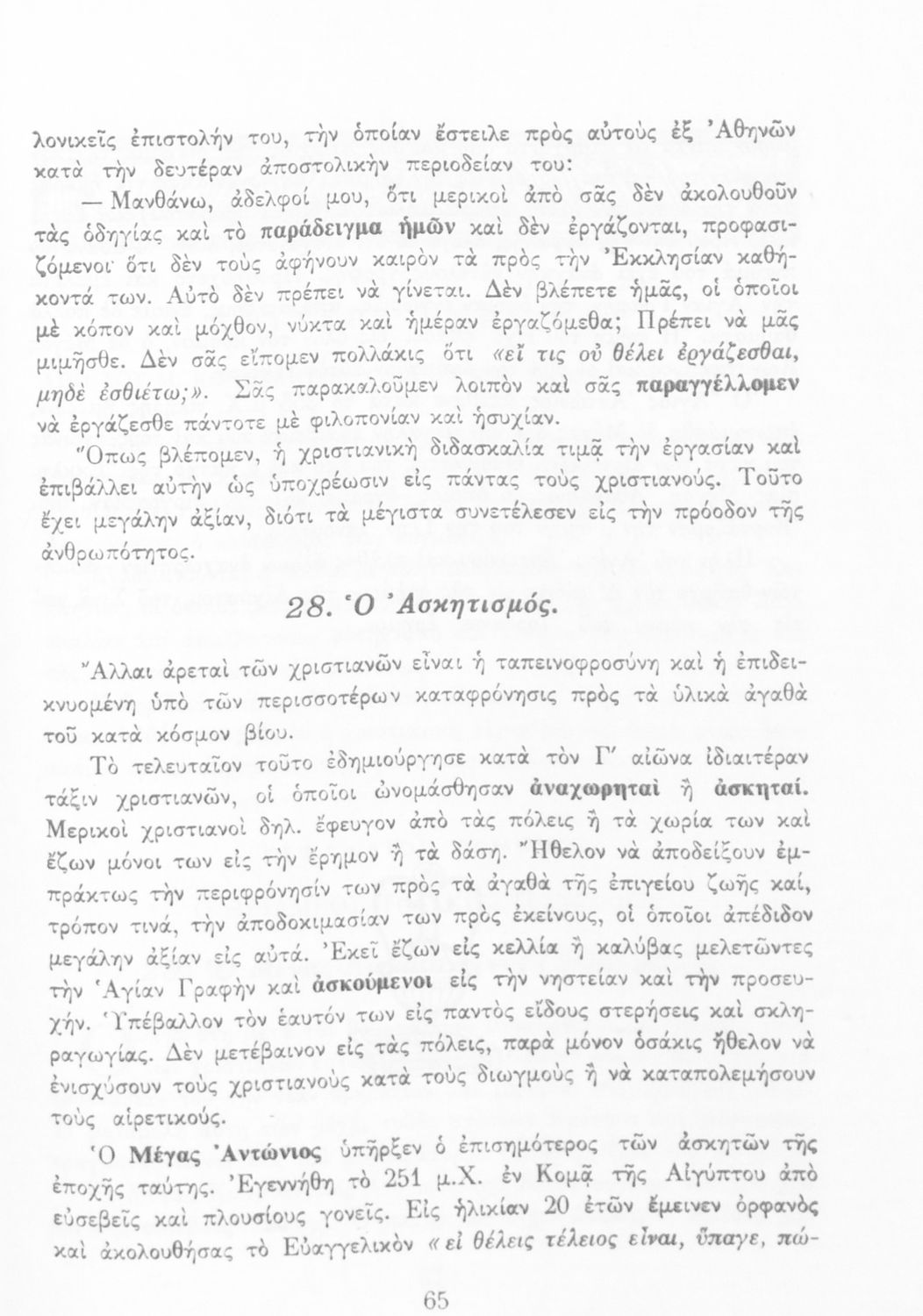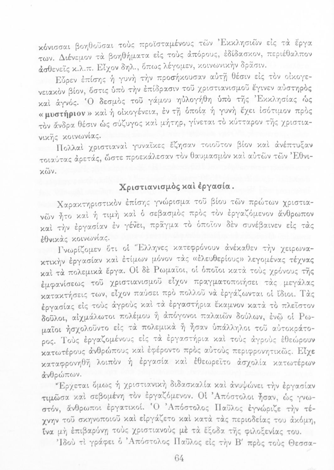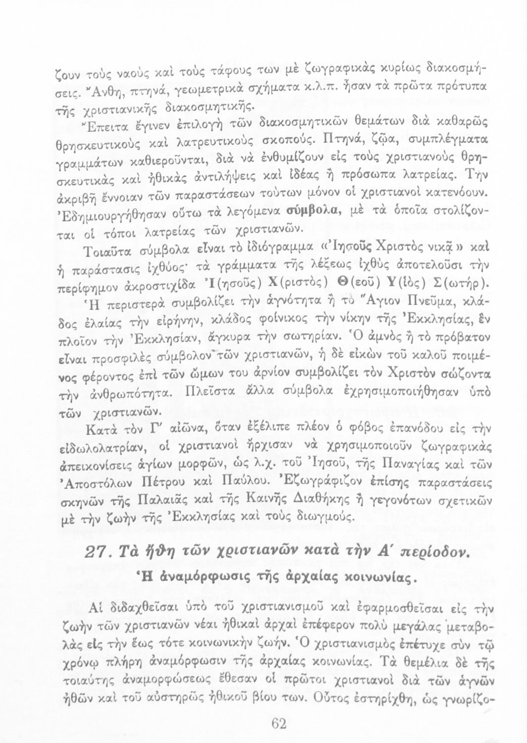 Βαθμίδα εκπαίδευσης: Δευτεροβάθμια Τάξη: Δ' Γυμνασίου Μάθημα: Θρησκευτικά Γλώσσα: Καθαρεύουσα Παρουσίαση περιεχομένου: Σχολικό εγχειρίδιο Θρησκευτικών Δ' Γυμνασίου που αποτελεί μια σύντομη εξιστόρηση της γέννησης και της εξέλιξης του Χριστιανισμού από την εμφάνισή του μέχρι τον 19ο αιώνα. Σχολιάζει και τη σχέση ελληνισμού και χριστιανισμού. |