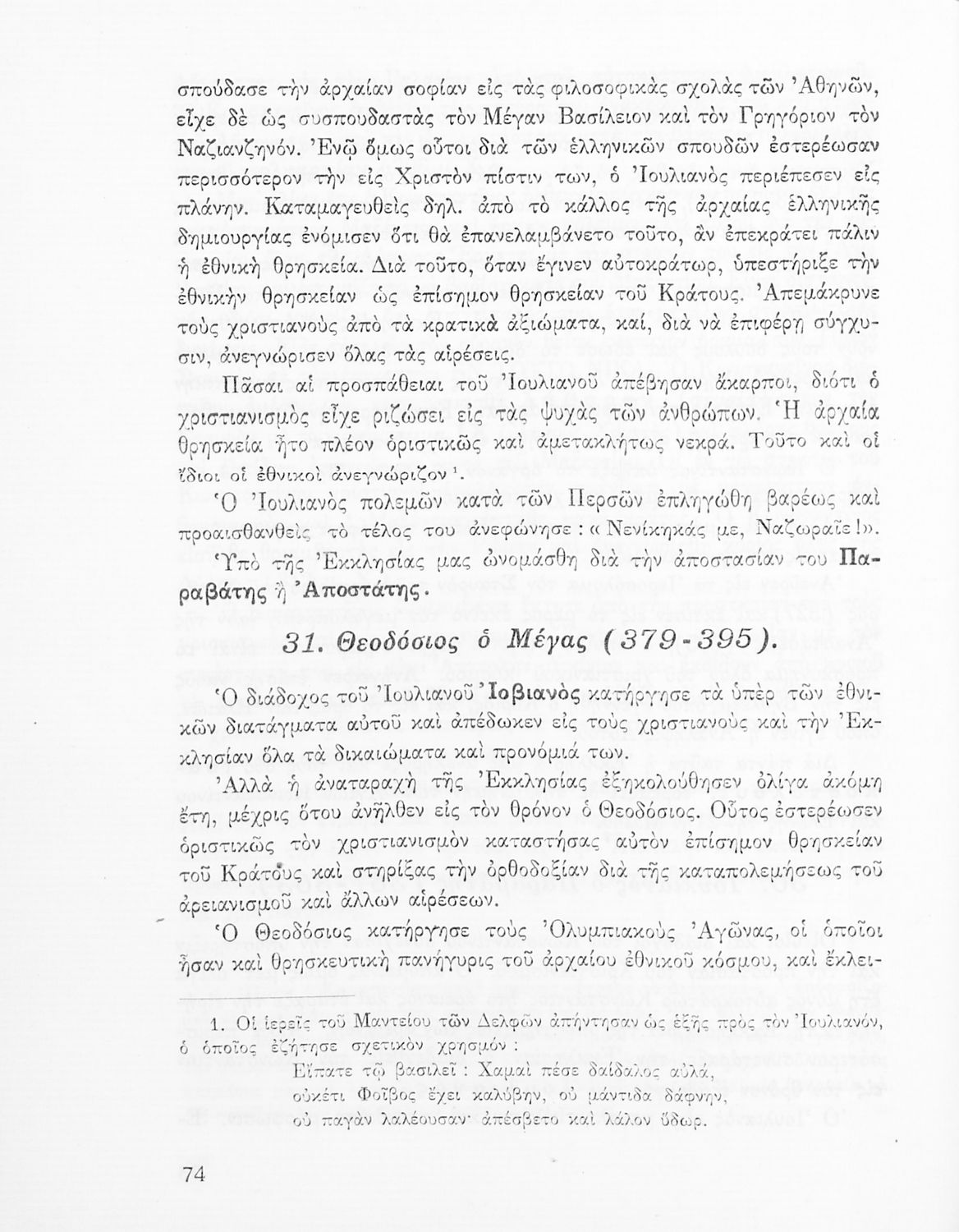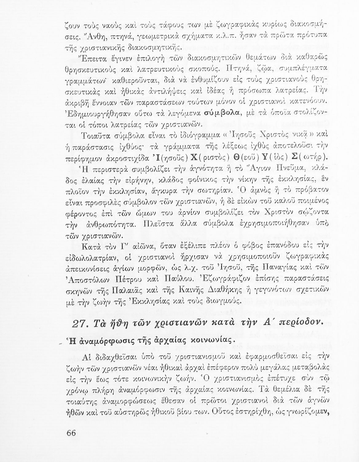 Βαθμίδα εκπαίδευσης: Δευτεροβάθμια Τάξη: Δ' Γυμνασίου Μάθημα: Θρησκευτικά Γλώσσα: Καθαρεύουσα Παρουσίαση περιεχομένου: Σχολικό εγχειρίδιο Θρησκευτικών Δ' Γυμνασίου που αποτελεί μια σύντομη εξιστόρηση της γέννησης και της εξέλιξης του Χριστιανισμού από την εμφάνισή του μέχρι τον 19ο αιώνα. Σχολιάζει και τη σχέση ελληνισμού και χριστιανισμού, και τις σχέσεις μεταξύ των χριστιανικών δογμάτων. |