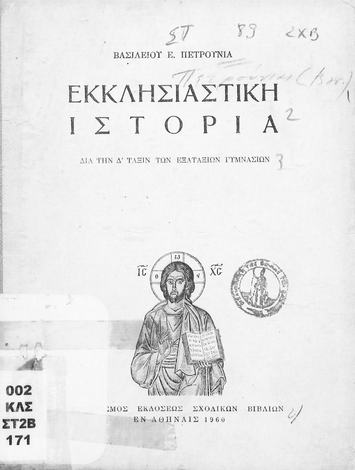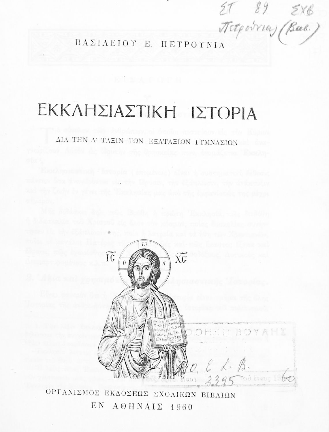 Τίτλος: Εκκλησιαστική Ιστορία δια την Δ ́ τάξιν των Εξαταξίων Γυμνασίων
