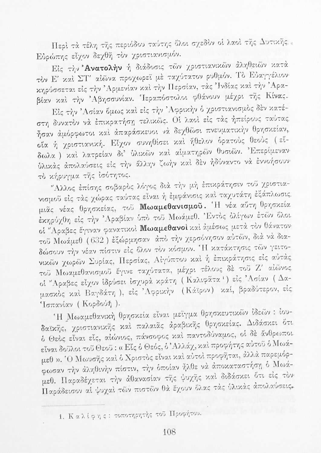 Βαθμίδα εκπαίδευσης: Δευτεροβάθμια Τάξη: Δ' Γυμνασίου Μάθημα: Θρησκευτικά Γλώσσα: Απλή καθαρεύουσα Παρουσίαση περιεχομένου: Σχολικό εγχειρίδιο Θρησκευτικών Δ' Γυμνασίου που αποτελεί μια σύντομη εξιστόρηση της γέννησης και της εξέλιξης του Χριστιανισμού από την εμφάνισή του μέχρι τον 19ο αιώνα. Σχολιάζει και τη σχέση ελληνισμού και χριστιανισμού, και τις σχέσεις μεταξύ των χριστιανικών δογμάτων. |