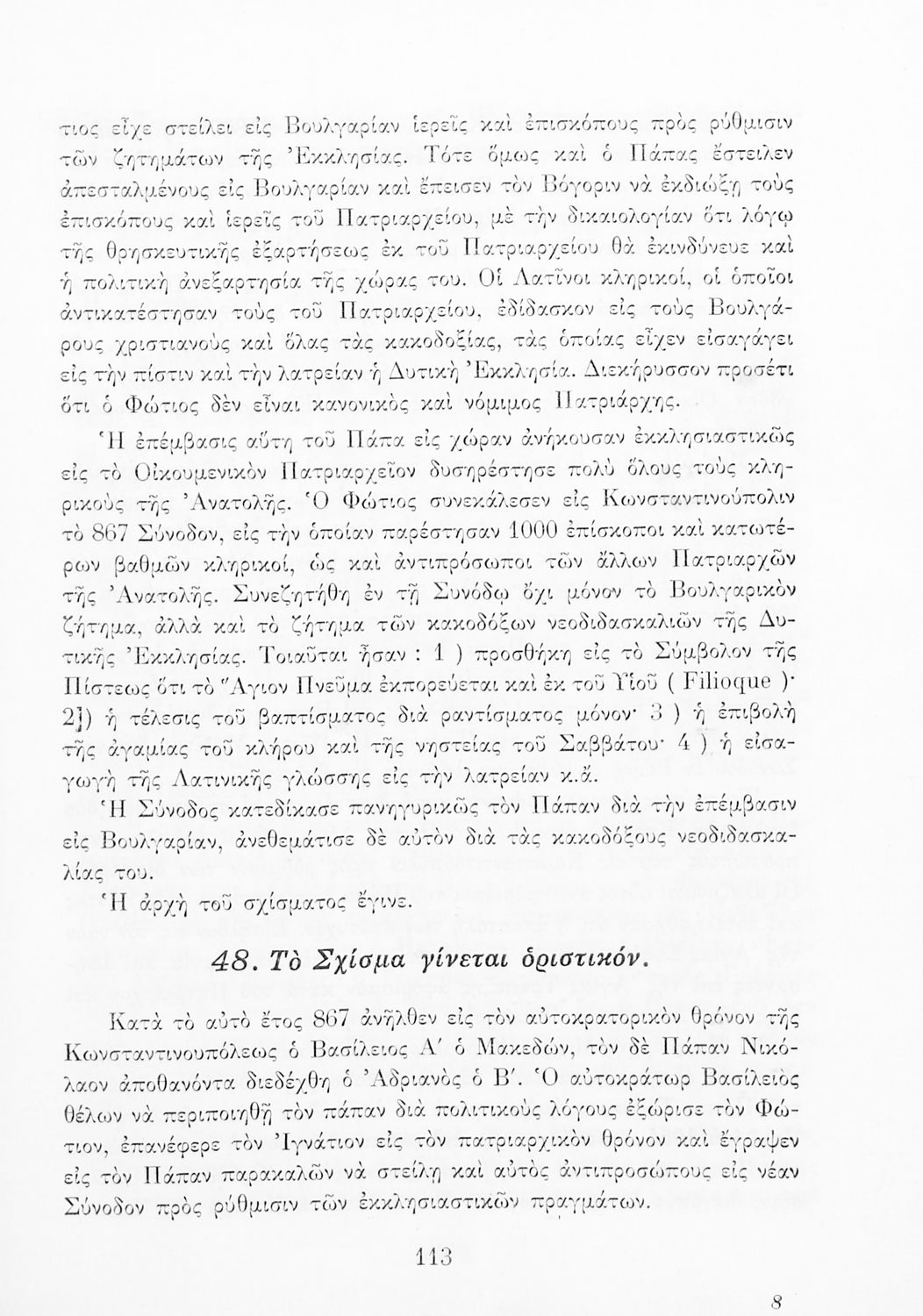 LDR 01673 2200217 4500 035 ## _a03-20556274 040 ## _aΒιβλιοθήκη της Βουλής των Ελλήνων 041 ## _ael 100 ## _aΒασίλειος Ε. Πετρούνιας 110 ## _a20556274 245 0# _aΕκκλησιαστική ιστορία δια την Δ΄ τάξιν των Εξαταξίων Γυμνασίων 250 ## _a2η Έκδοση 260 ## _aΑθήνα _bΟργανισμός Εκδόσεως Σχολικών Βιβλίων _c1962 300 ## _a188 _bΕξώφυλλο (ασπρόμαυρο), Σκίτσα (ασπρόμαυρα) 520 ## _aΣχολικό εγχειρίδιο Θρησκευτικών Δ' Γυμνασίου που αποτελεί μια σύντομη εξιστόρηση της γέννησης και της εξέλιξης του Χριστιανισμού από την εμφάνισή του μέχρι τον 19ο αιώνα. Σχολιάζει και τη σχέση ελληνισμού και χριστιανισμού, και τις σχέσεις μεταξύ των χριστιανικών δογμάτων. 521 ## _aΔ' Γυμνασίου 522 ## _aΕλλάδα 546 ## _aΑπλή καθαρεύουσα 563 ## _aΣκληρό Εξώφυλλο 583 ## _a1077/ 9-4-1962 _c1962 650 #4 _aΆλωση Κωνσταντινούπολης _aΕκκλησιαστική ιστορία _aΕλληνική ορθόδοξος εκκλησία _aΘρησκευτική μεταρρύθμιση _aΠαπική εκκλησία _aΠατέρες και δάσκαλοι της εκκλησίας _aΠατριαρχεία _aΣχίσμα
