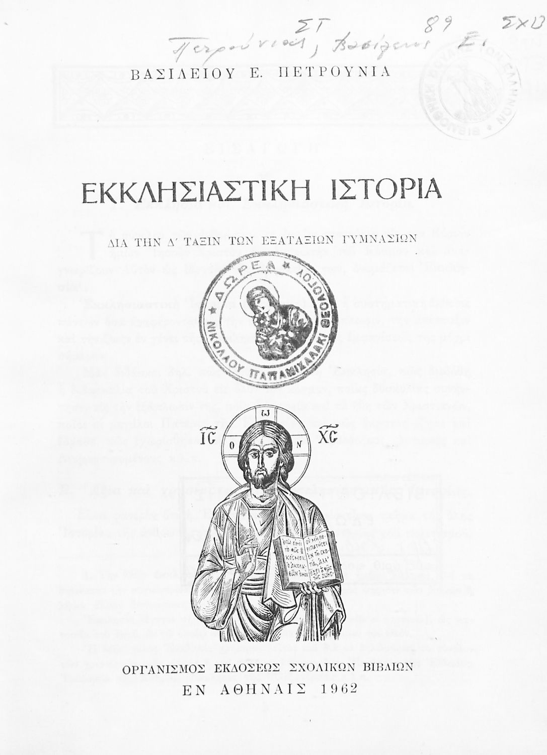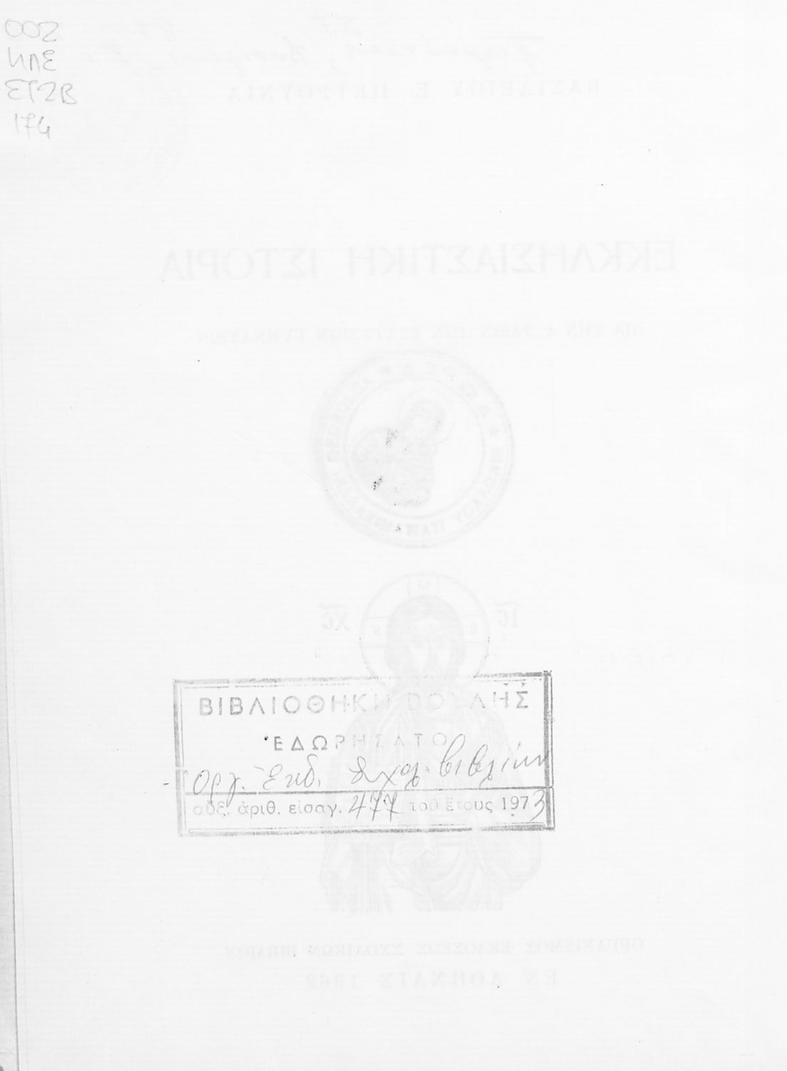 Τίτλος: Εκκλησιαστική ιστορία δια την Δ΄ τάξιν των Εξαταξίων Γυμνασίων