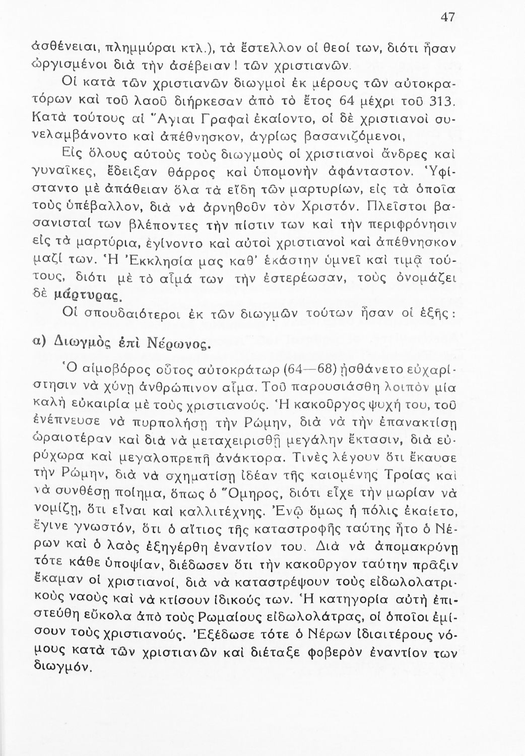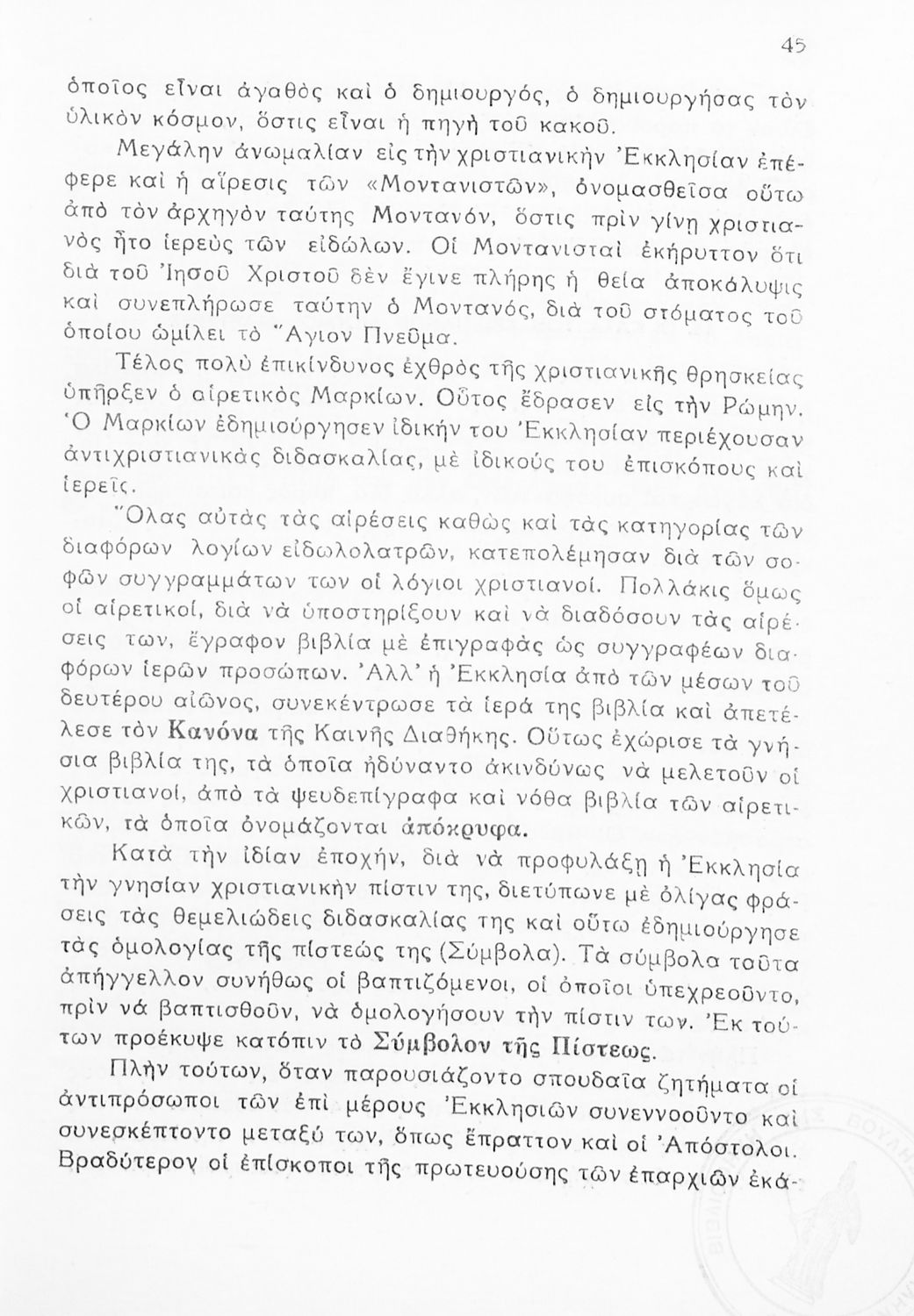 Σχολικό εγχειρίδιο Θρησκευτικών για την Δ' Γυμνασίου παλαιού τύπου που περιέχει την ιστορία της ορθόδοξης Εκκλησίας από την ίδρυσή της μέχρι την δημιουργία της Εκκλησίας της Ελλάδας.