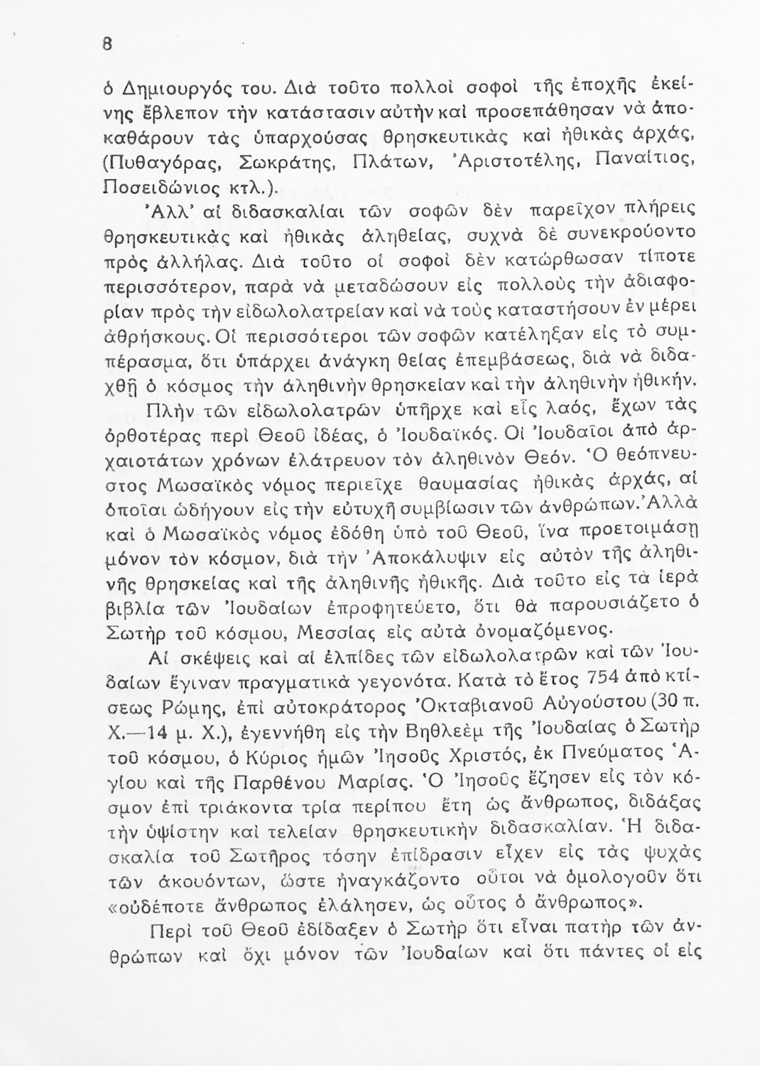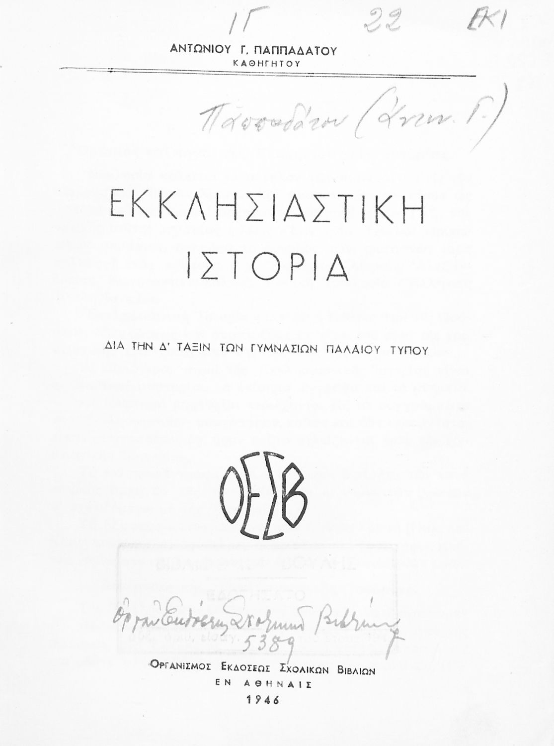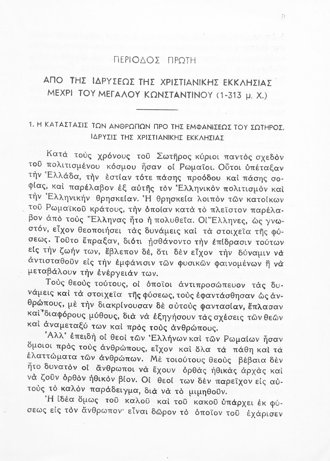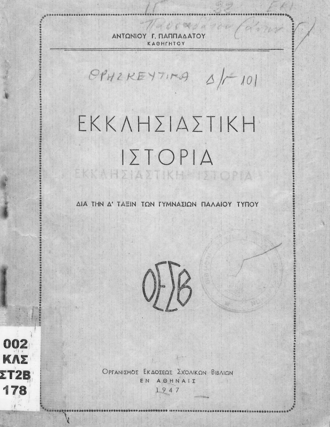 Βαθμίδα εκπαίδευσης: Δευτεροβάθμια Τάξη: Δ' Γυμνασίου Μάθημα: Θρησκευτικά Γλώσσα: Καθαρεύουσα Παρουσίαση περιεχομένου: Σχολικό εγχειρίδιο Θρησκευτικών Δ΄ Γυμνασίου που περιλαμβάνει την ιστορία της Ορθόδοξης Εκκλησίας από την ίδρυσή της μέχρι την δεύτερη δεκαετία του 20ου αιώνα μ. Χ. Σχολιάζει και τις σχέσεις της Ορθόδοξης Εκκλησίας με τον "παπισμό" και τον προτεσταντισμό. |