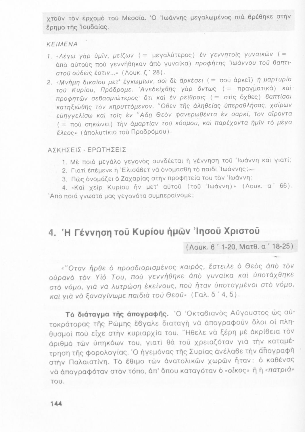 Σχολικό εγχειρίδιο Θρησκευτικών Β΄ Γυμνασίου, Πρακτικού Λυκείου και Παρθεναγωγείου που περιλαμβάνει τη ζωή, το έργο και τη διδασκαλία του Ιησού.