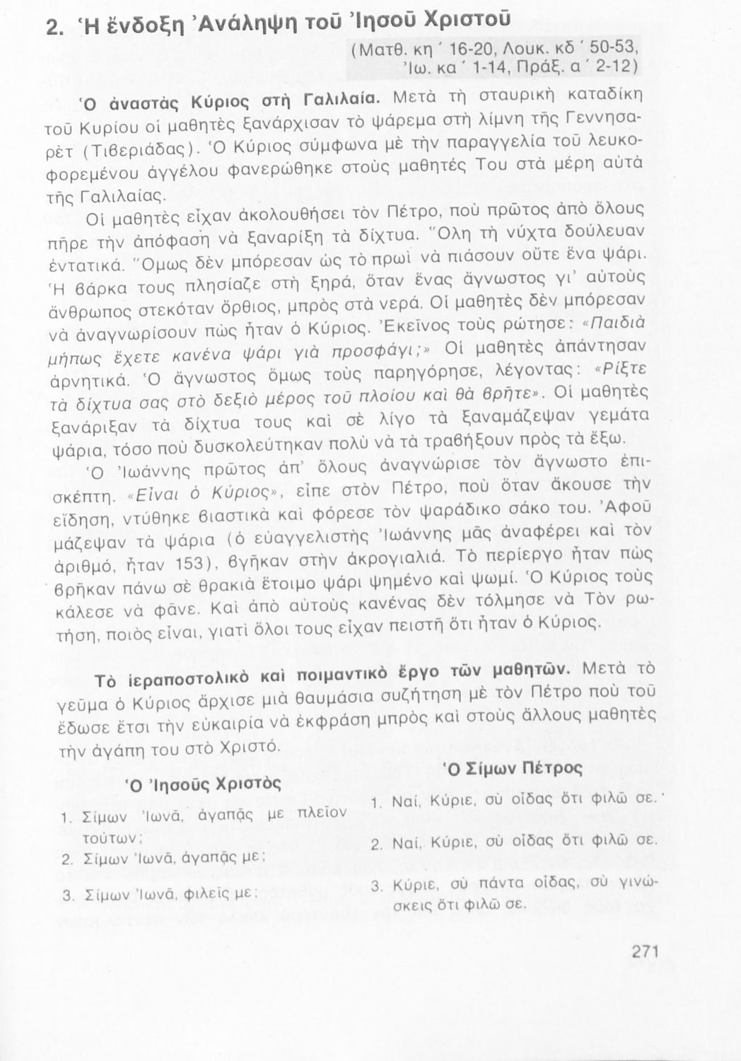 Σχολικό εγχειρίδιο Θρησκευτικών Β΄ Γυμνασίου που συνιστά μία εξιστόρηση της Καινής Διαθήκης από τη γέννηση της Θεοτόκου ως την ανάληψη του Χριστού. Περιέχει και απολυτίκια.