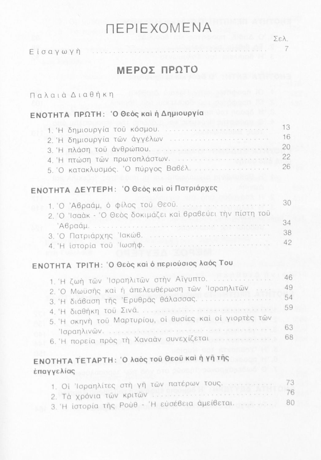 Σχολικό εγχειρίδιο Θρησκευτικών Α΄ Γυμνασίου που συνιστά μία εξιστόρηση της Παλαιάς Διαθήκης από τη δημιουργία του κόσμου ως την υποταγή των Εβραίων στους Ρωμαίους.