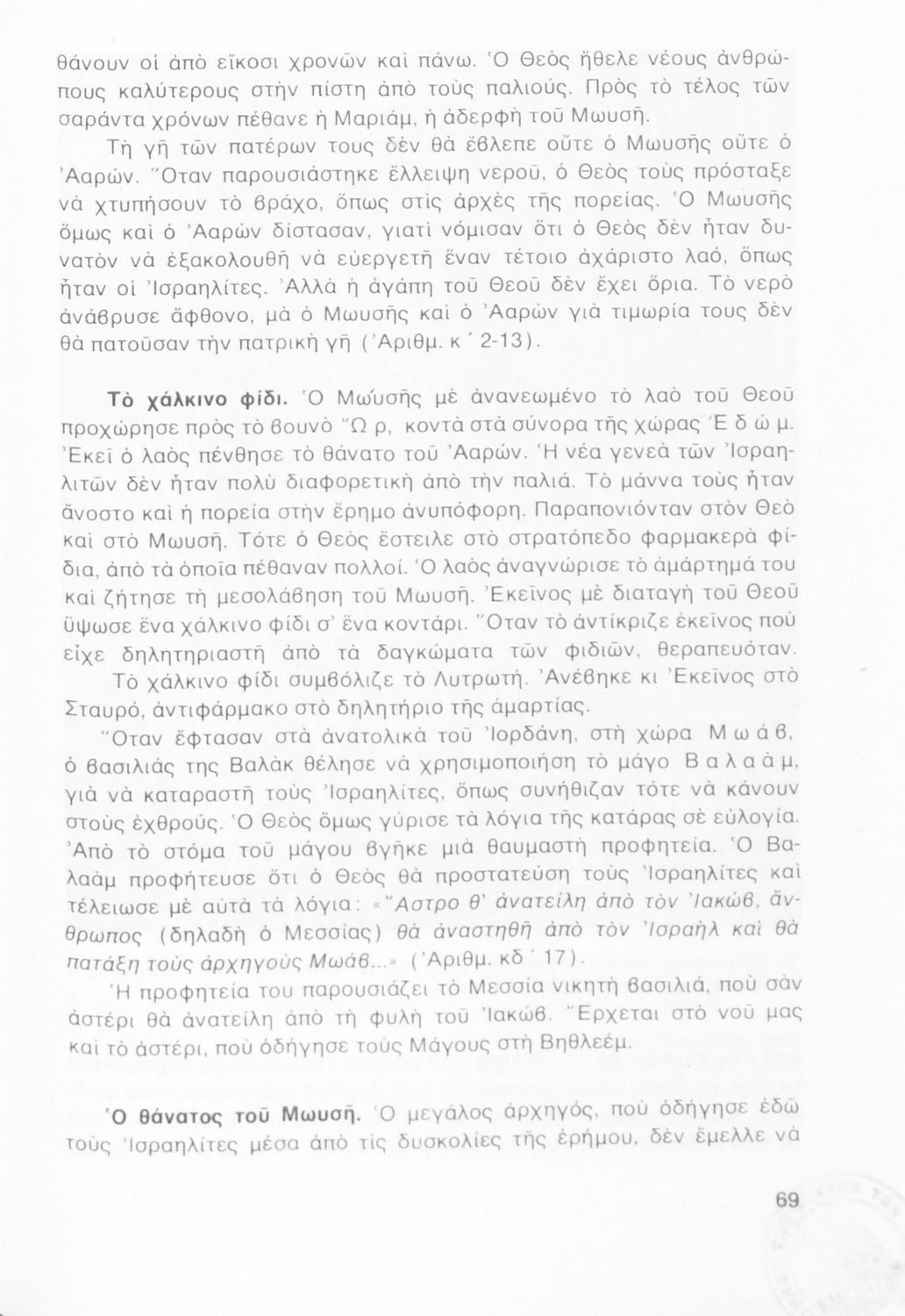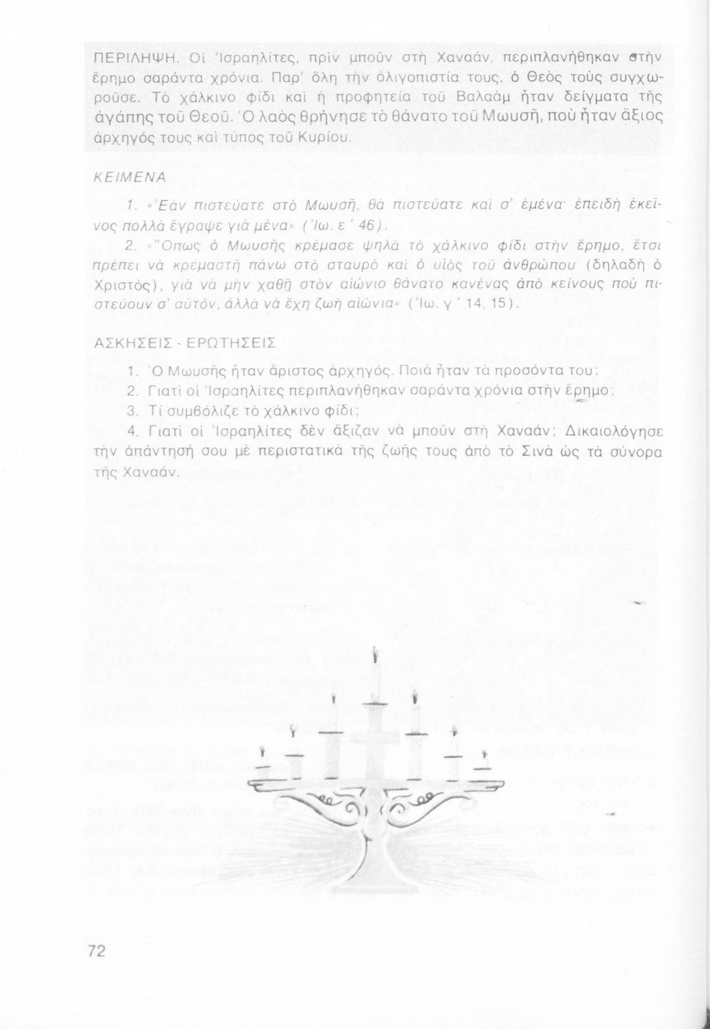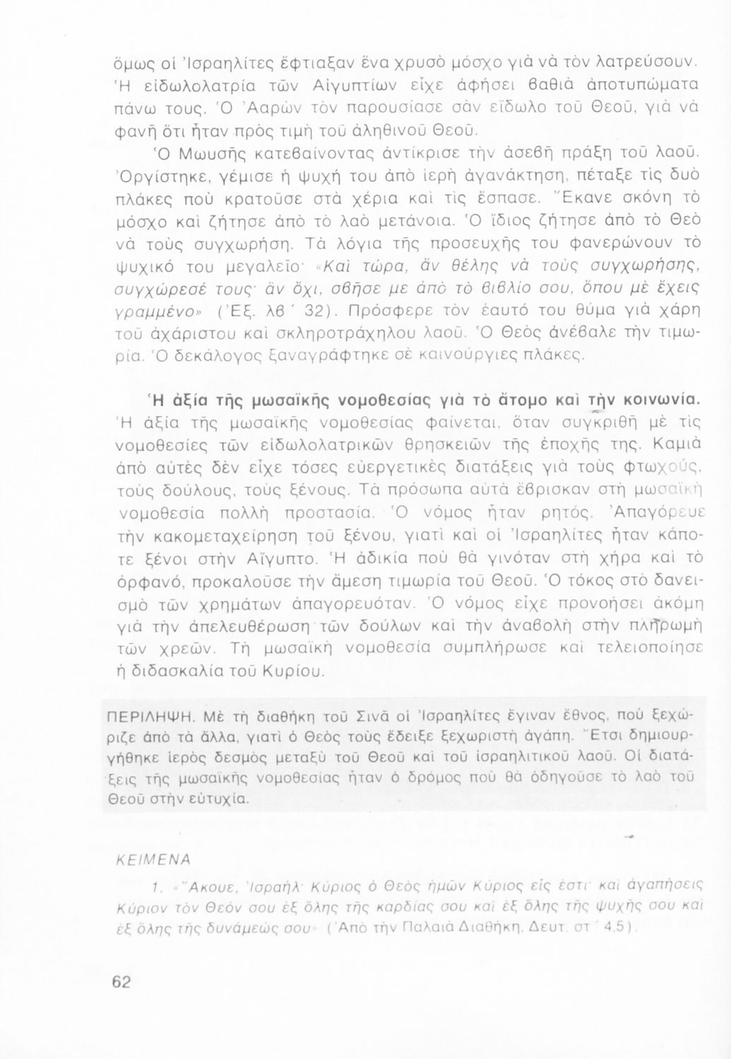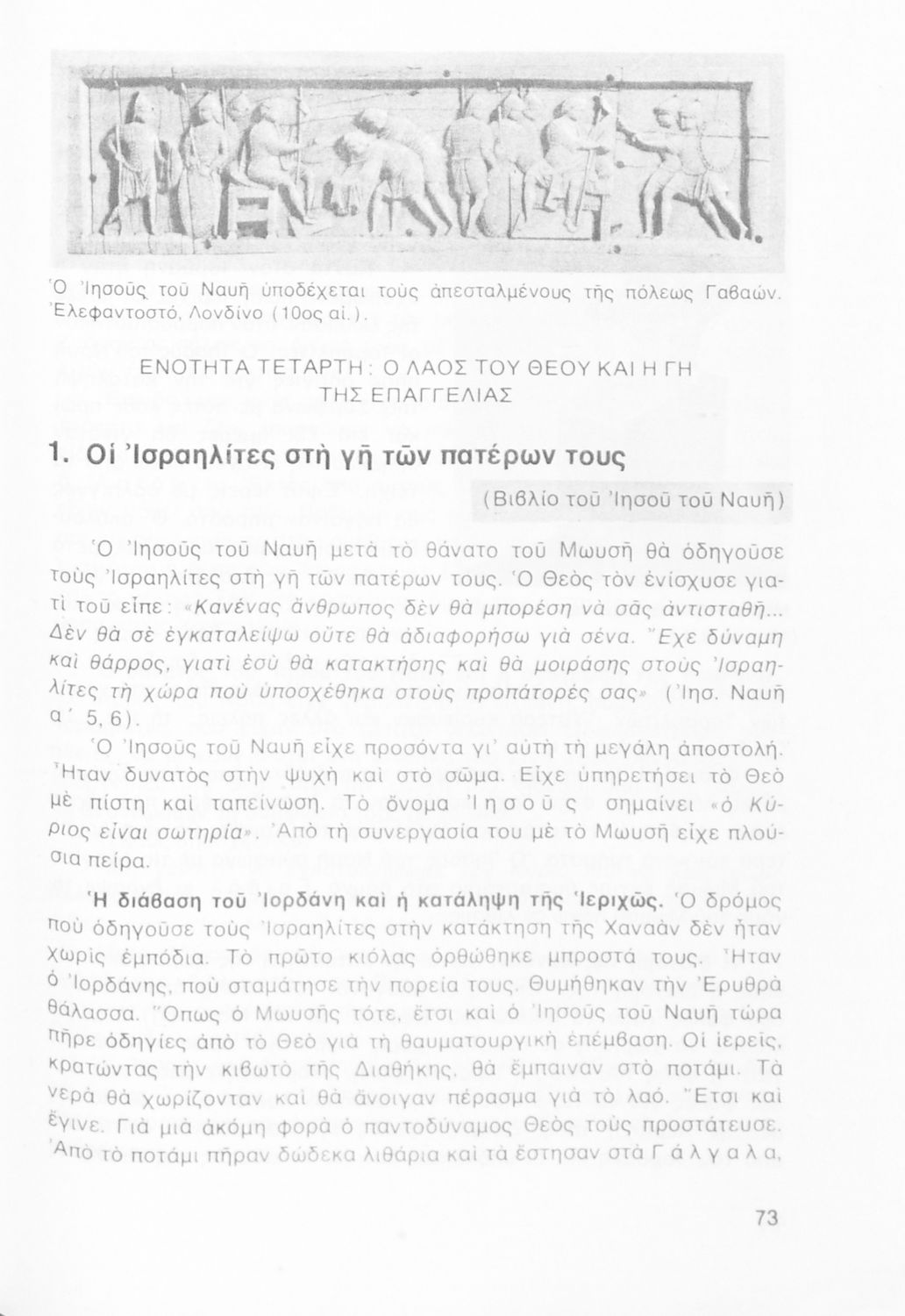 Σχολικό εγχειρίδιο Θρησκευτικών Α΄ Γυμνασίου που συνιστά μία εξιστόρηση της Παλαιάς Διαθήκης από τη δημιουργία του κόσμου ως την υποταγή των Εβραίων στους Ρωμαίους.